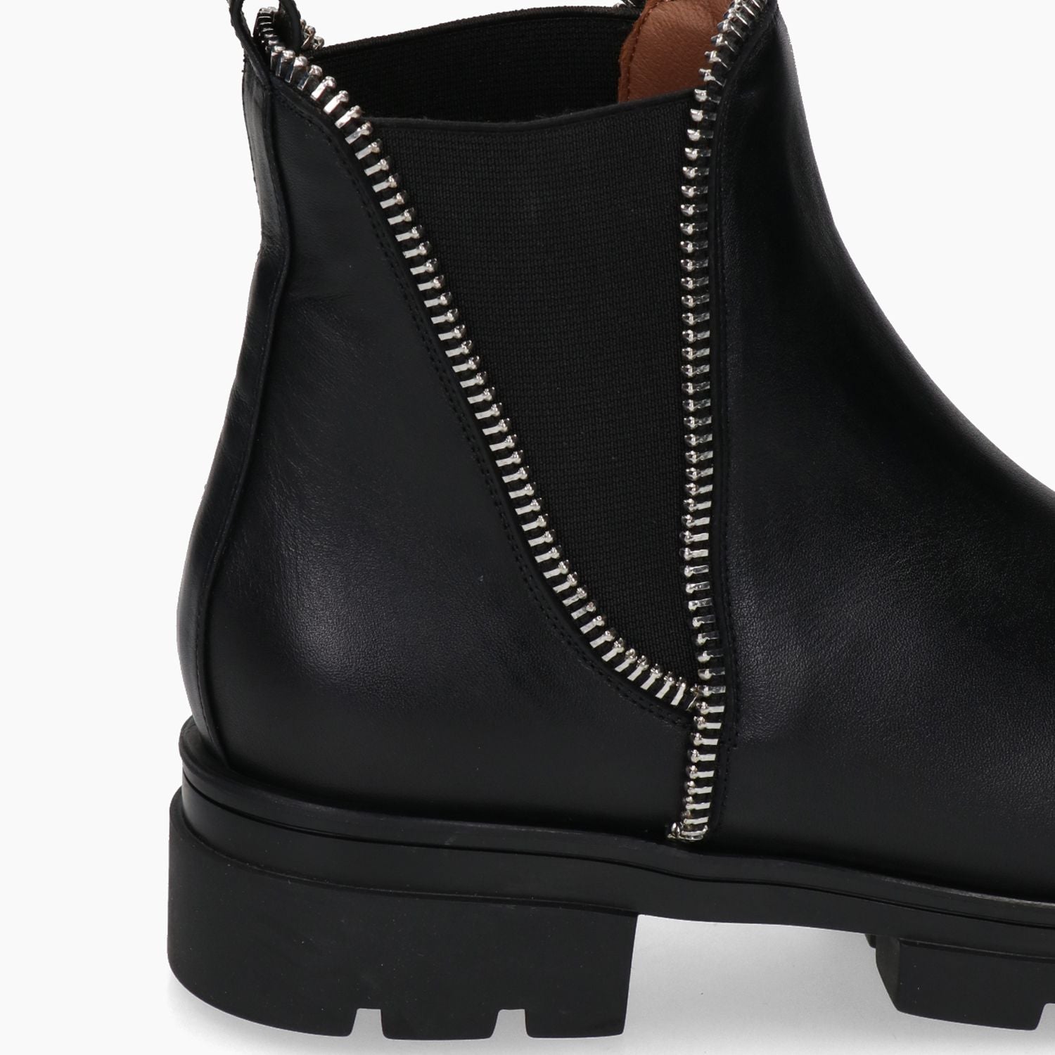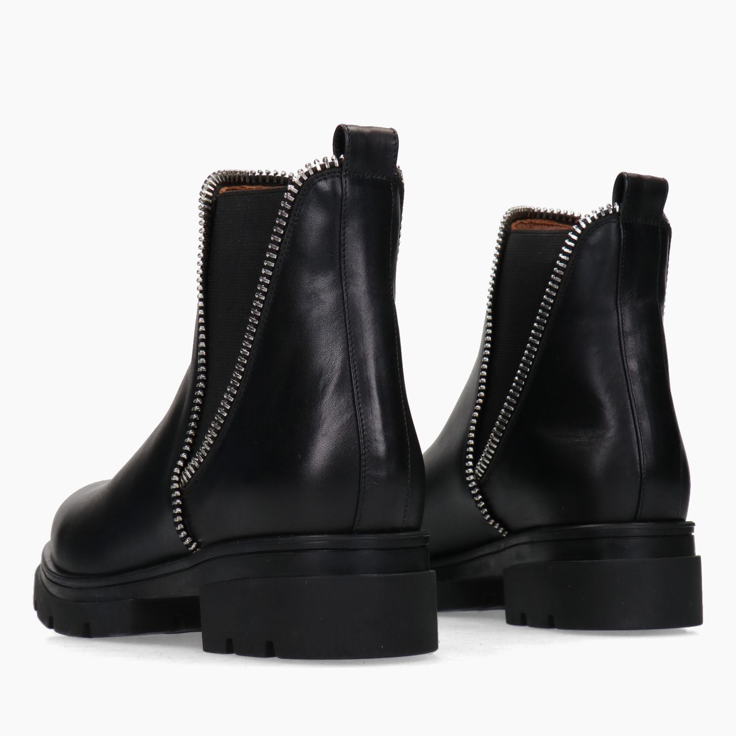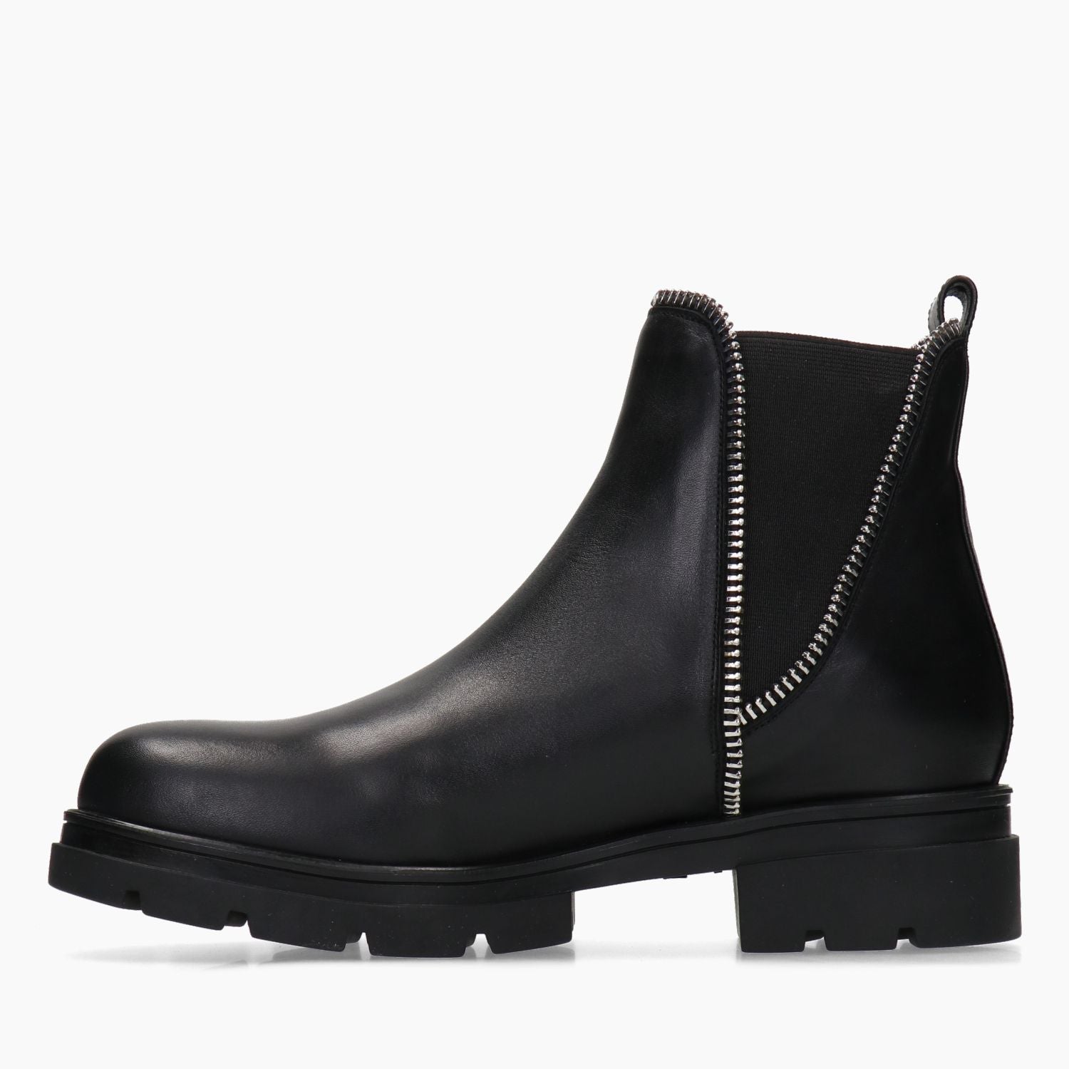 Beatles Albano. Tomaia nera in pelle. Chiusura tramite elastici laterali profilati con zip argentata. Punta tonda. Interni in pelle. Suola in gomma con tacco 3 cm. Collezione Albano donna Autunno Inverno.