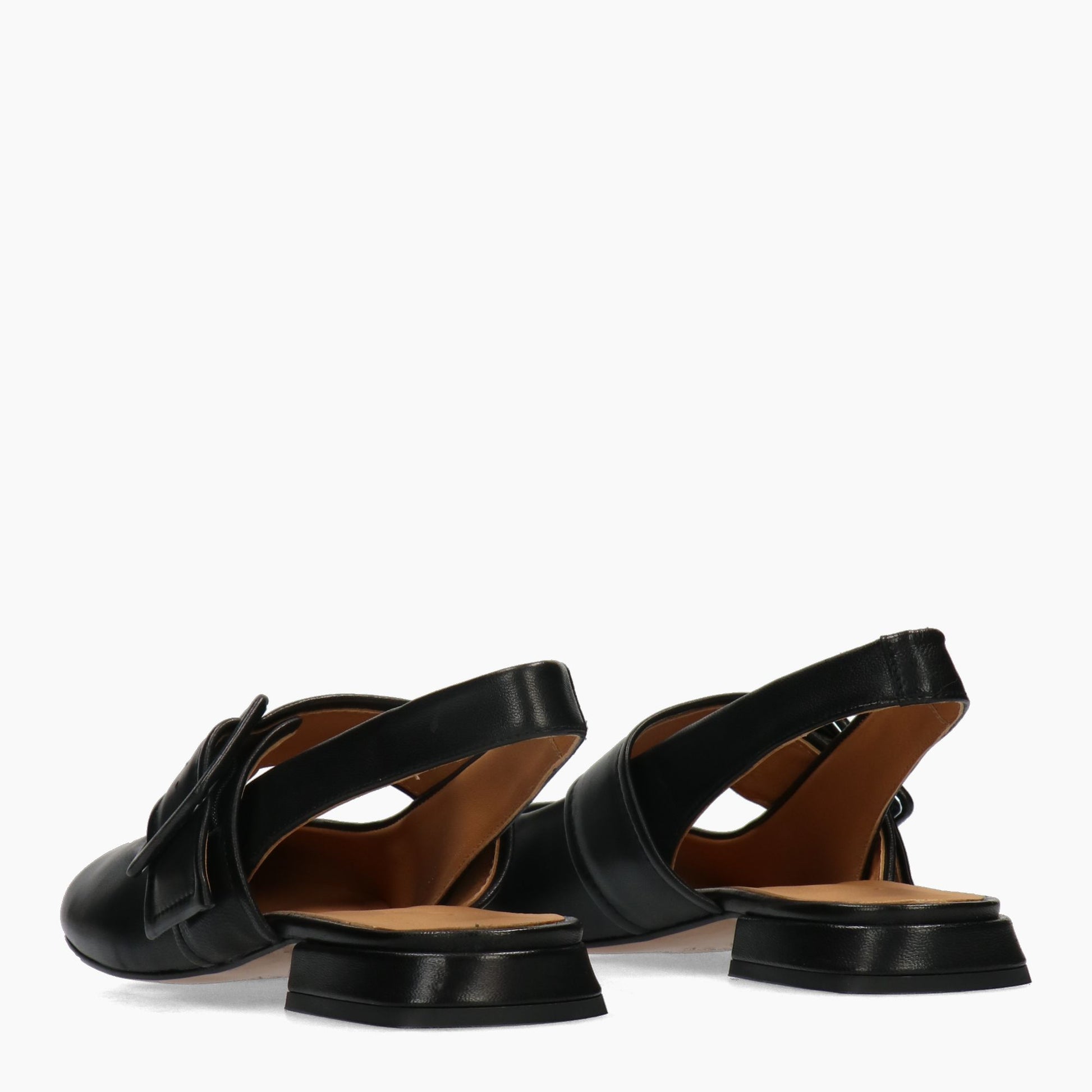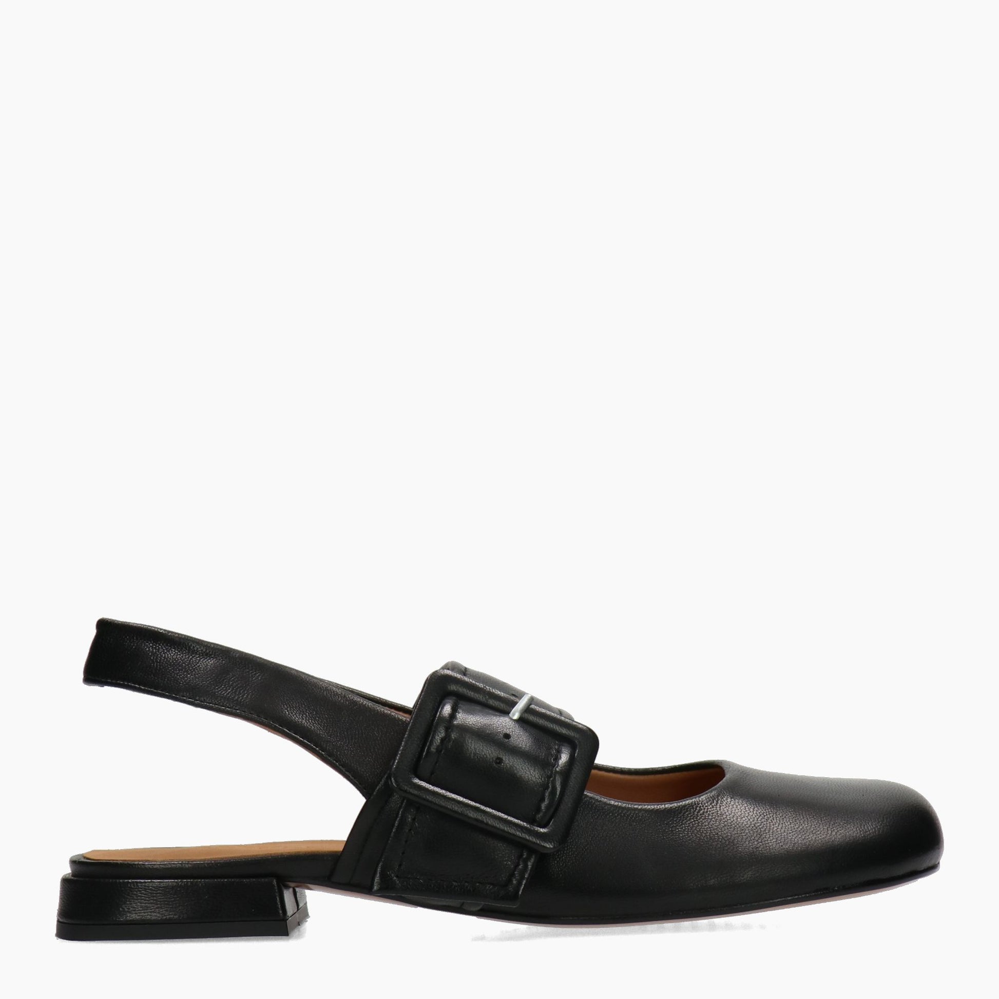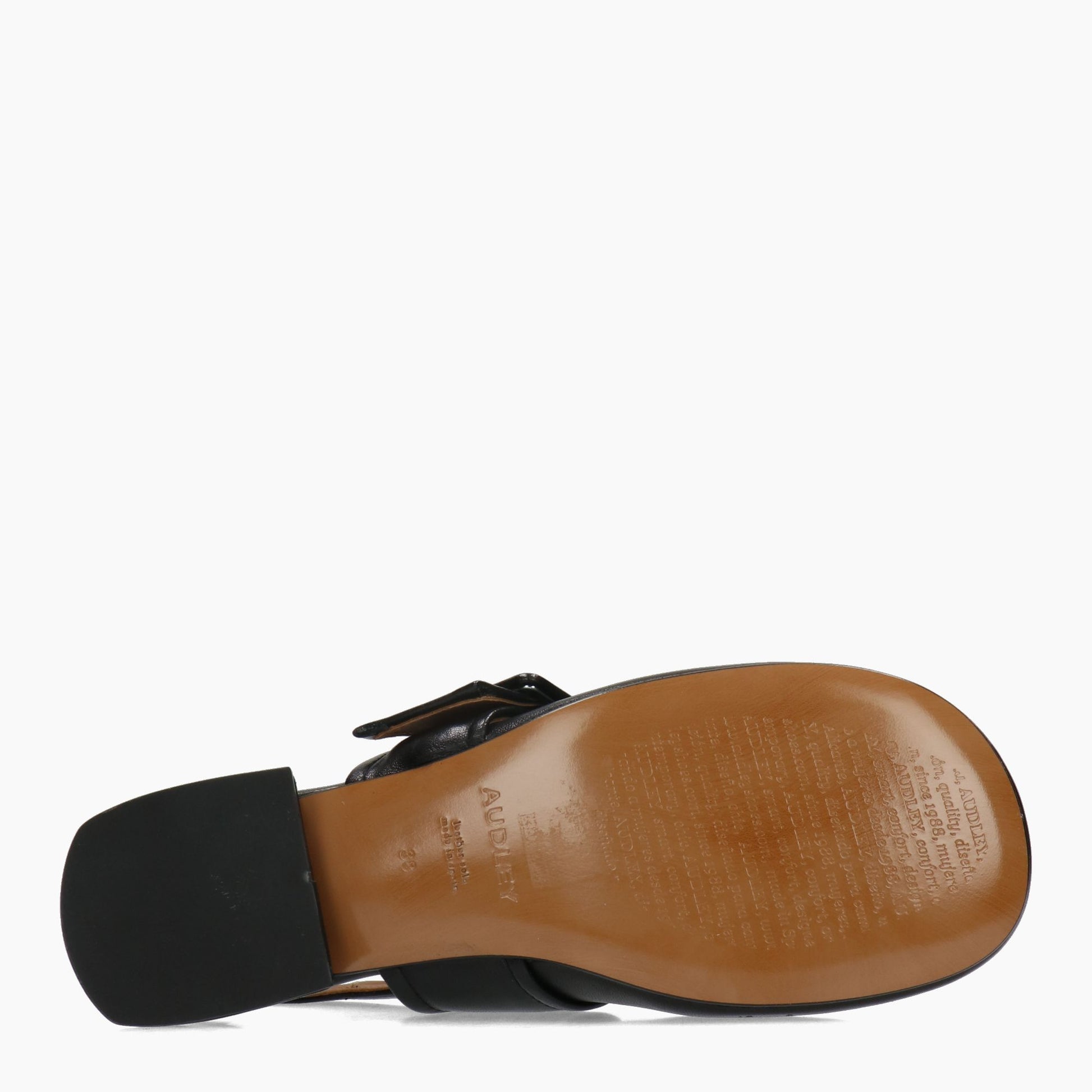 Chanel in nappa nera con fibbia regolabile. Interno in pelle con sottopiede imbottito. Suola in cuoio con tacco di 2 cm. Collezione Audley Primavera/Estate.