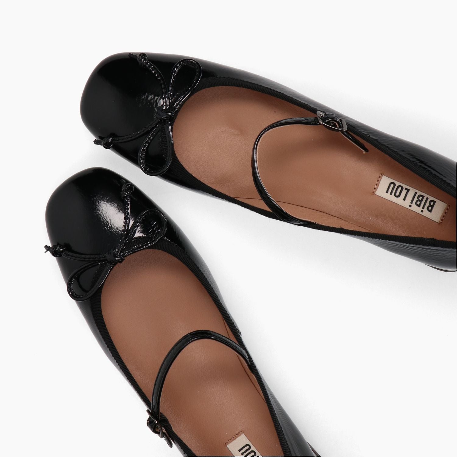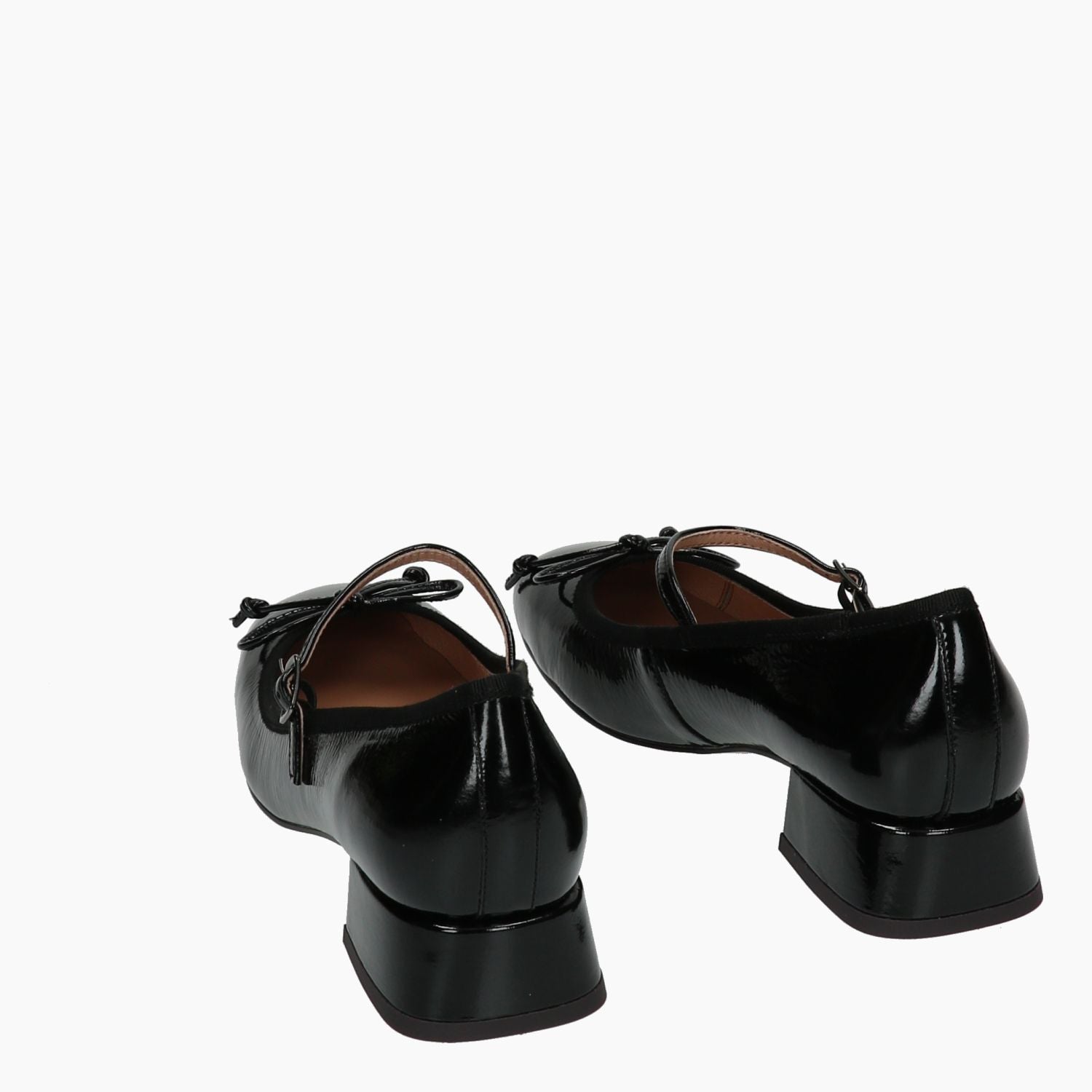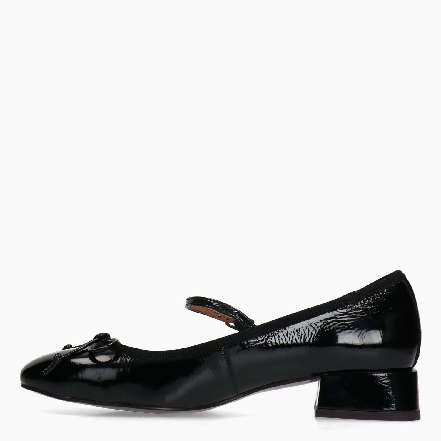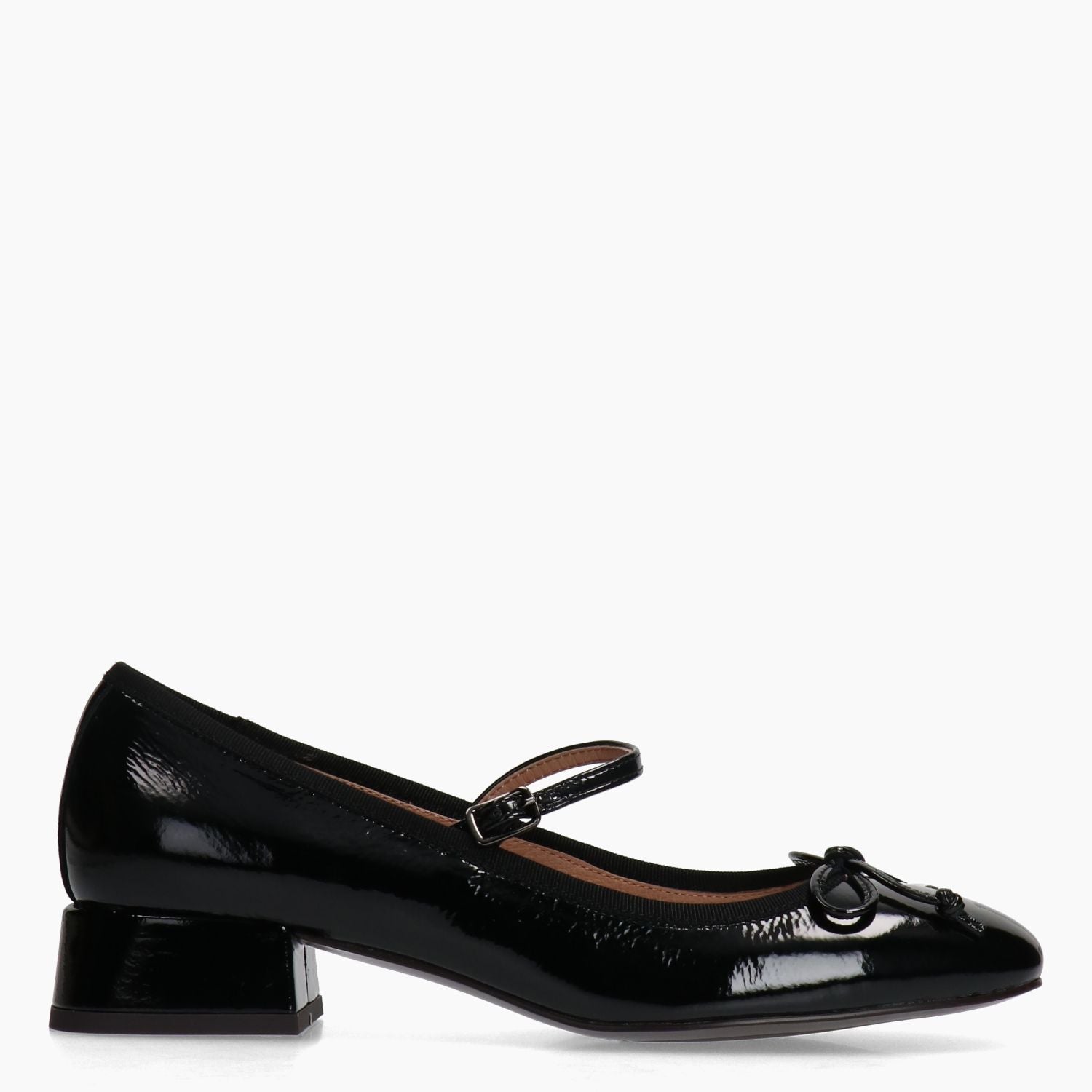 Mary Jane con tomaia in pelle verniciata nera. Punta quadrata. Interno in pelle. Suola in gomma con tacco di 3 cm. Collezione Bibi Lou donna autunno/inverno.