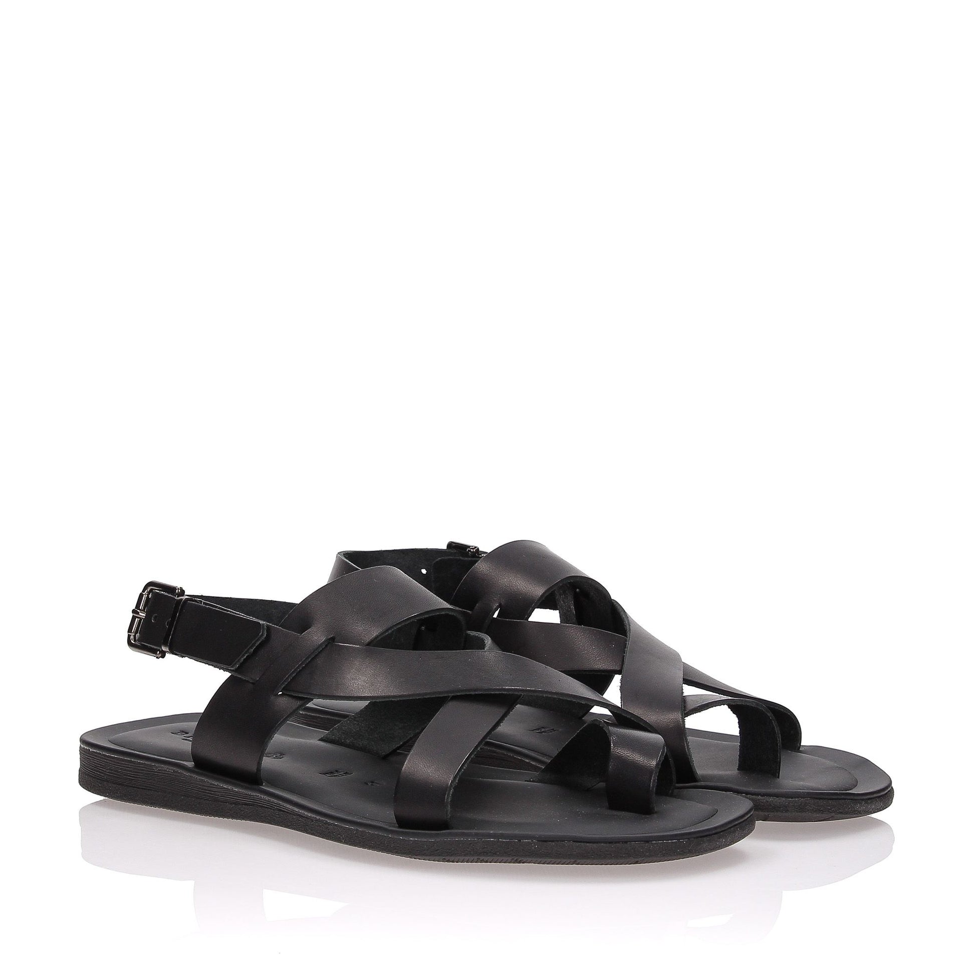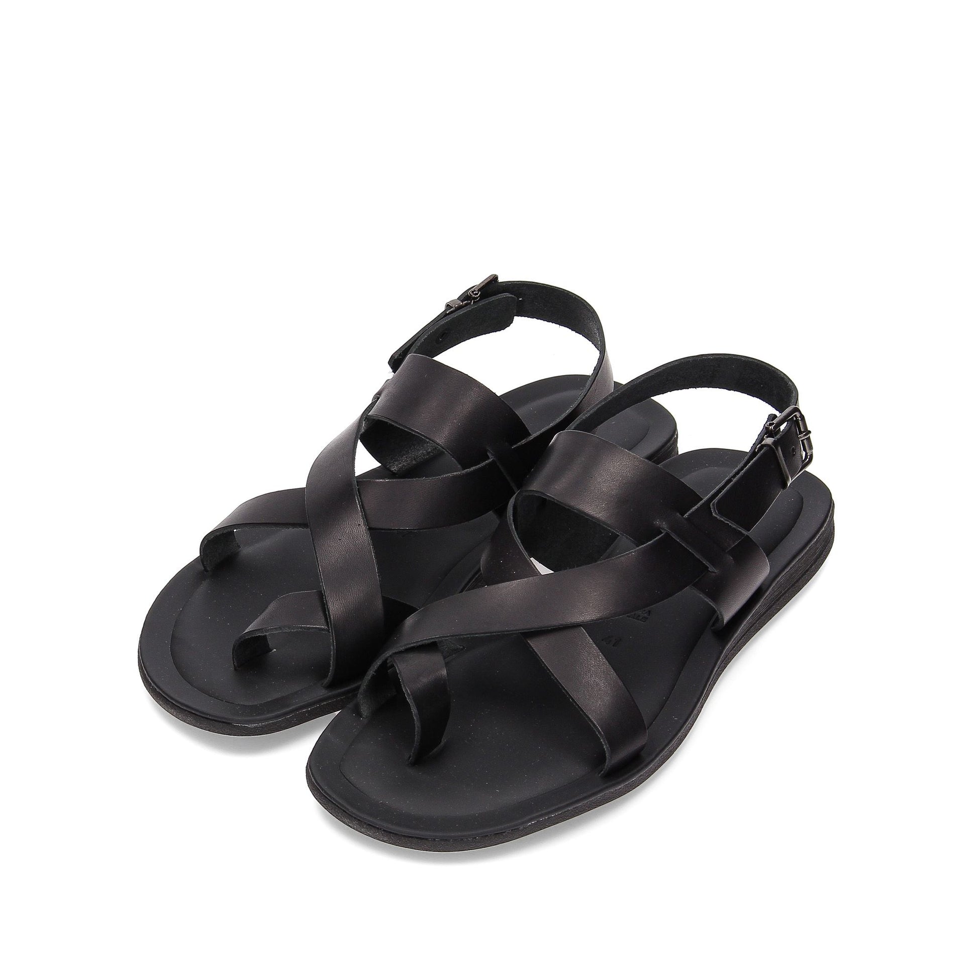 Sandali in pelle nera ad infradito con sottopiede in pelle imbottito, fondo gomma.