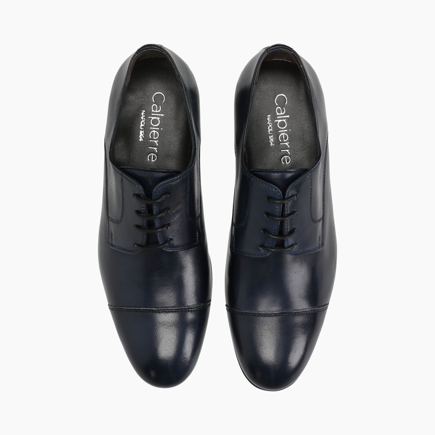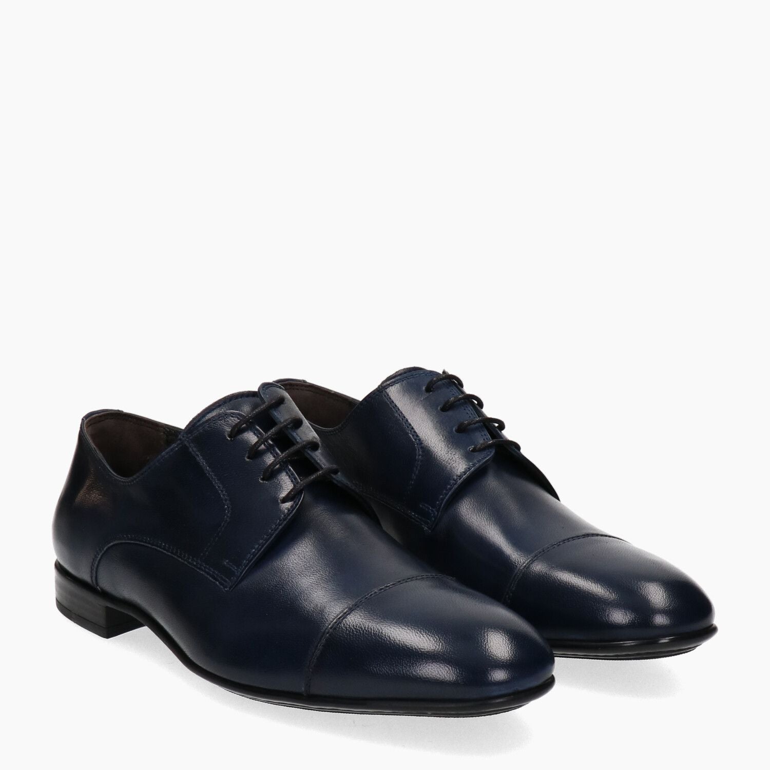 Derby in pelle blu con puntale, fondo gomma cucito.