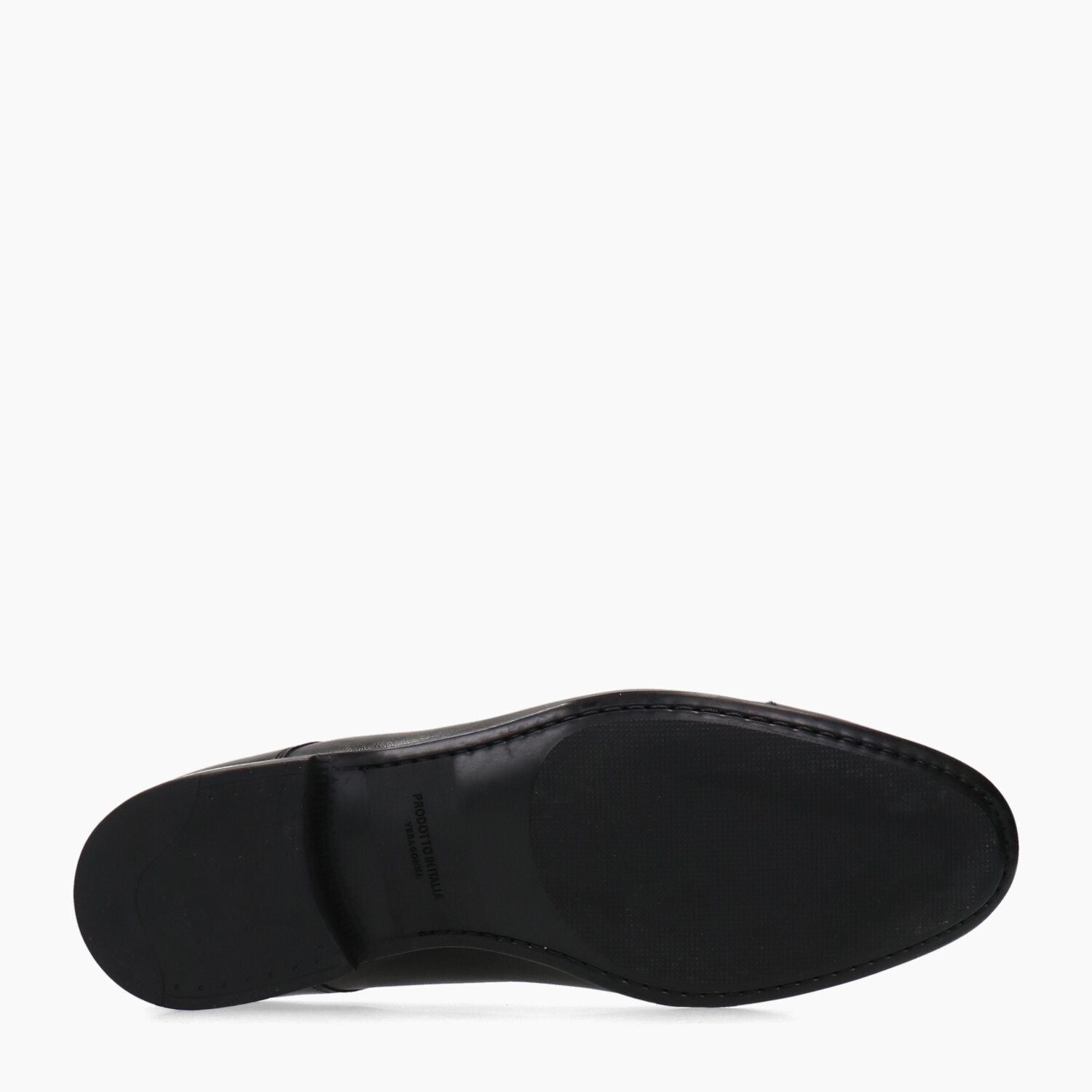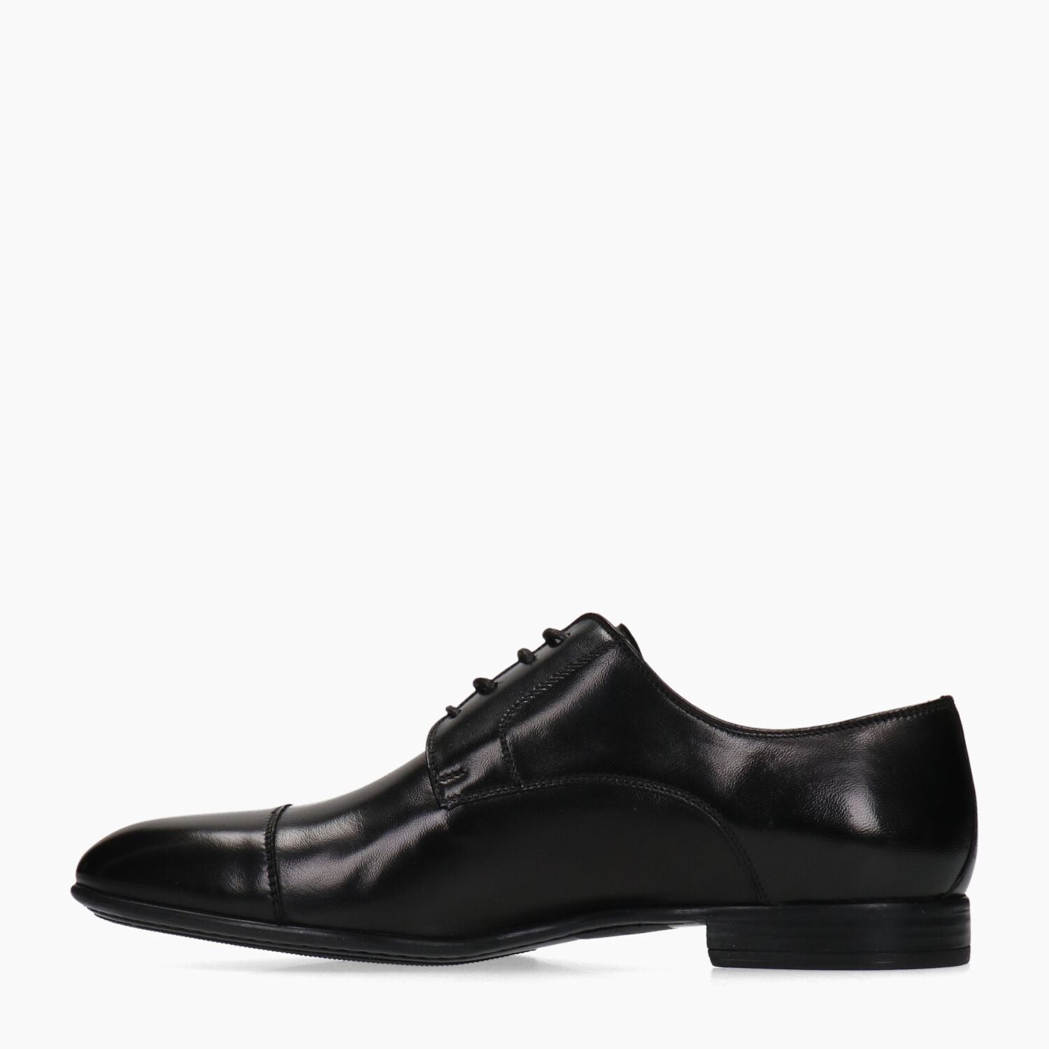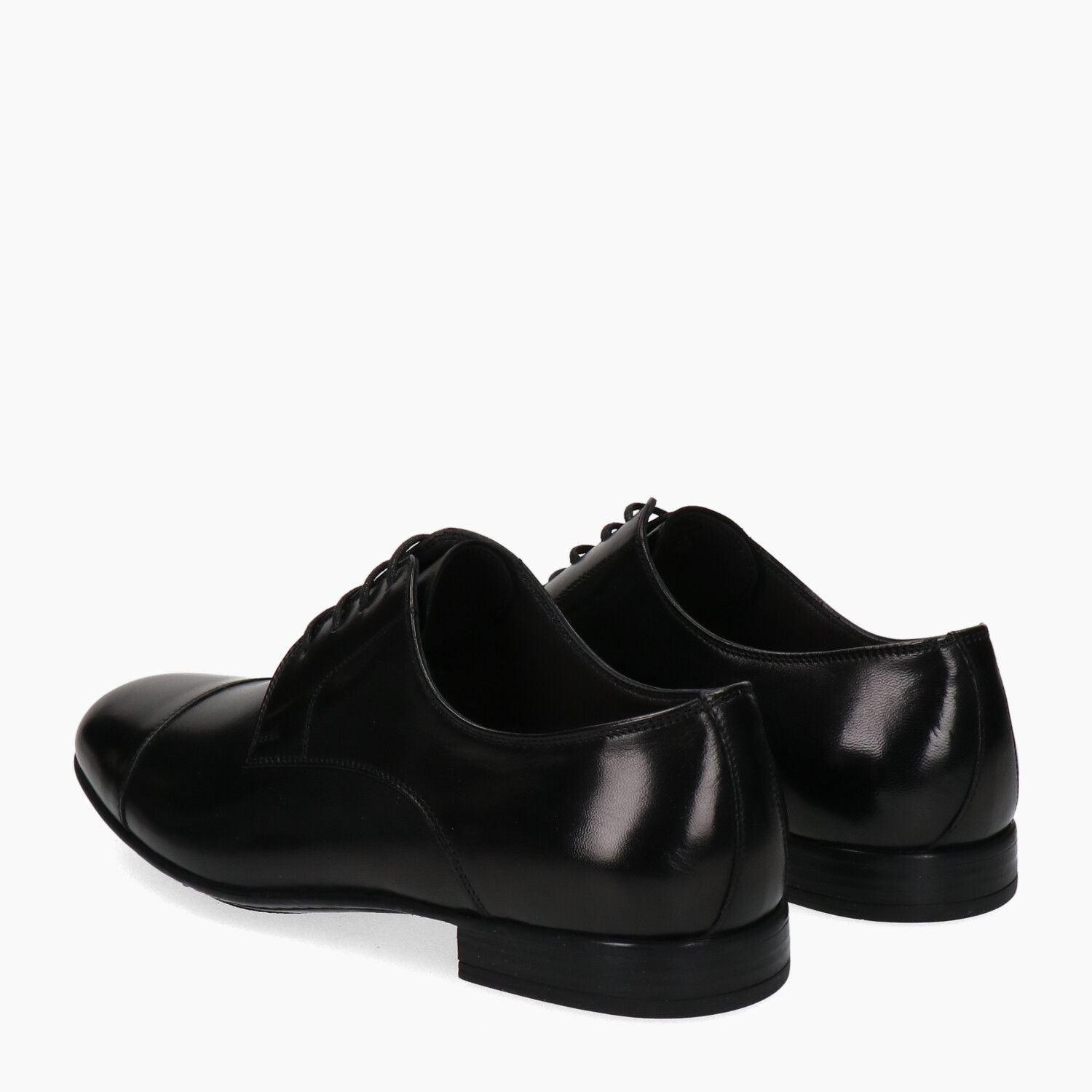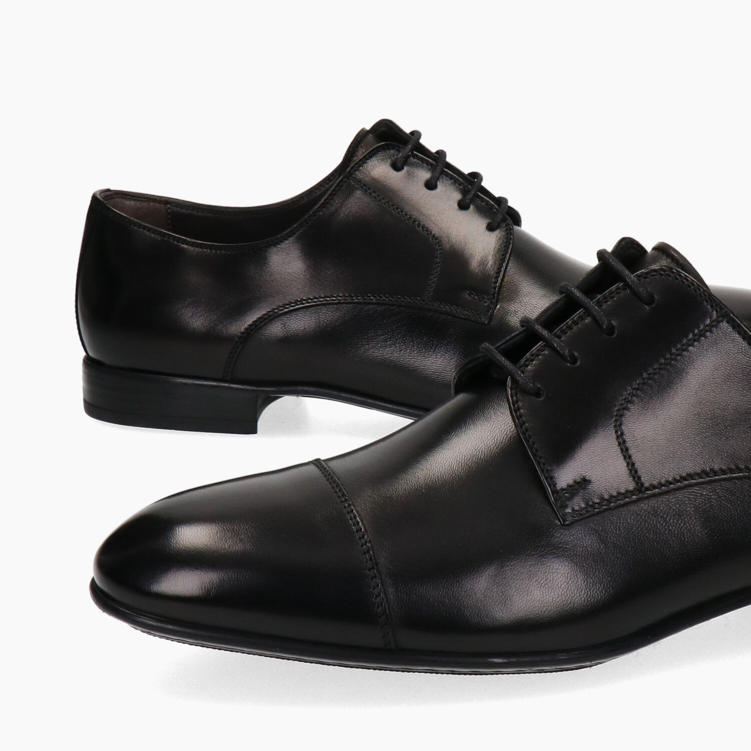 Derby in pelle nera con puntale, fondo gomma cucito.