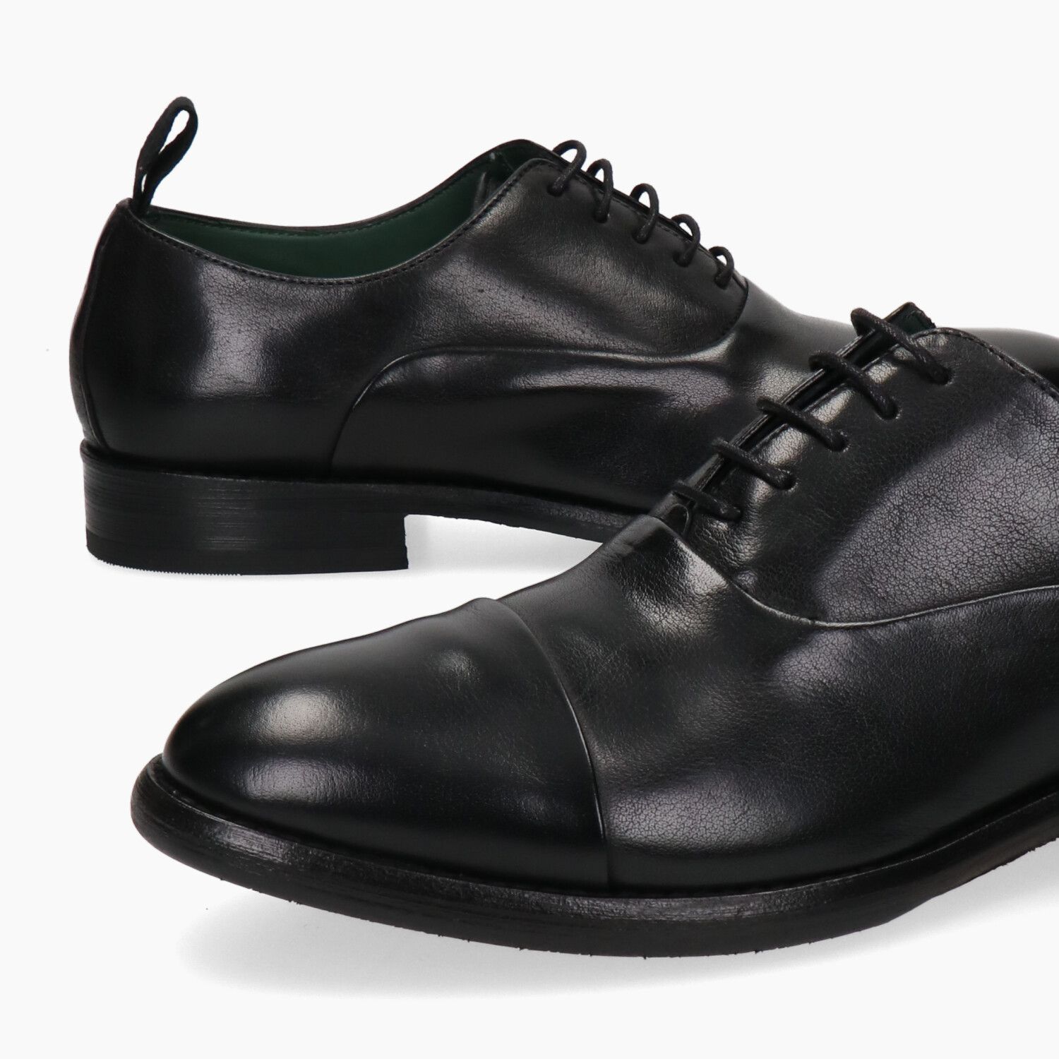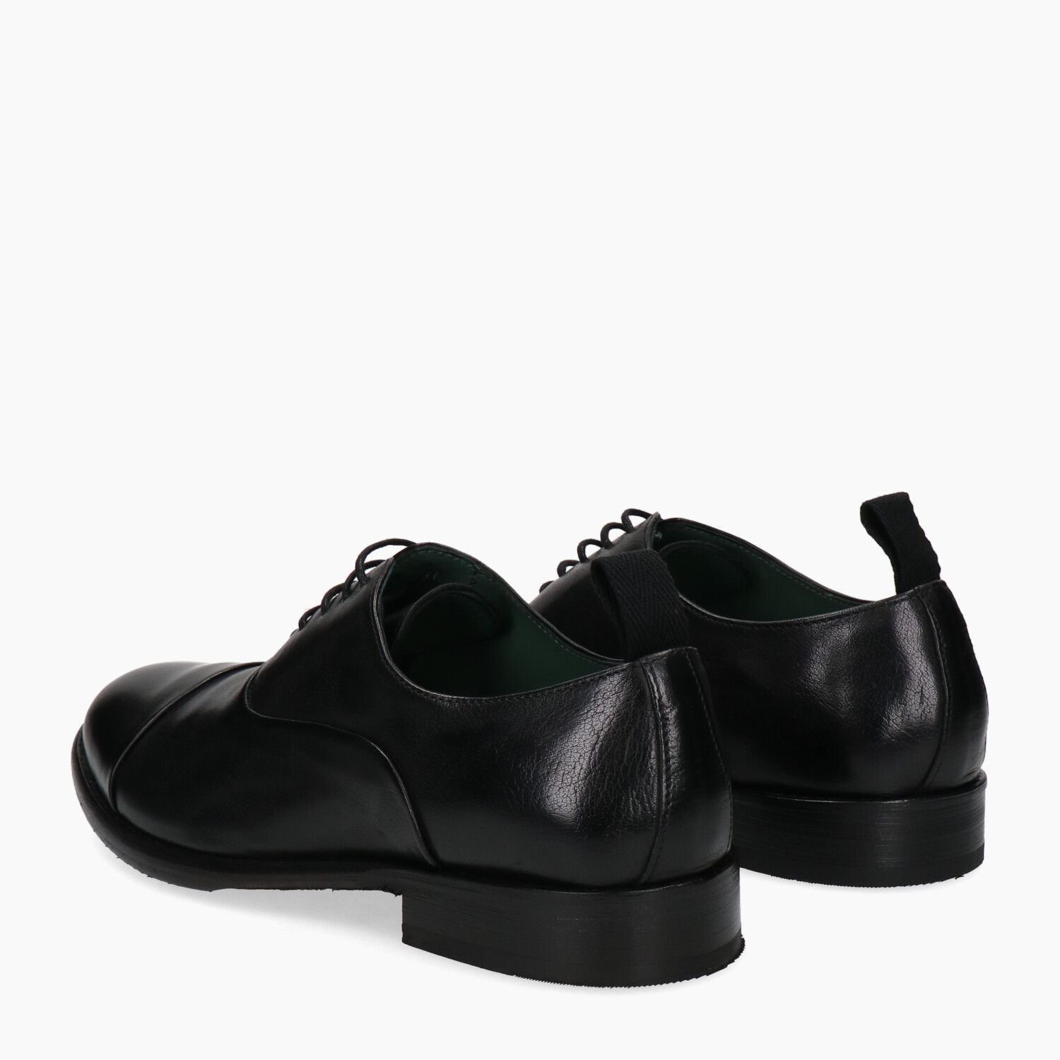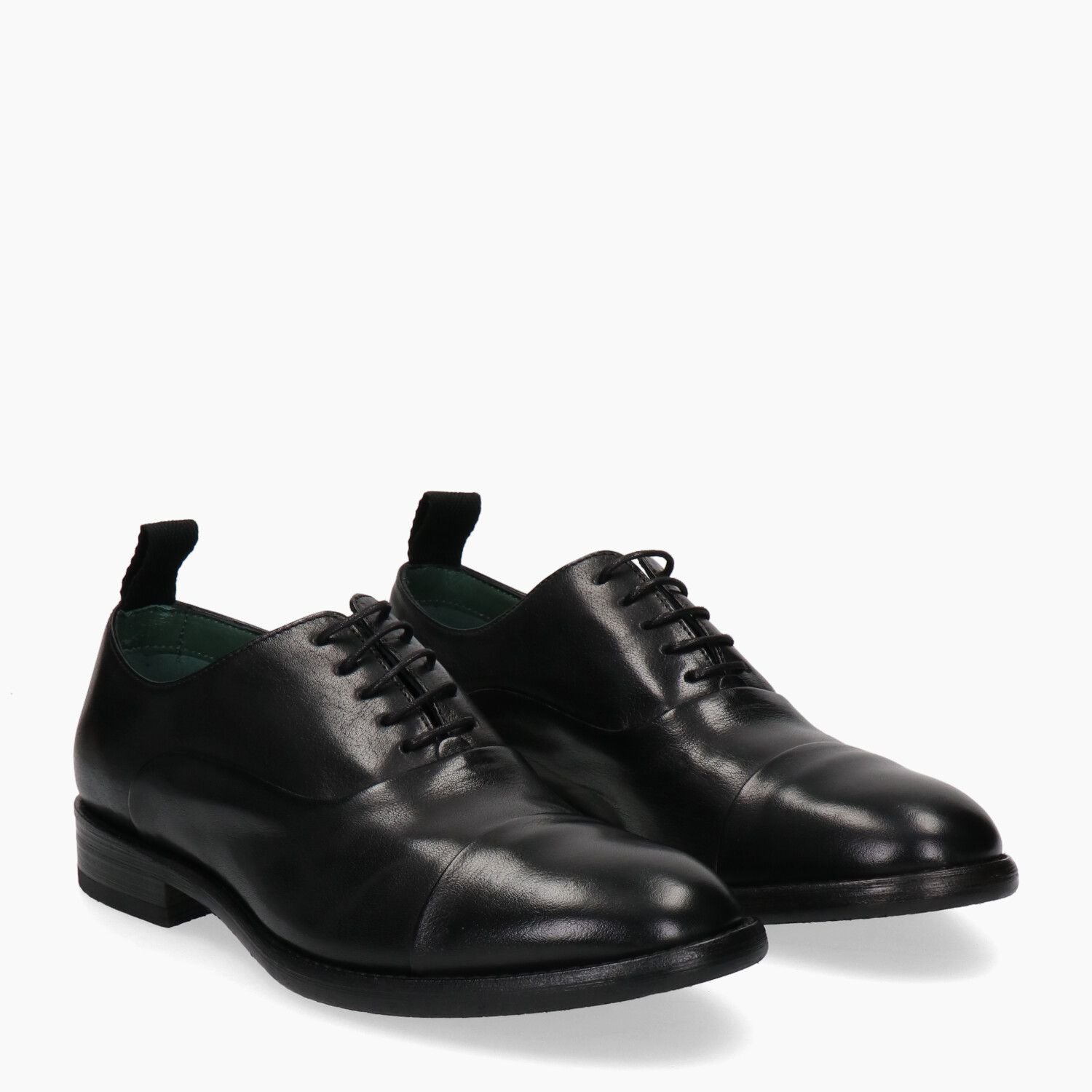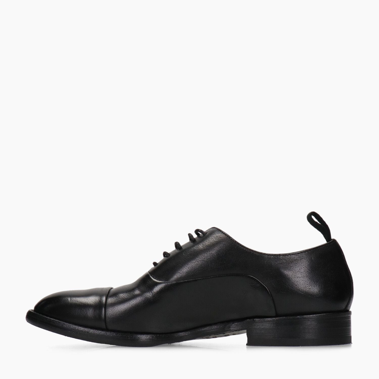 Francesine in pelle nera con puntale, lavorazione a sacchetto che aumenta la comodita', tacco 20 fondo gomma cucito.