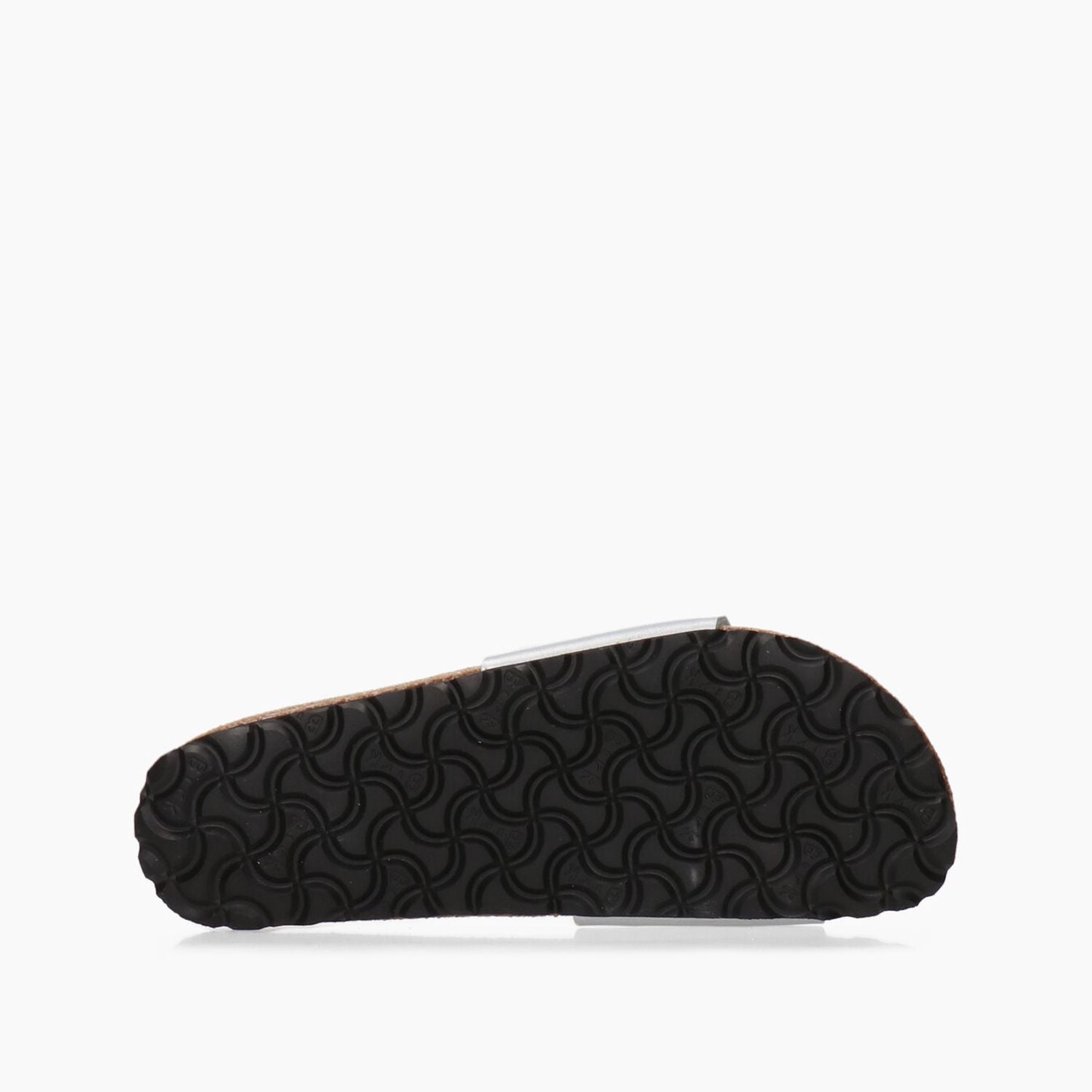 Ciabatte modello Madrid in birko flor laminato argento (silver) con fibbia ottonata. Fussbett anatomico ricoperto in crosta camel con calzata stretta. Suola in gomma di 2 cm. Collezione Birkenstock.
