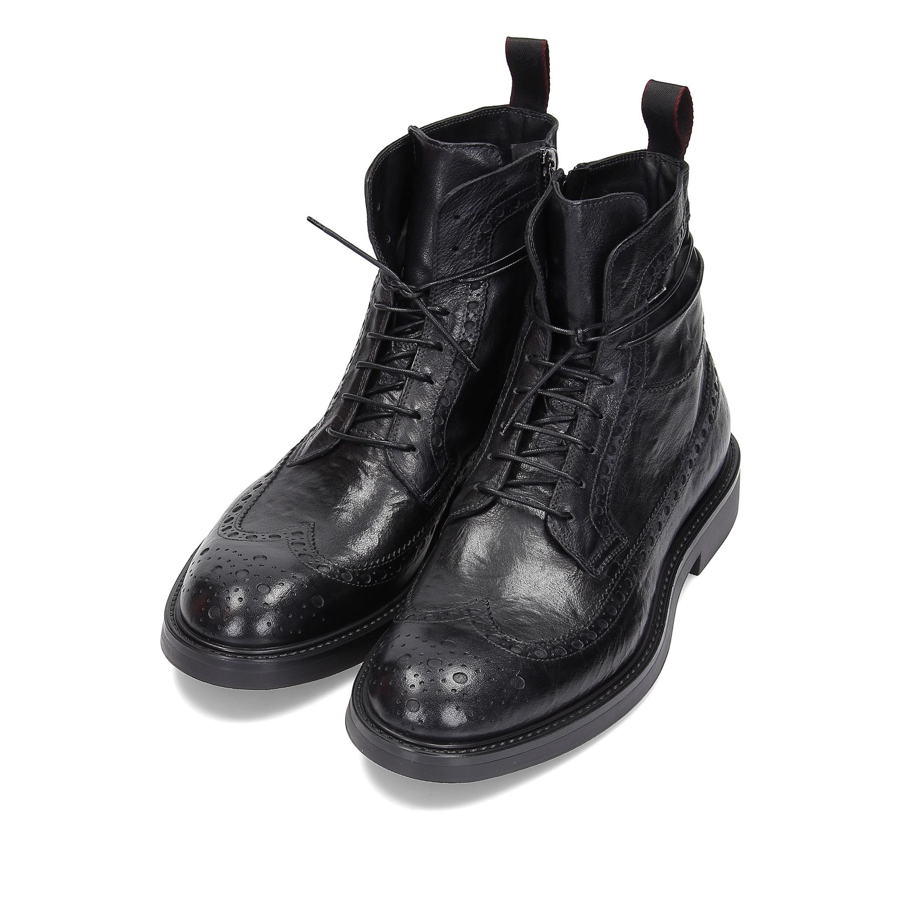 Polacchino in pelle nera con coda rondine all'inglese, zip interna, tacco 25 fondo gomma cucito.
