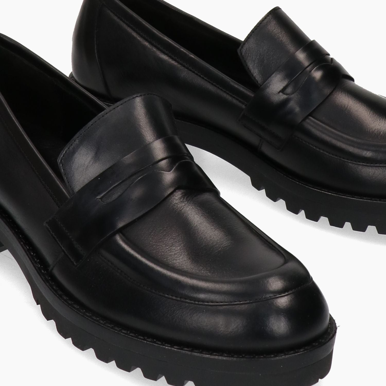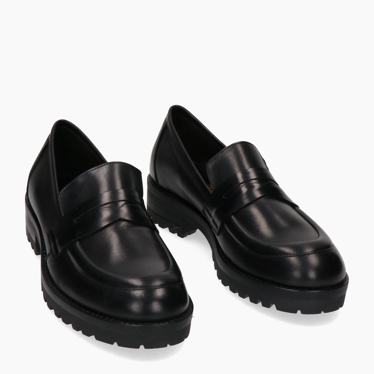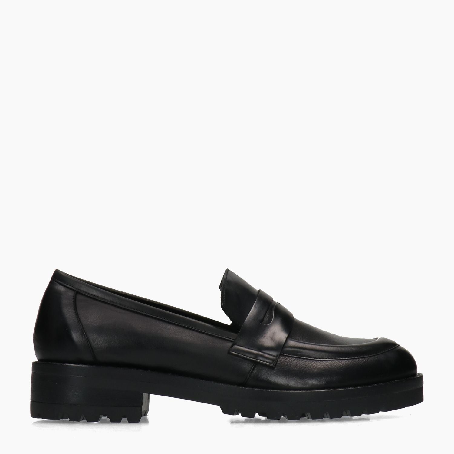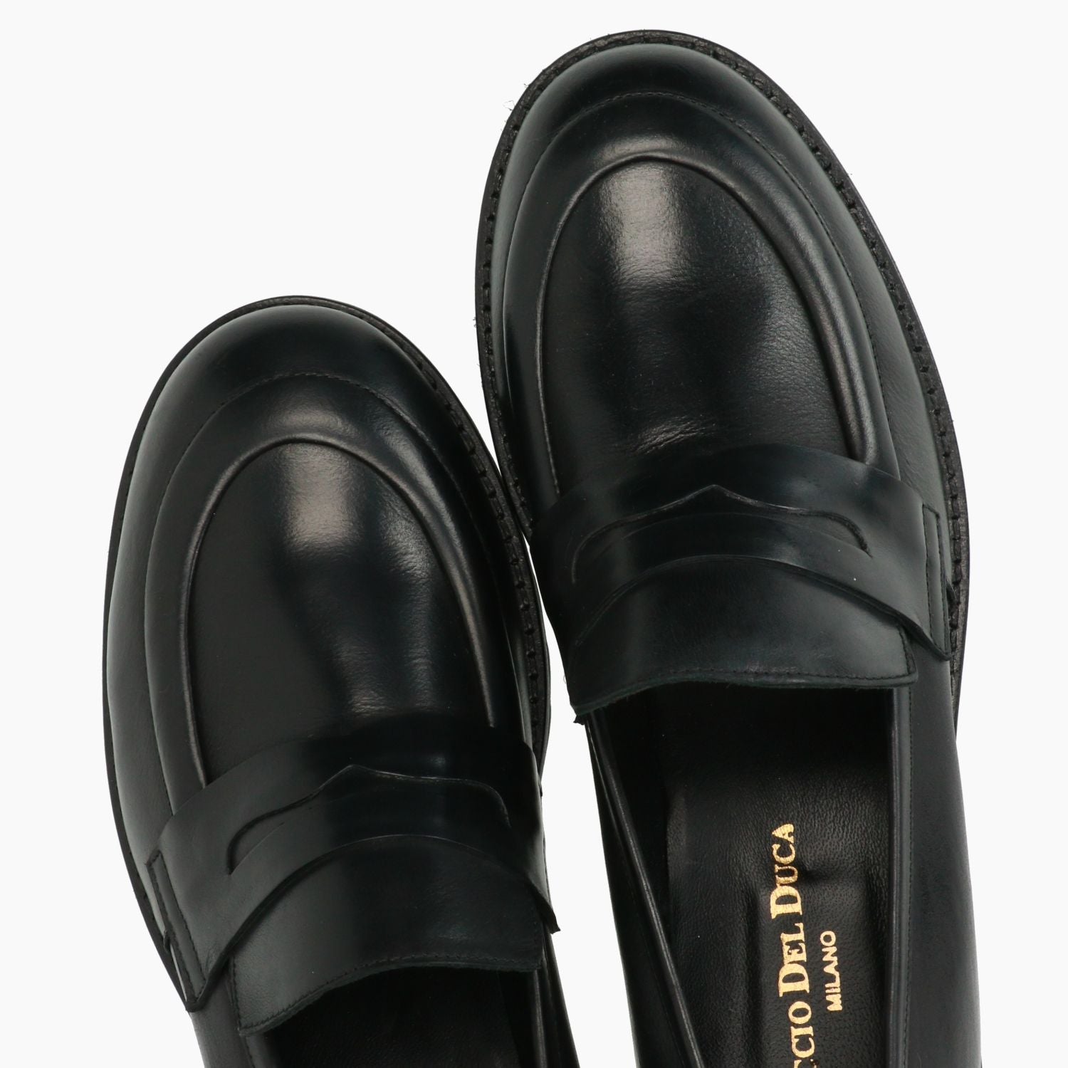 Mocassini Duccio Del Duca con tomaia in pelle in colore nero. Punta tonda. Interno in pelle con sottopiede non estraibile. Suola in gomma e cuoio. Suola di 3,5 cm. Collezione Duccio Del Duca donna Autunno/Inverno.