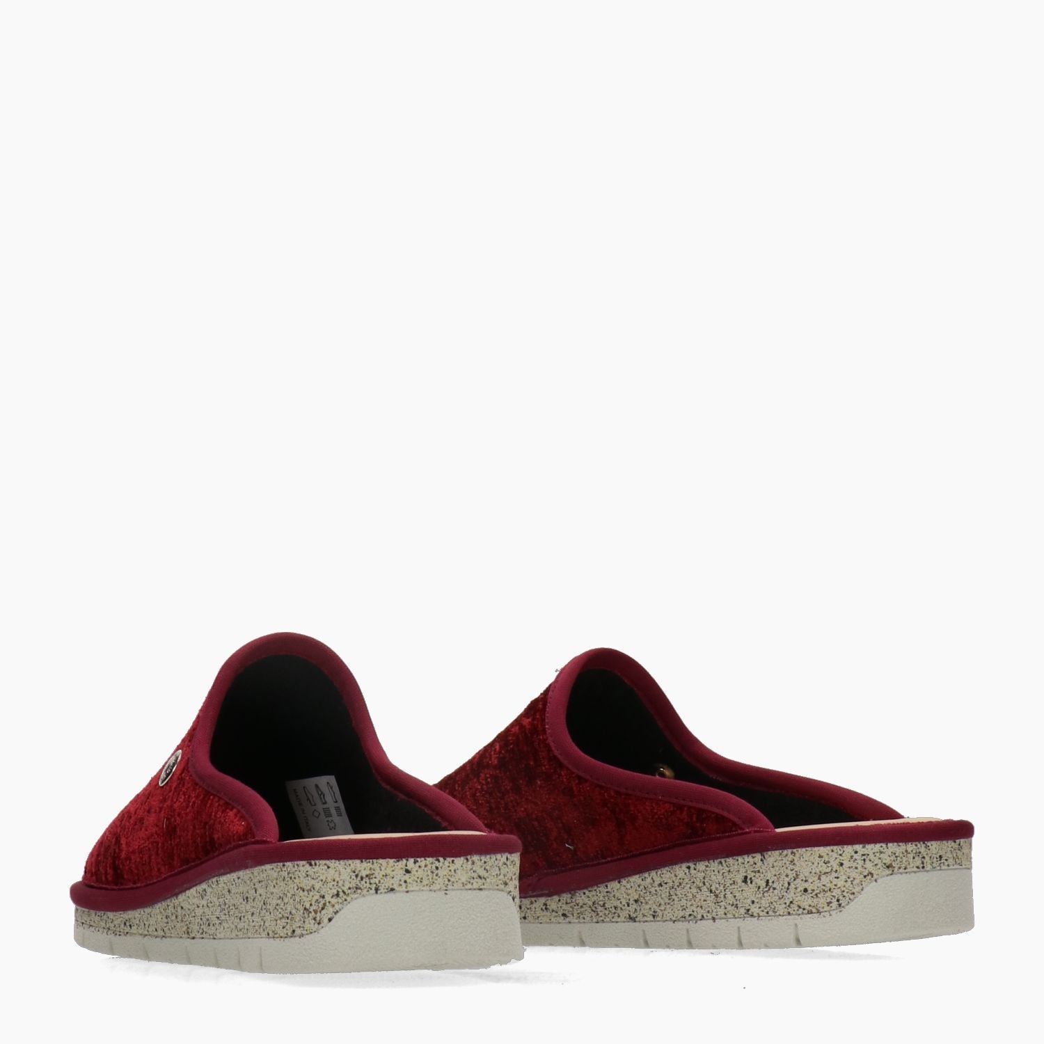 Ciabatta Grunland in velluto in colore bordeaux. Punta tonda. Soletta Re-Soft in vera pelle. Suola in gomma. Suola di 5 cm. Collezione Grunland donna Autunno/Inverno.