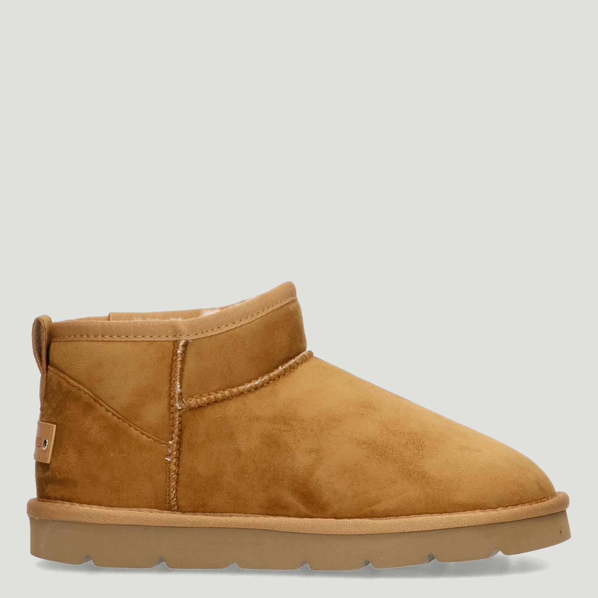 Stivaletto mini con tomaia in alcantara in colore cuoio. Interno in ecopelo avorio. Logo sul tallone. Suola in gomma di 3 cm. Collezione Griunland donna Autunno/Inverno.
