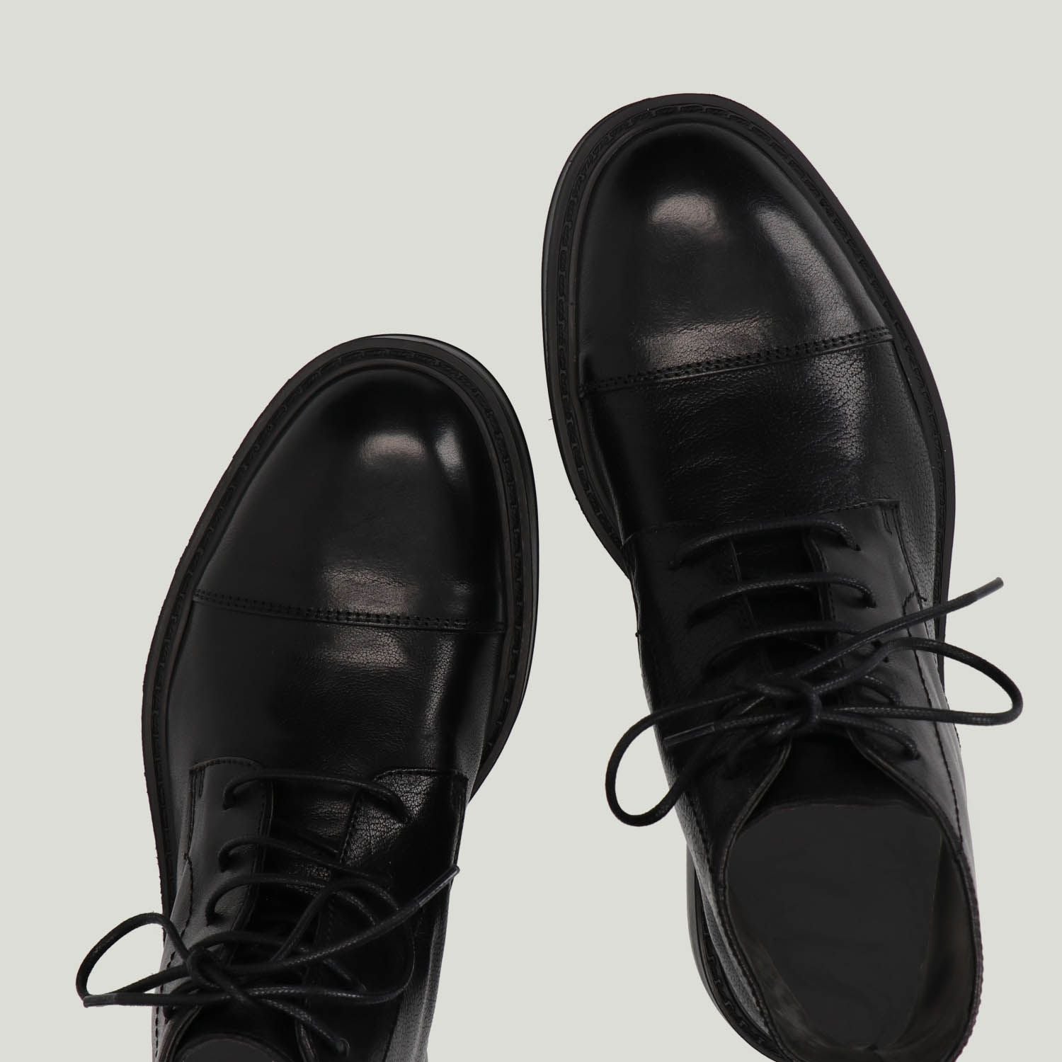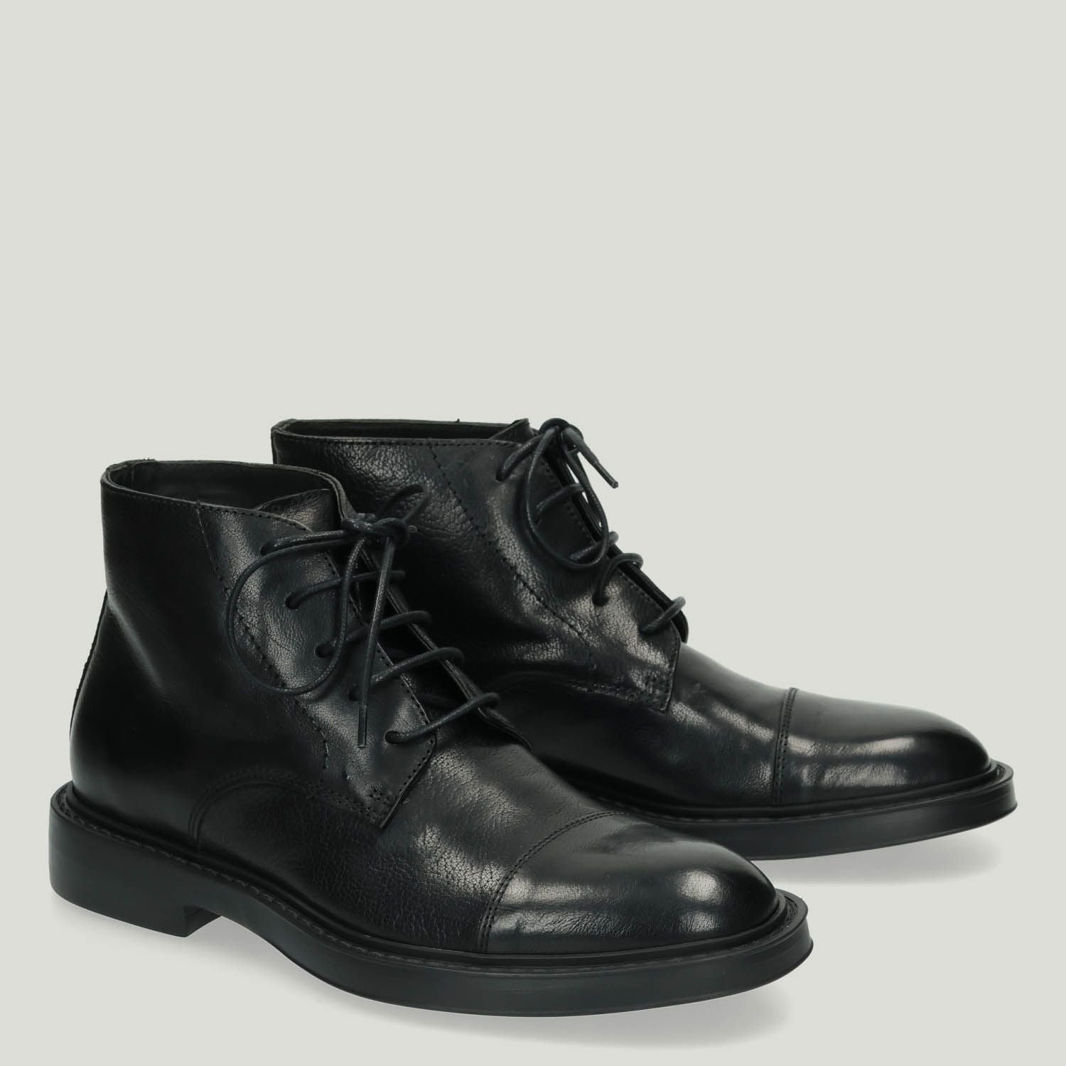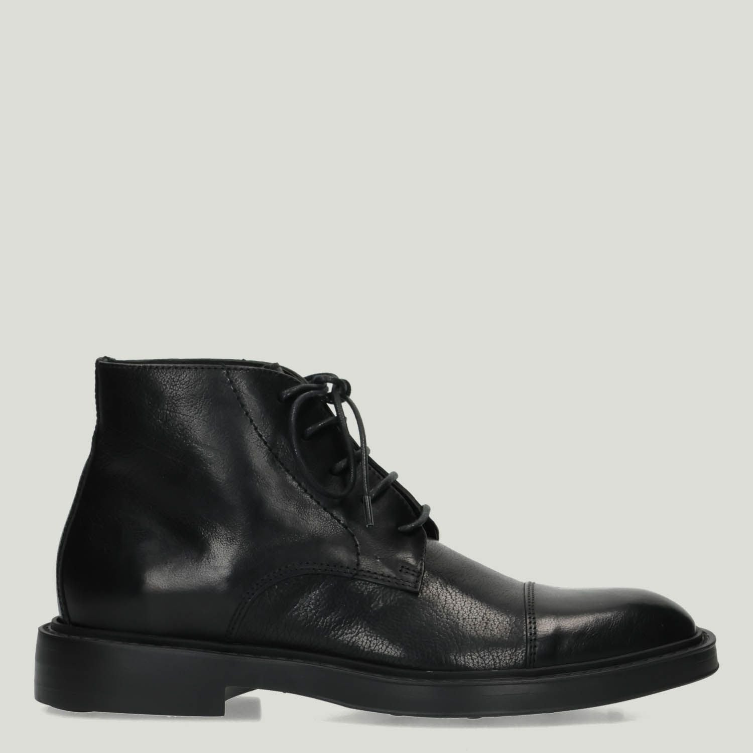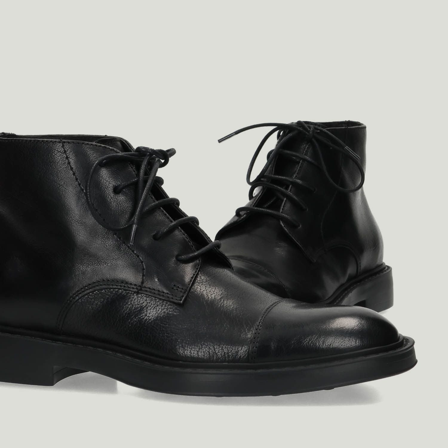 Polacchino in pelle nera con puntale. Interno in pelle con sottopiede non estraibile. Suola in gomma con tacco di 2,5 cm. Collezione uomo Hundred100 autunno/inverno.