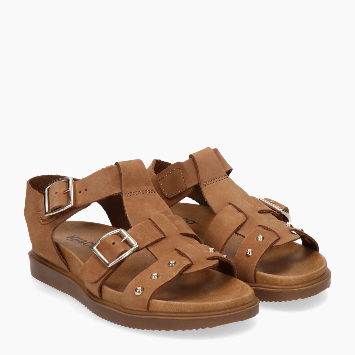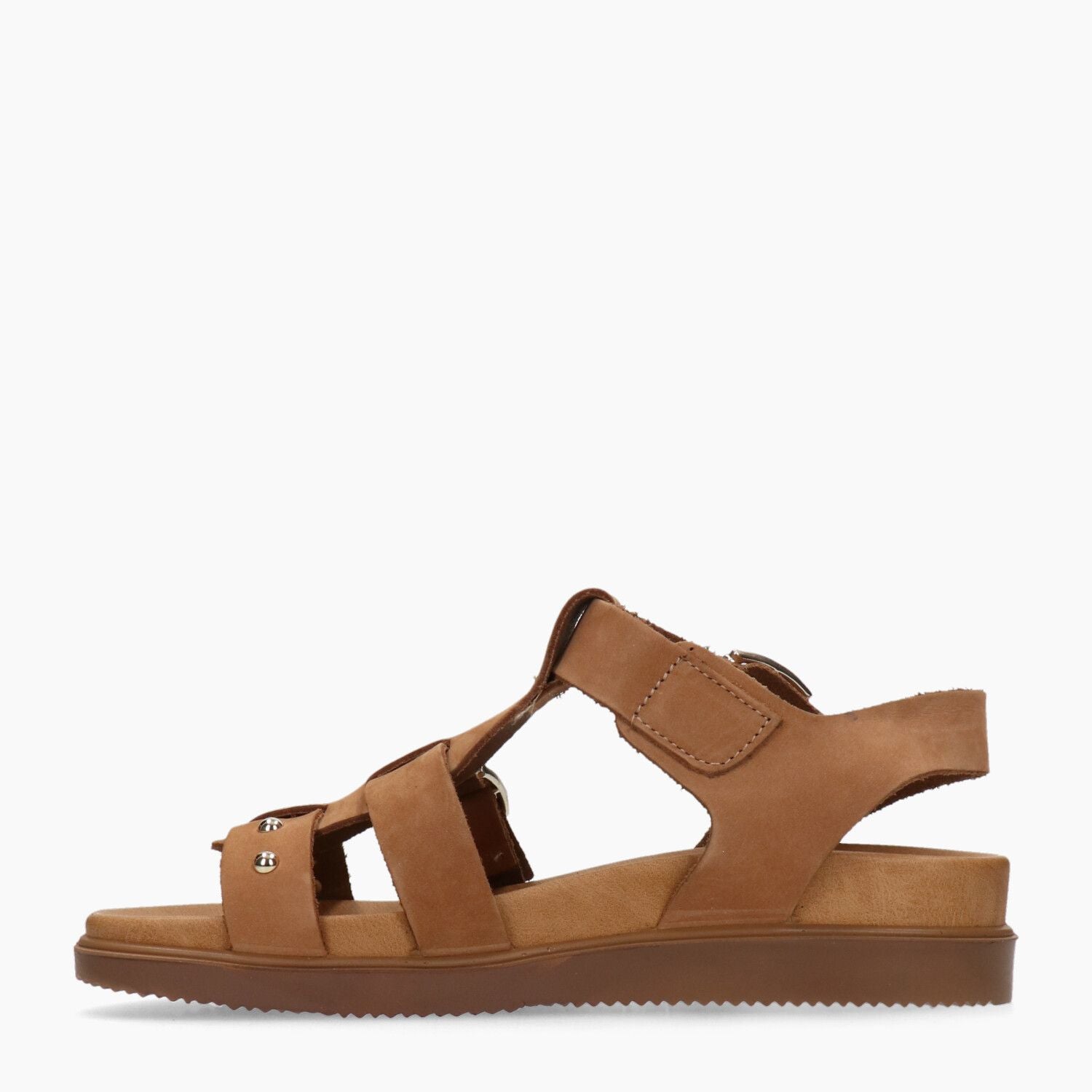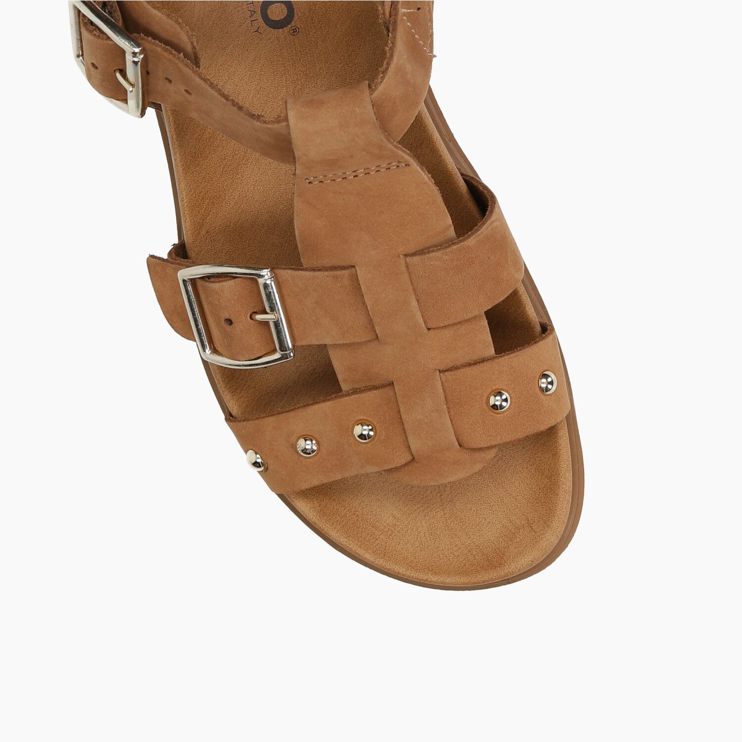 Sandali in nabuk cuoio con doppia fibbia, fondo gomma.