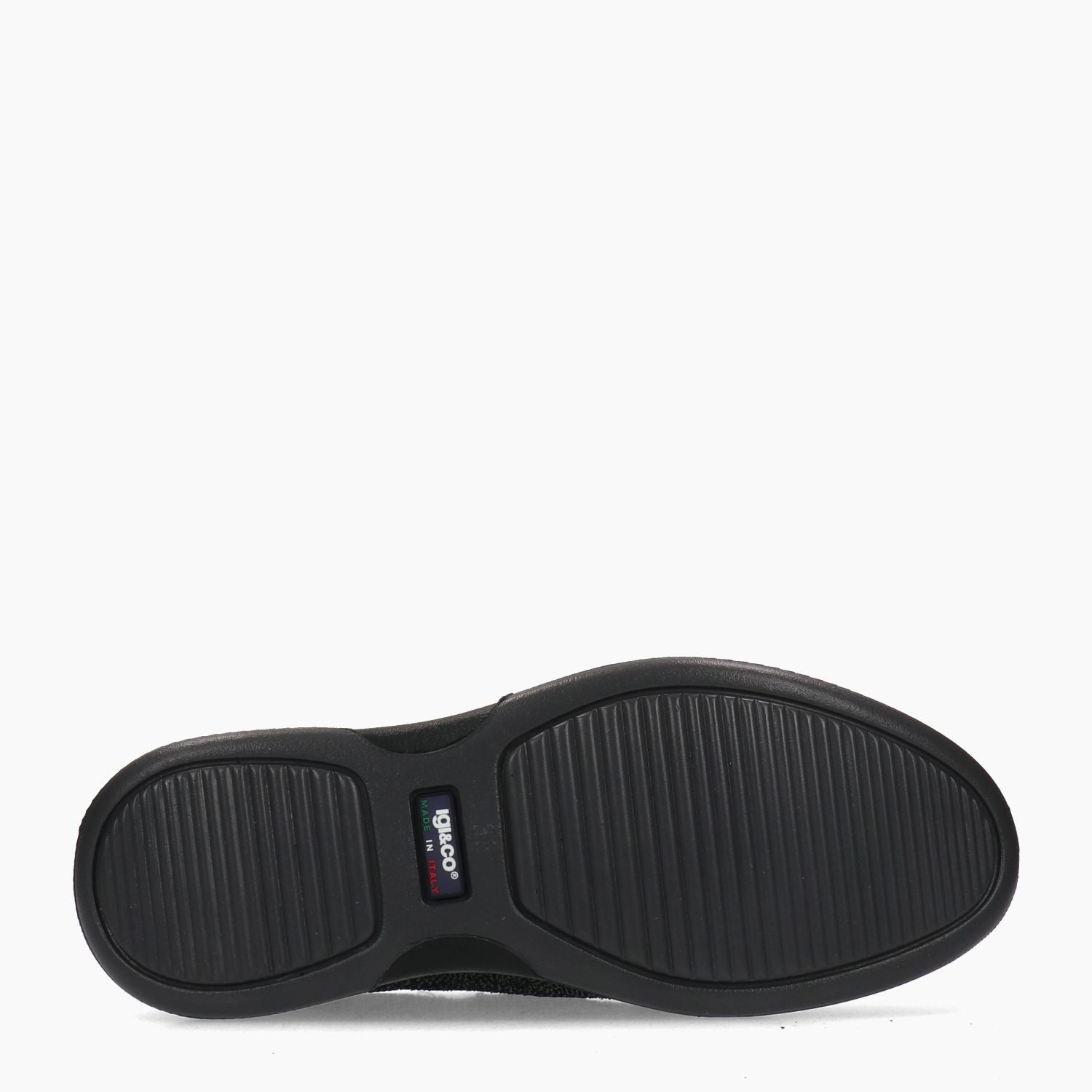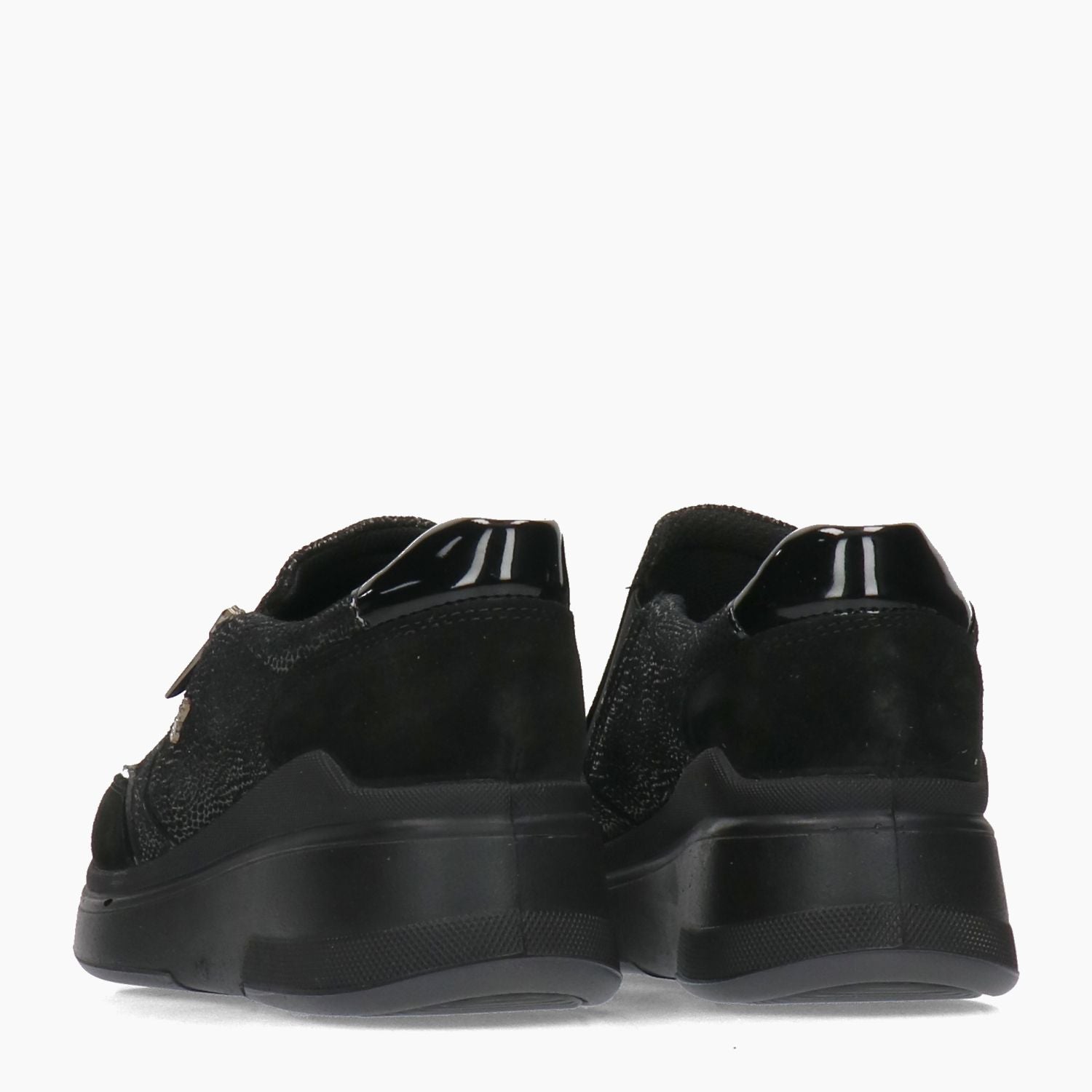 Sneakers Igi&Co con tomaia in pelle laminata stampata in colore nero. Punta tonda. Chiusura con zip laterale. Interno in pelle e tessuto. Zeppa in gomma di 4,5 cm. Collezione Igi&Co donna Autunno/Inverno.