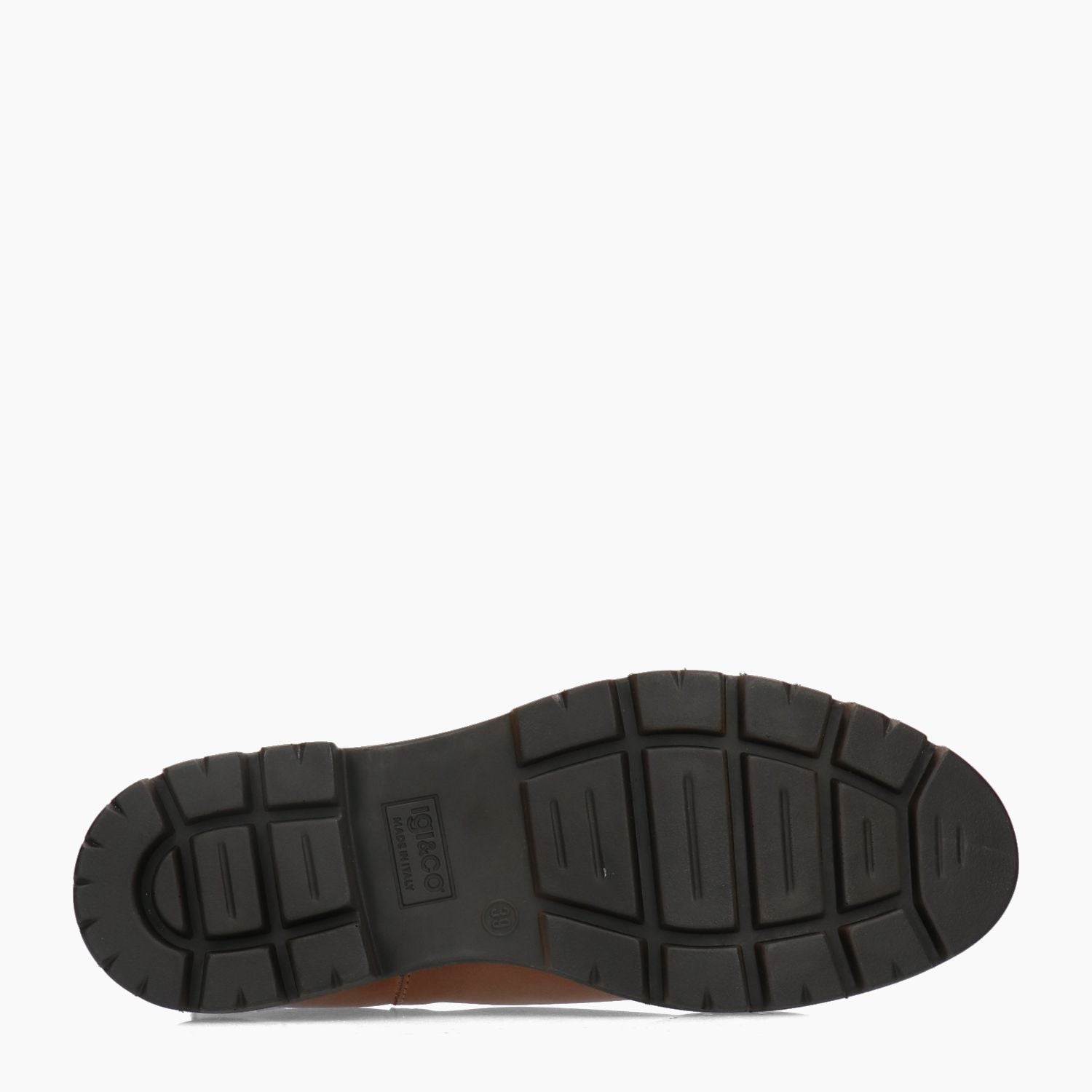 Stivaletto in stile chelsea Igi & Co con tomaia in pelle sfumata cuoio. Punta tonda. Inserti elastici laterali. Suola in gomma di 3 cm. Collezione Igi & Co donna Autunno/Inverno.