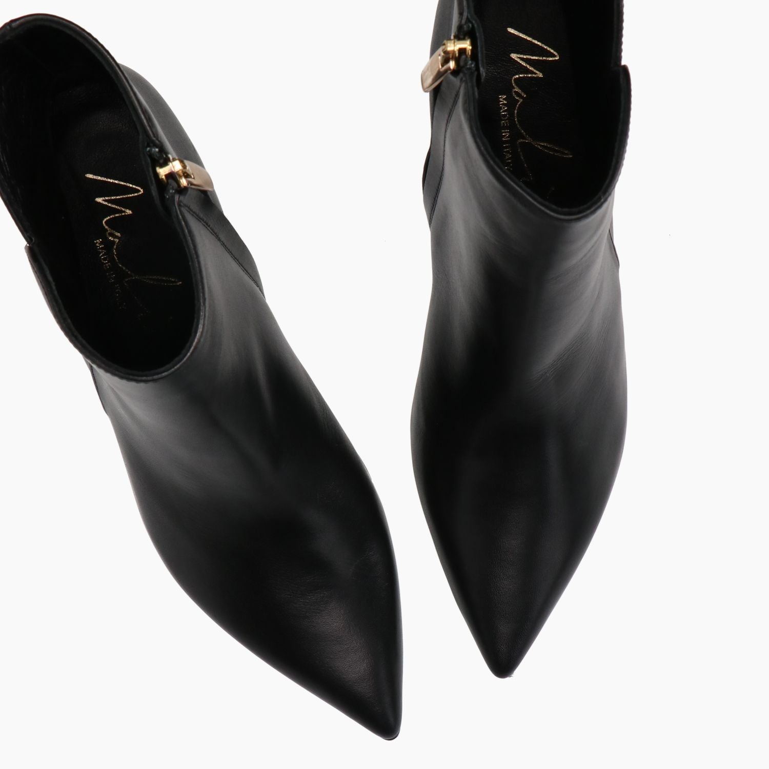 Tronchetto in nappa nera. Chiusura tramite zip interna. Interno in pelle. Suola in gomma con tacco di 7 cm. Collezione Malu' donna autunno/inverno.