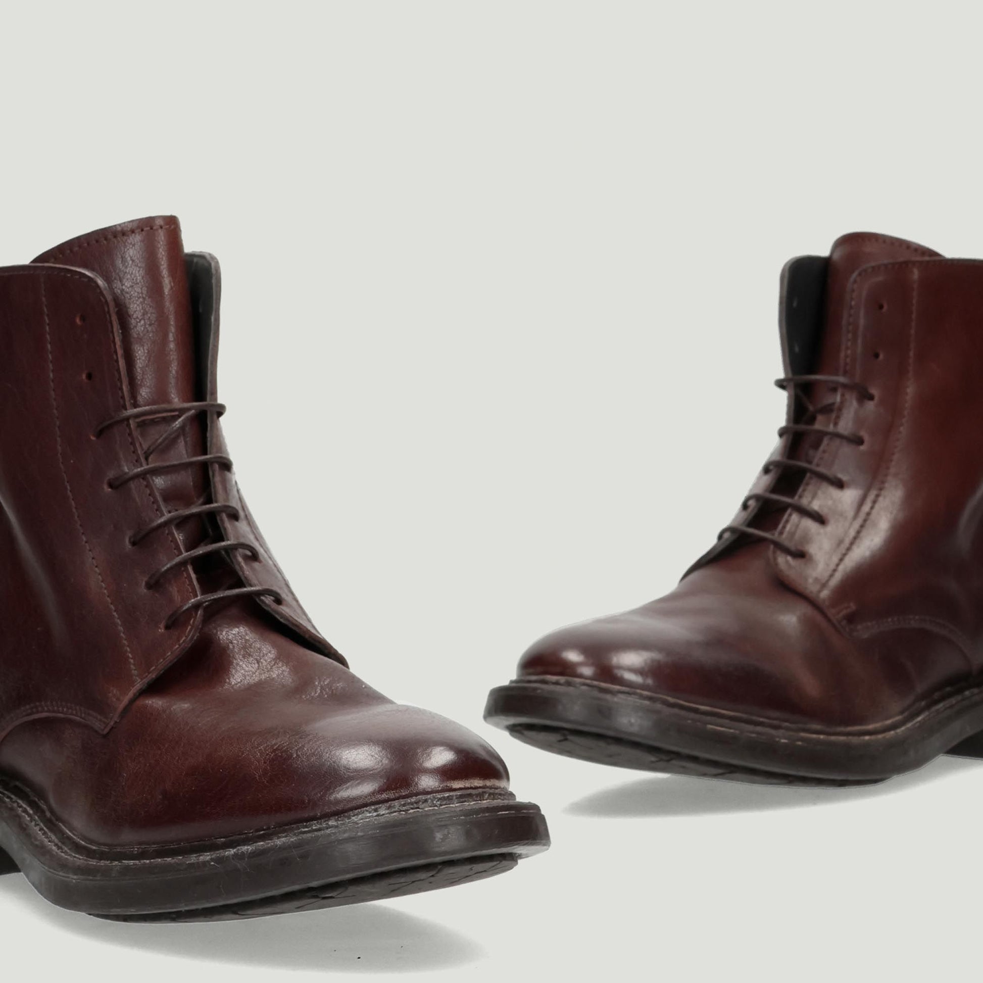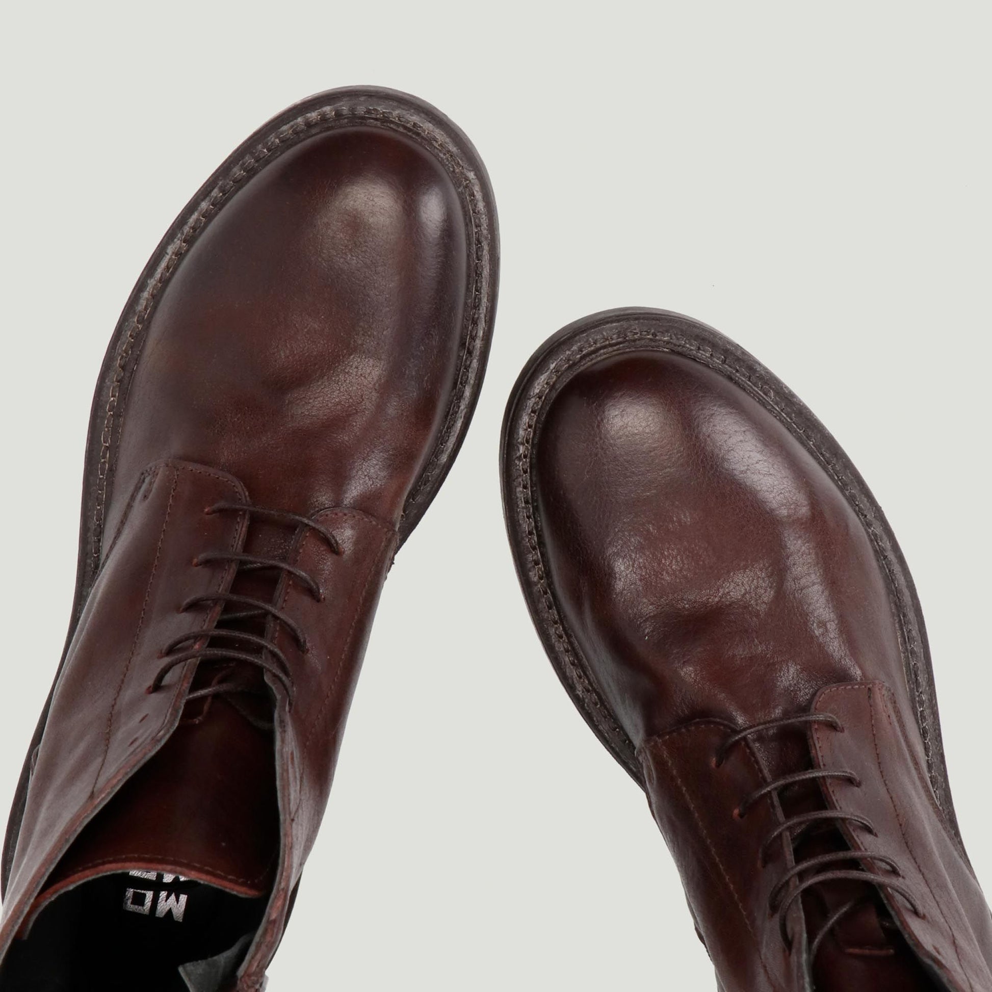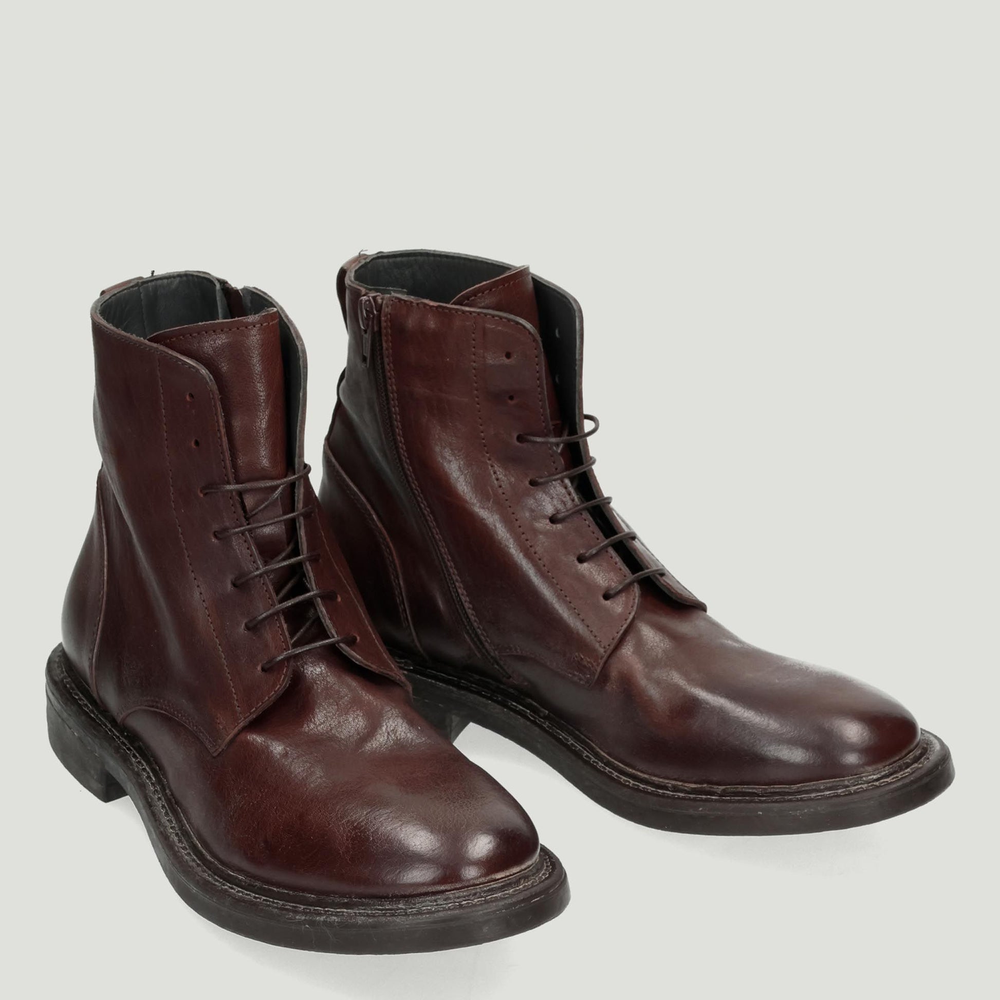 Polacchini Moma in pelle in colore ebano. Interno in pelle con sottopiede non estraibile. Chiusura con lacci e zip. Suola in gomma con tacco di 3 cm. Collezione Moma uomo Autunno/Inverno.