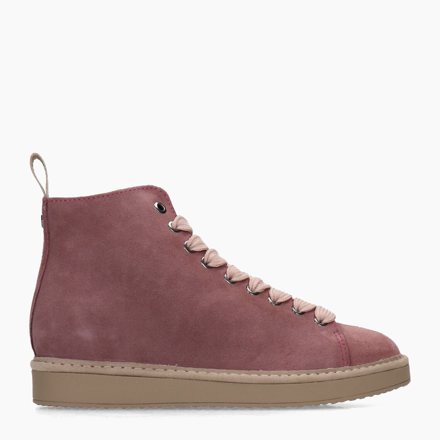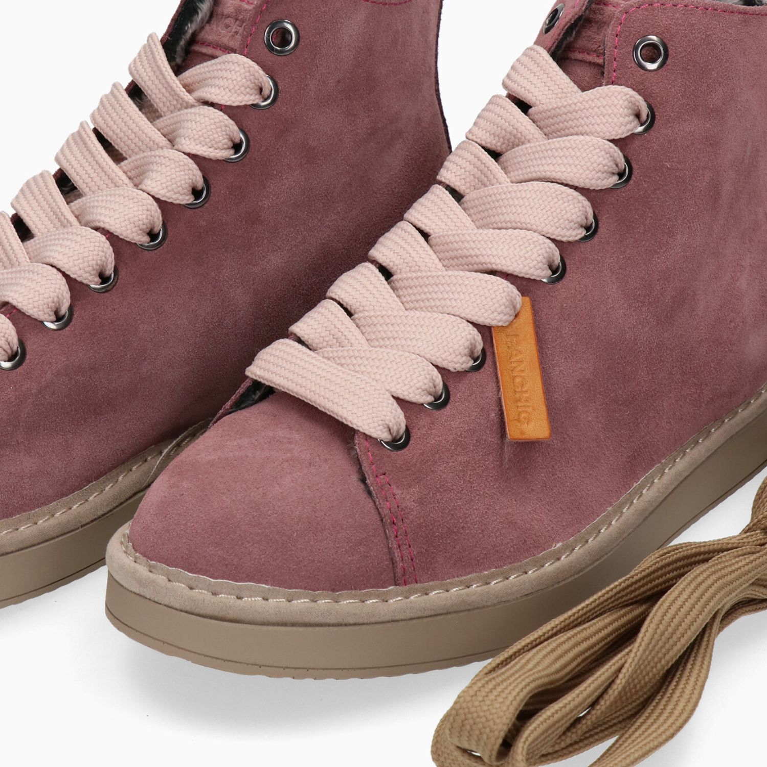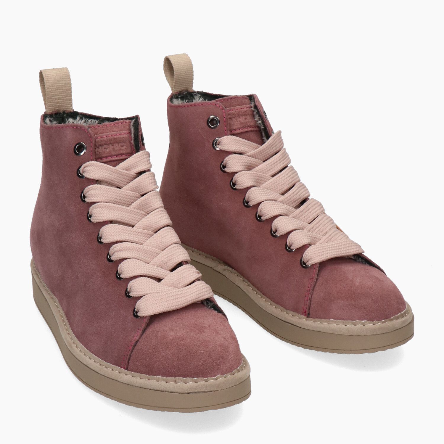 Polacchini in camoscio rosa antico, laccio color cammello di ricambio, fondo gomma.