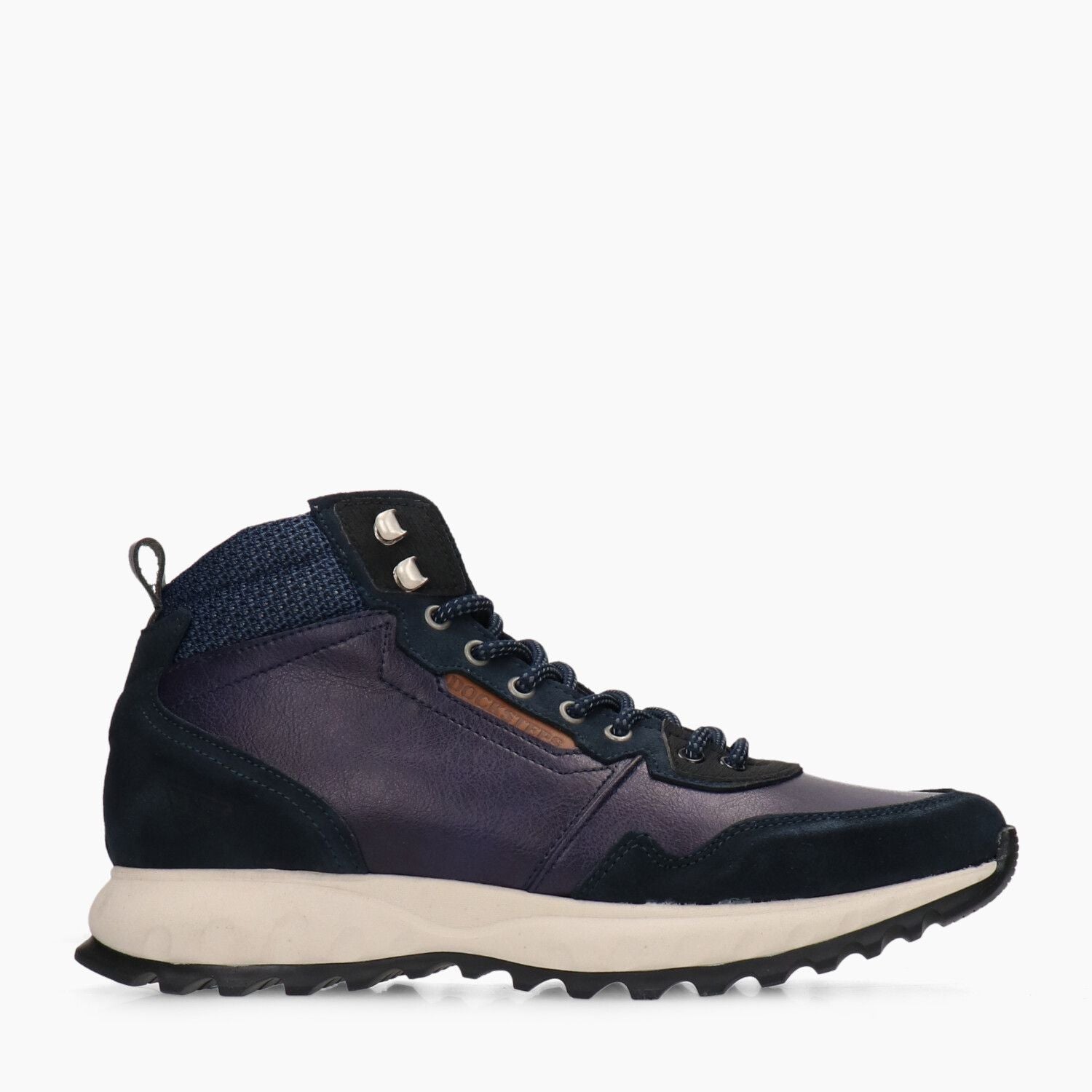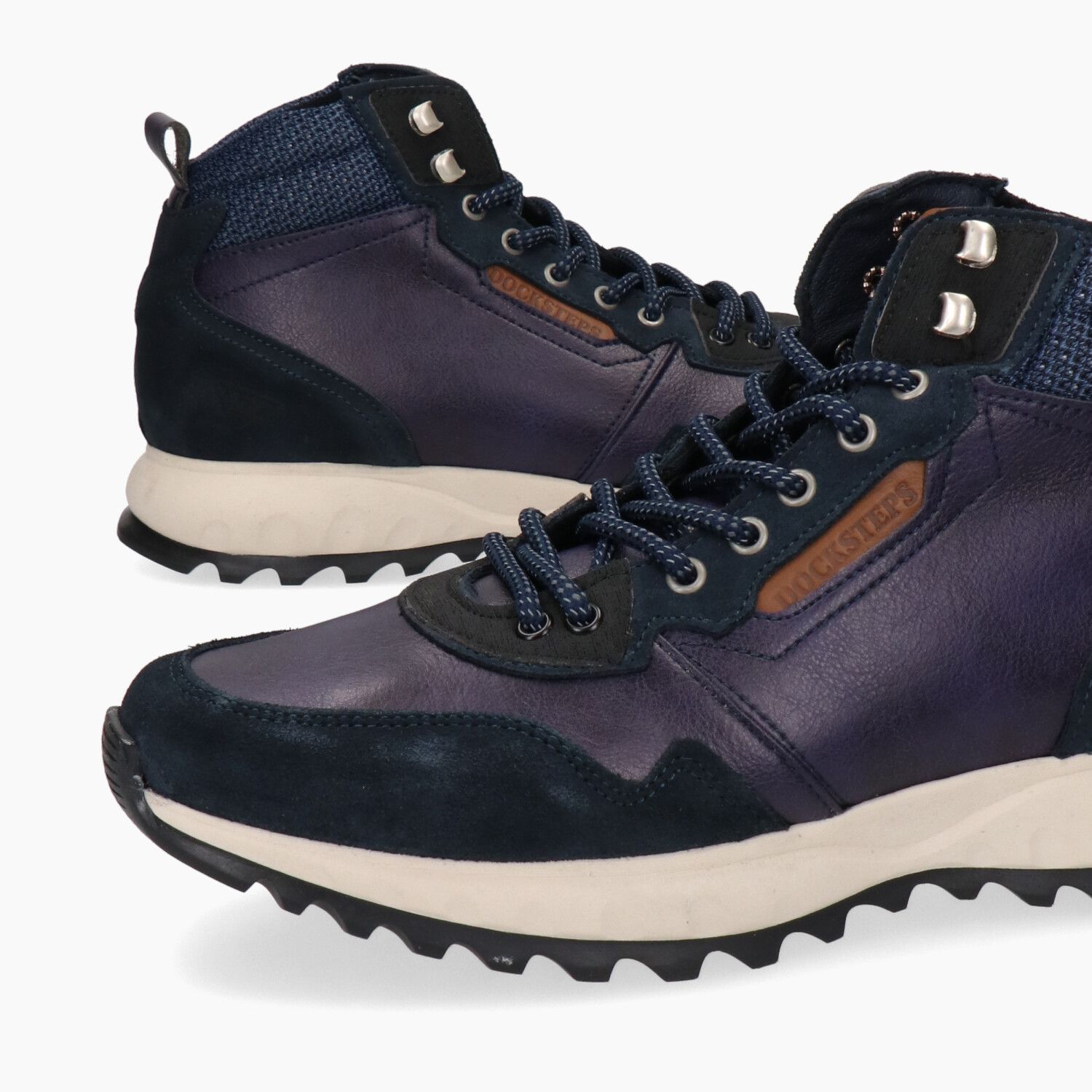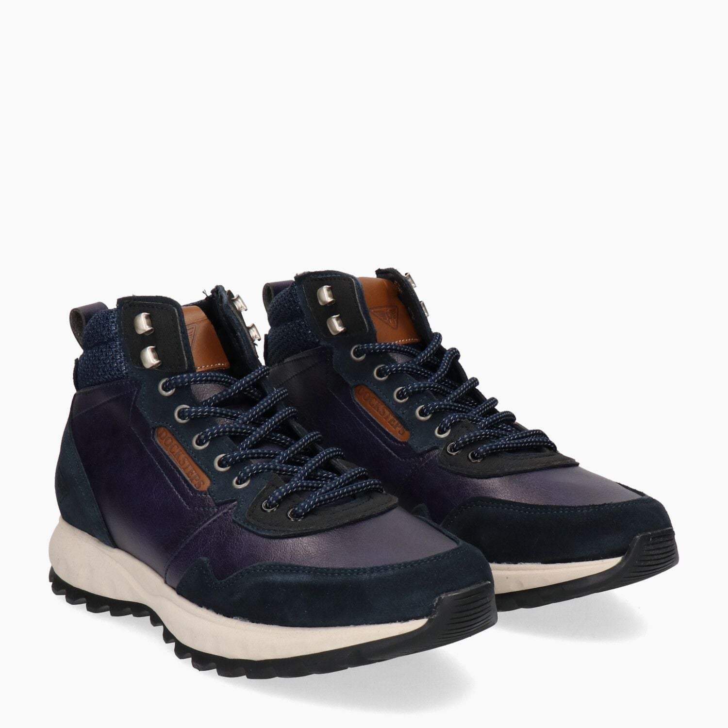 Polacchini stile trekking in pelle blu, fondo gomma.