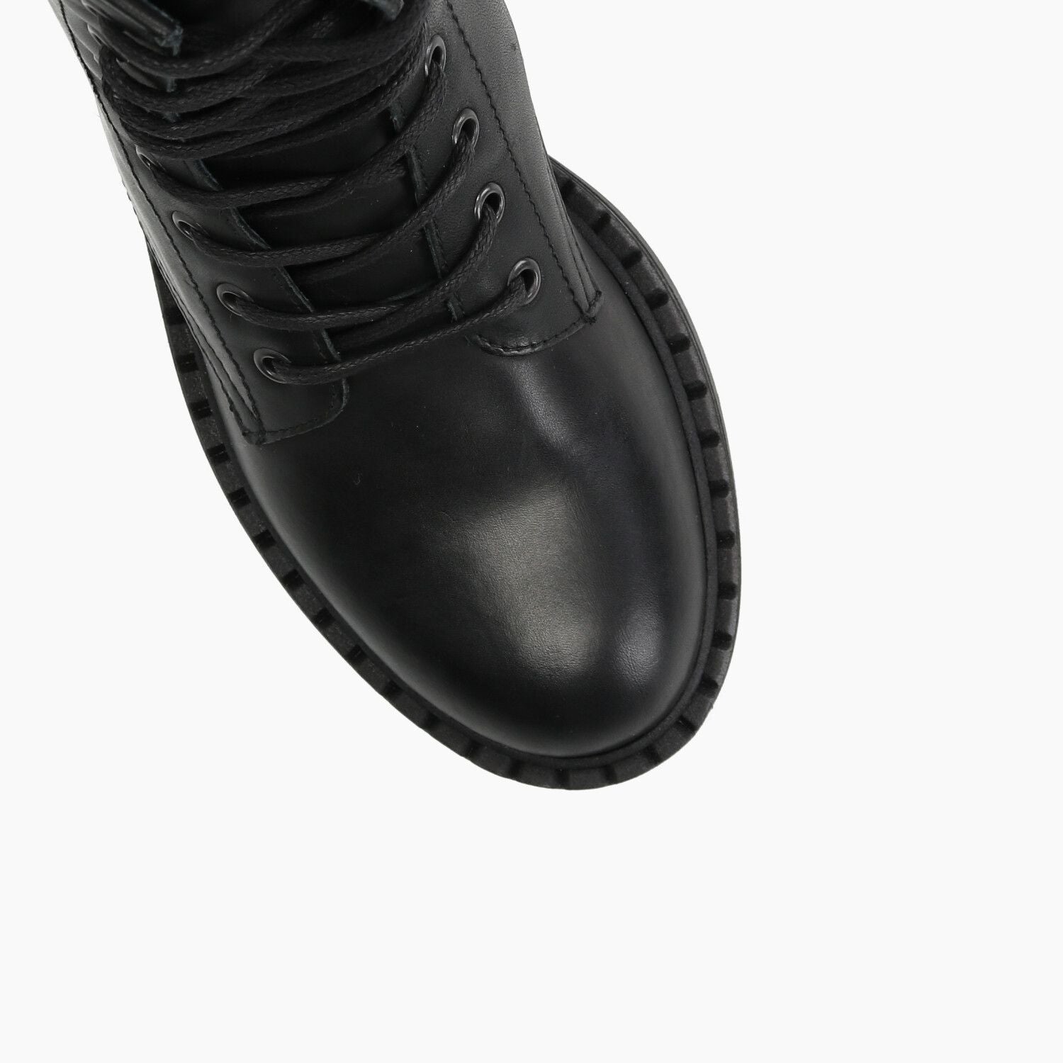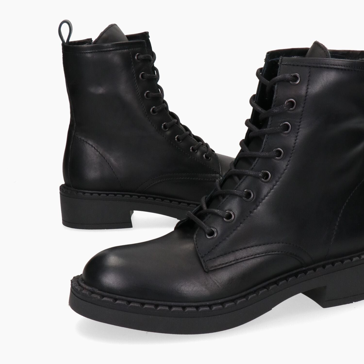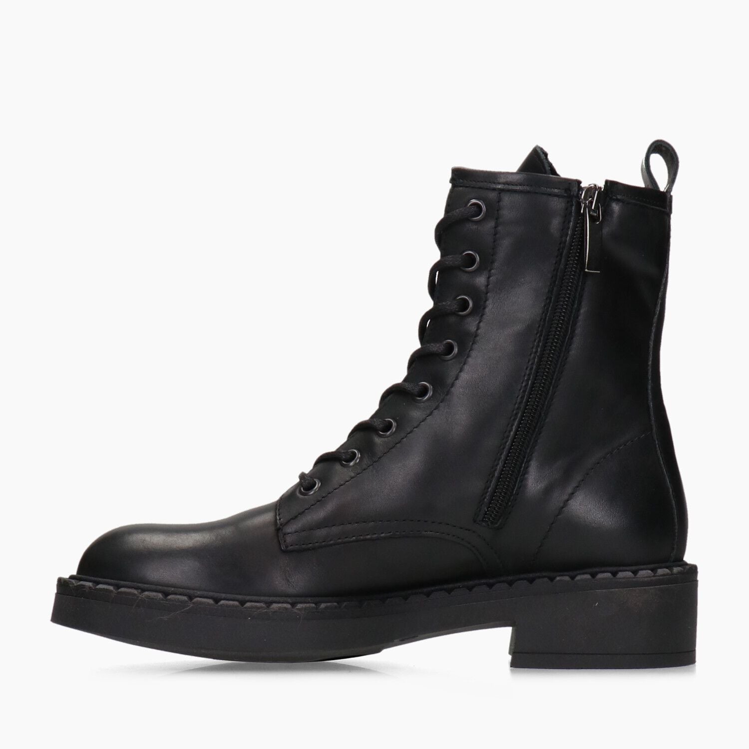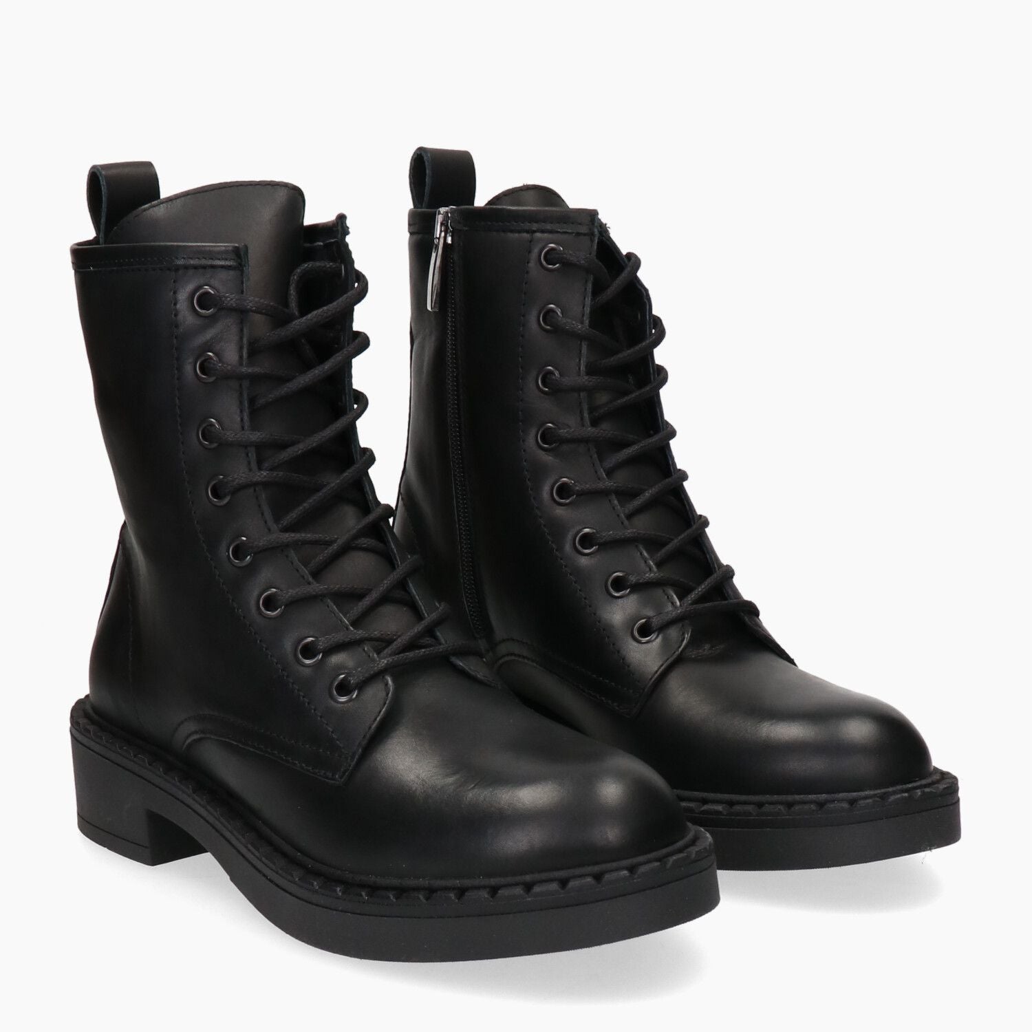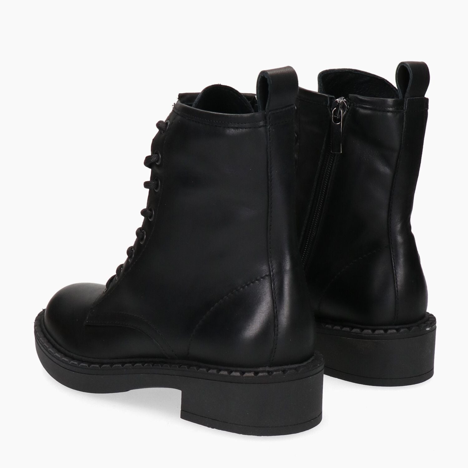 Anfibi in pelle nera con zip interna, tacco 30 fondo gomma.