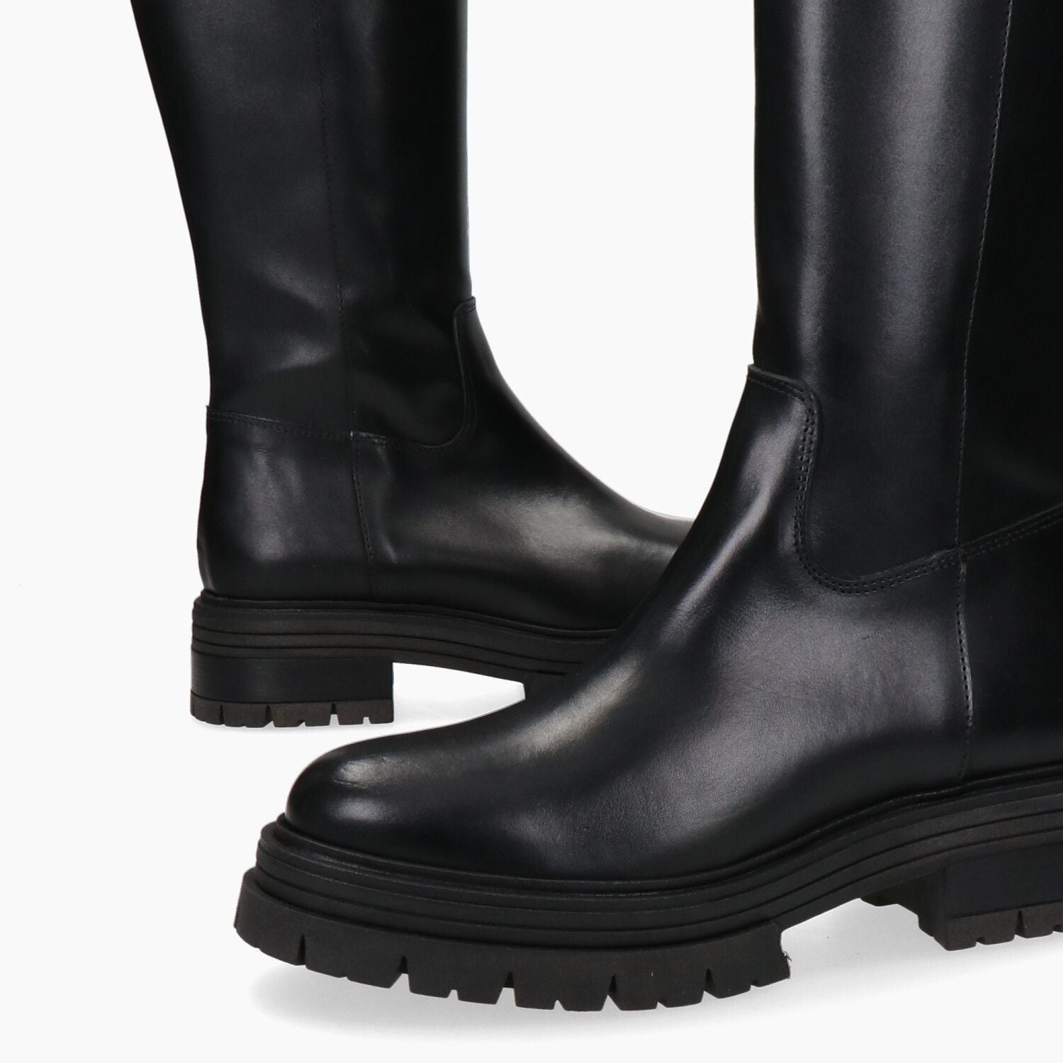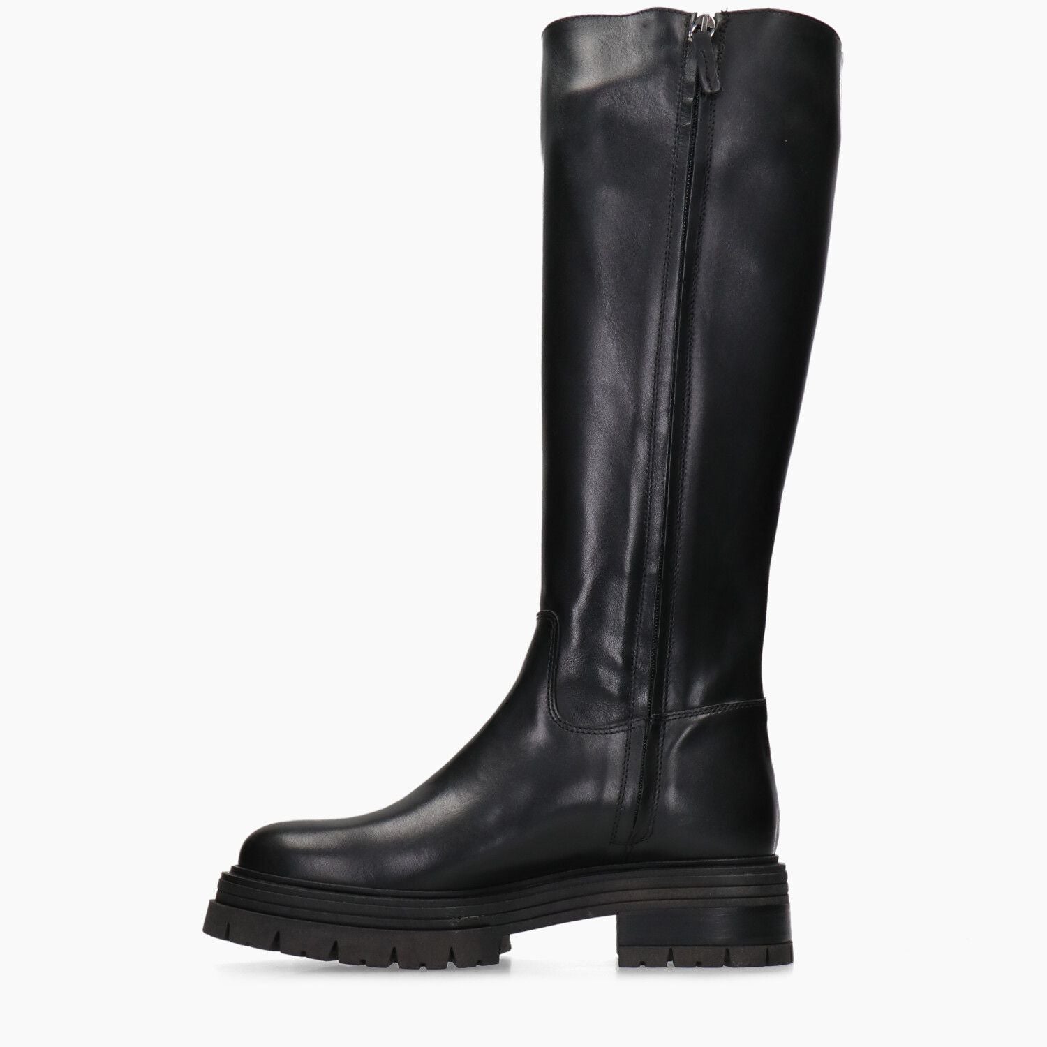 Stivali in nera con zip interna, fondo roccia in gomma.