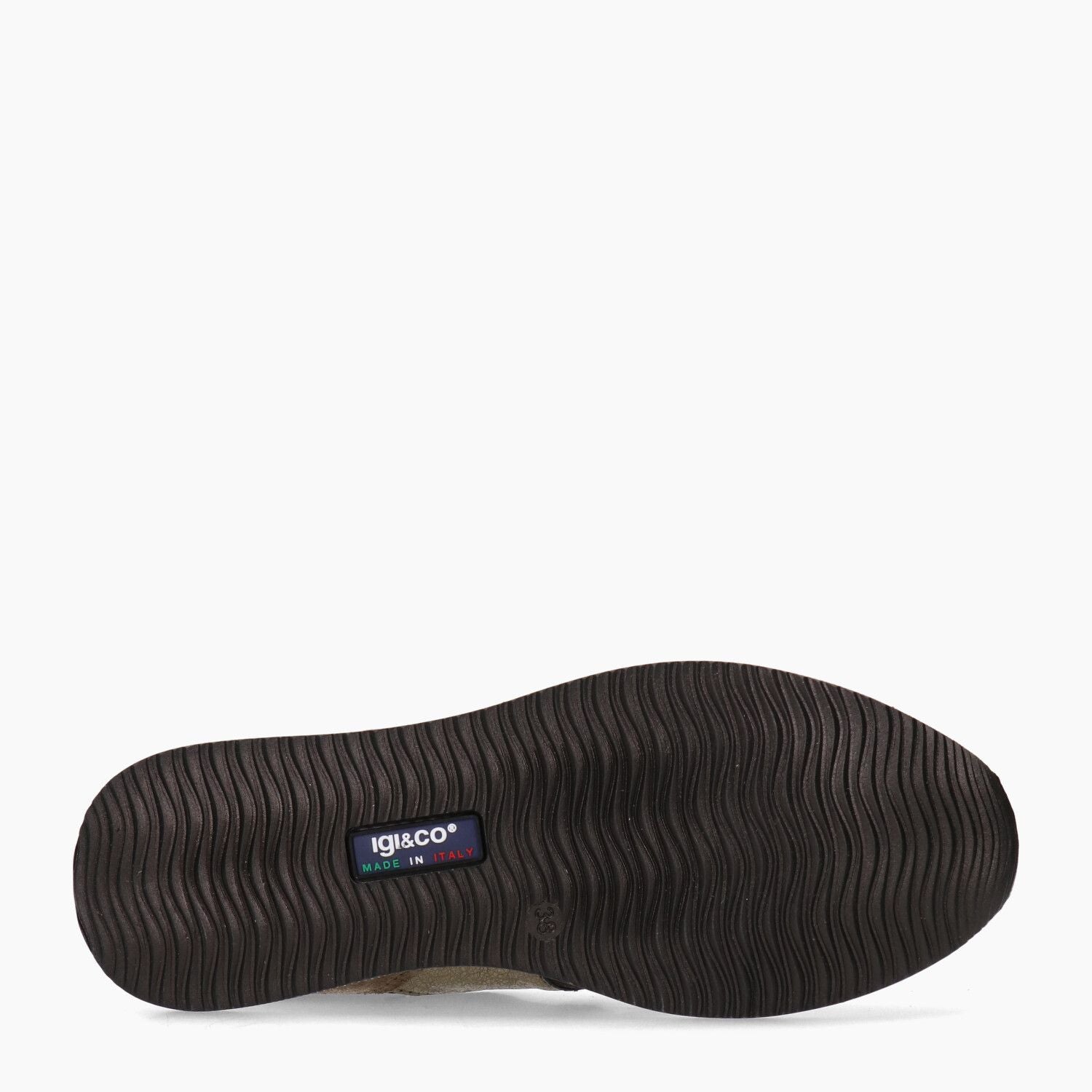 Sneakers in camoscio fango e pelle glitterata, fondo gomma.