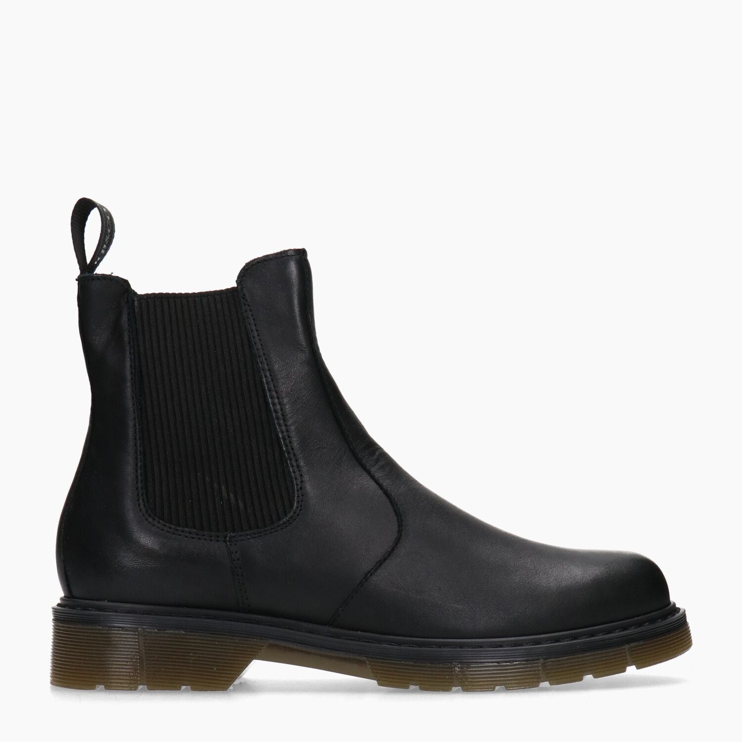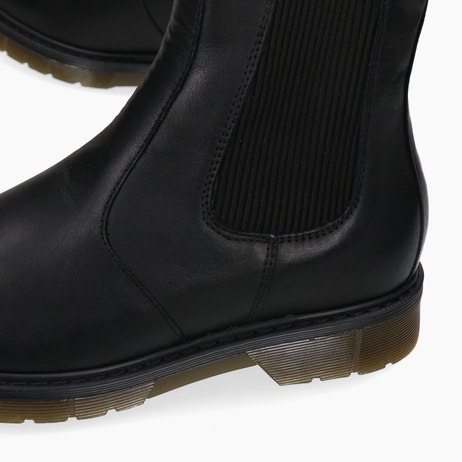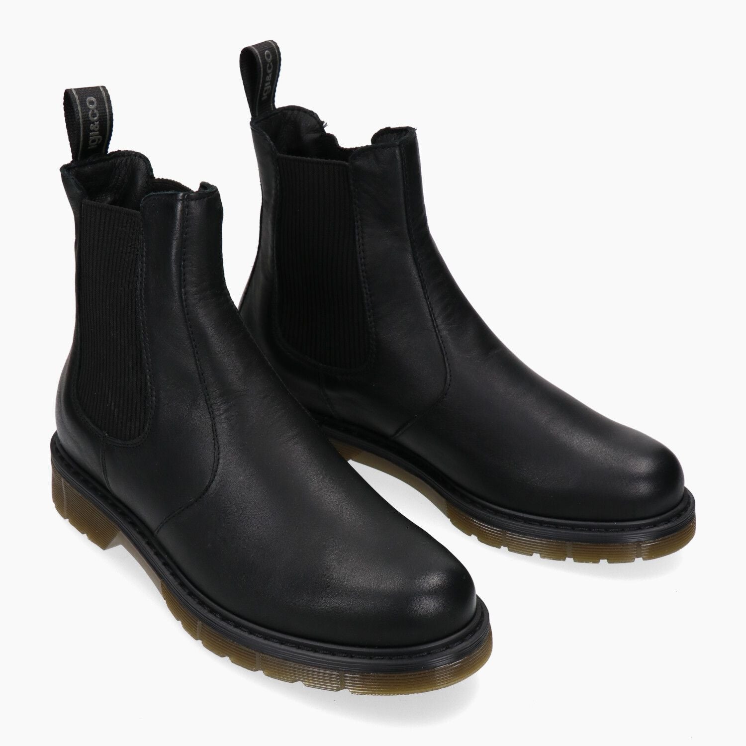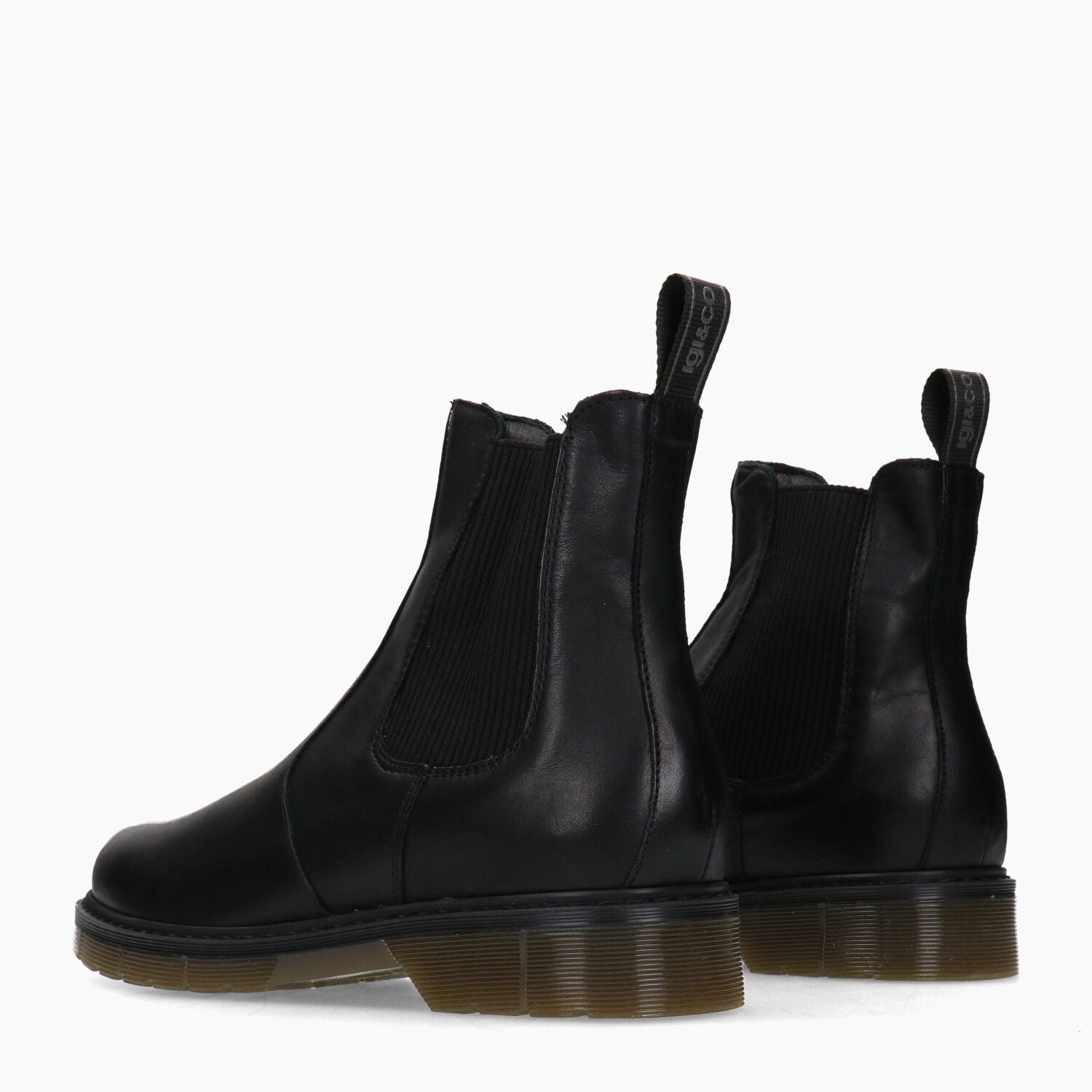 Stivaletti in pelle nera con elastici laterali a righe. Interno in tessuto con sottopiede in pelle rimovibile. Suola in gomma in colore mastice. Tacco 3 cm. Collezione Igi & Co donna Autunno/Inverno.