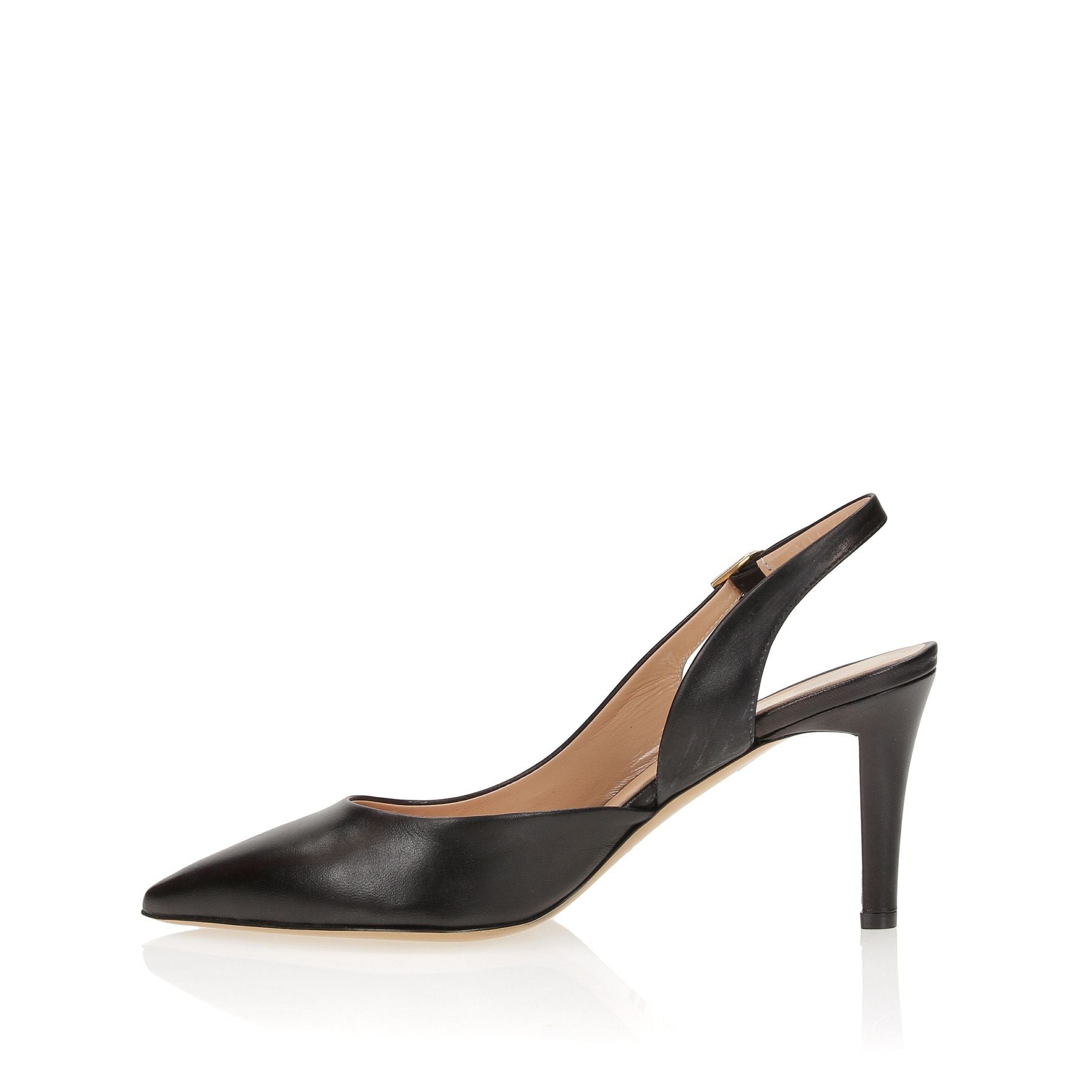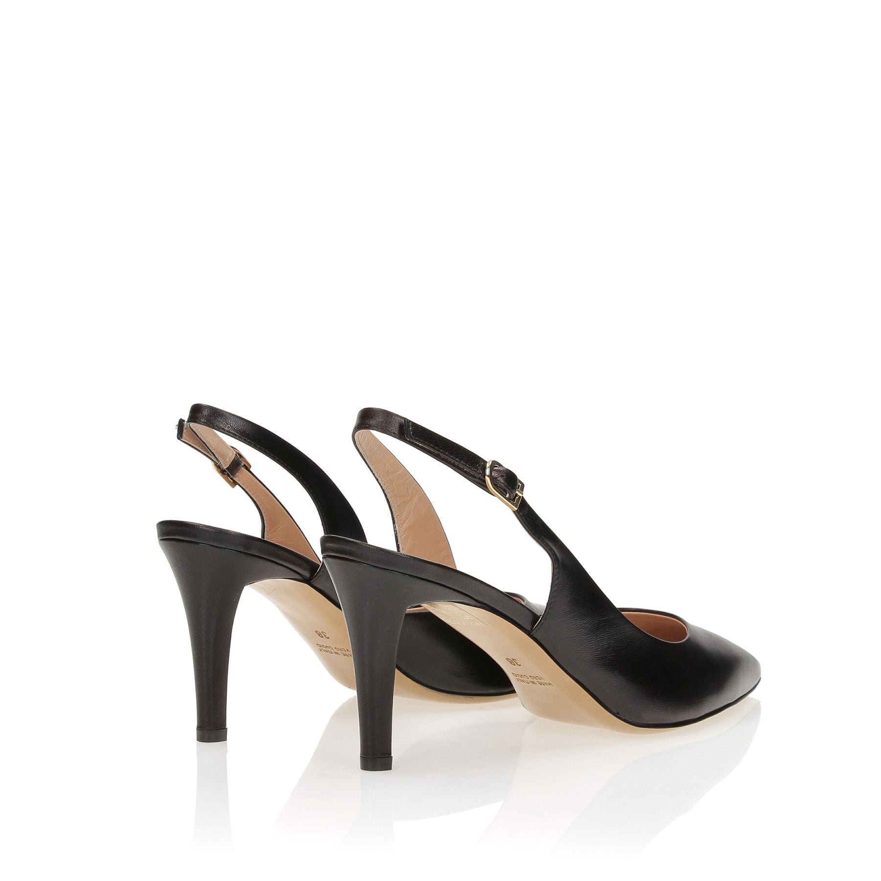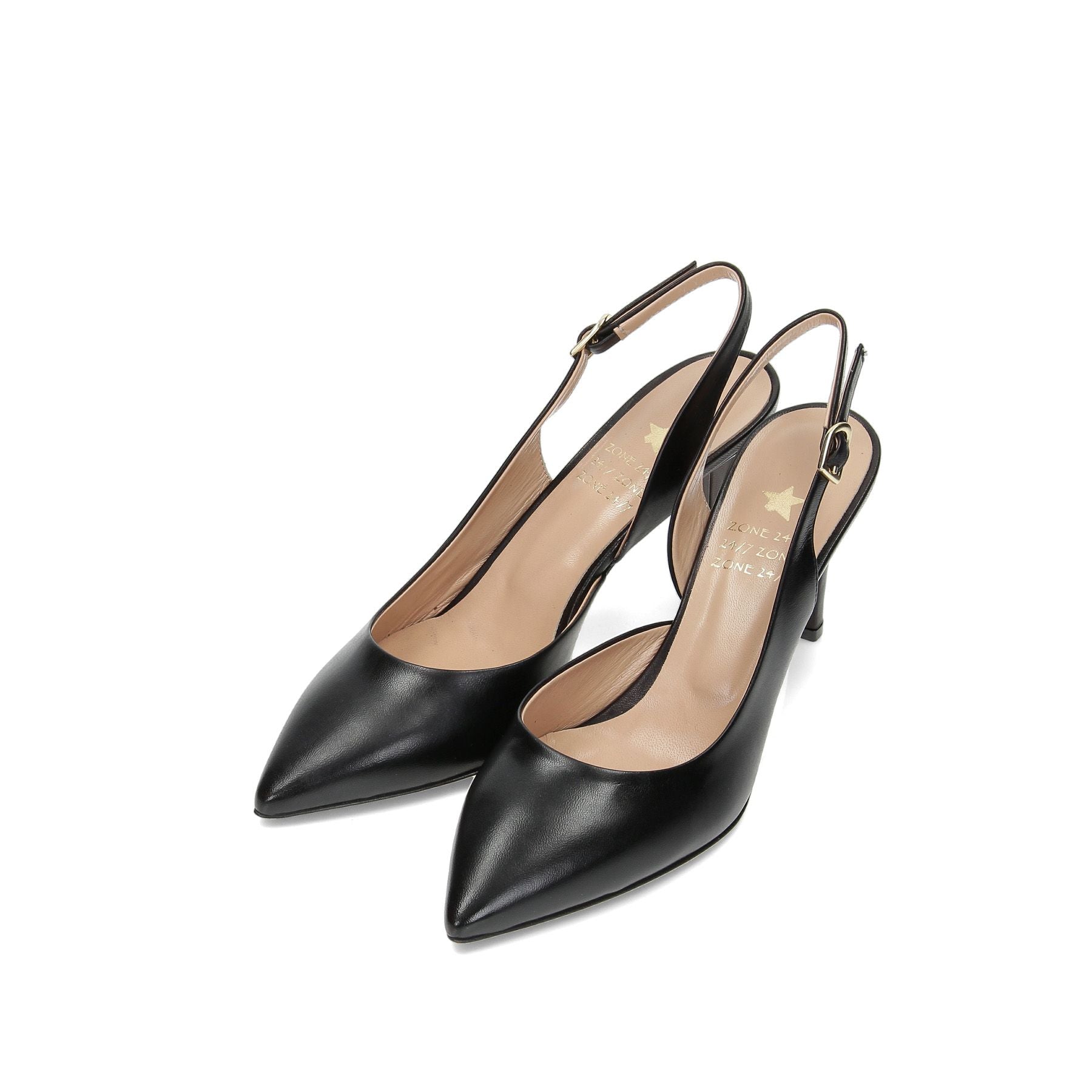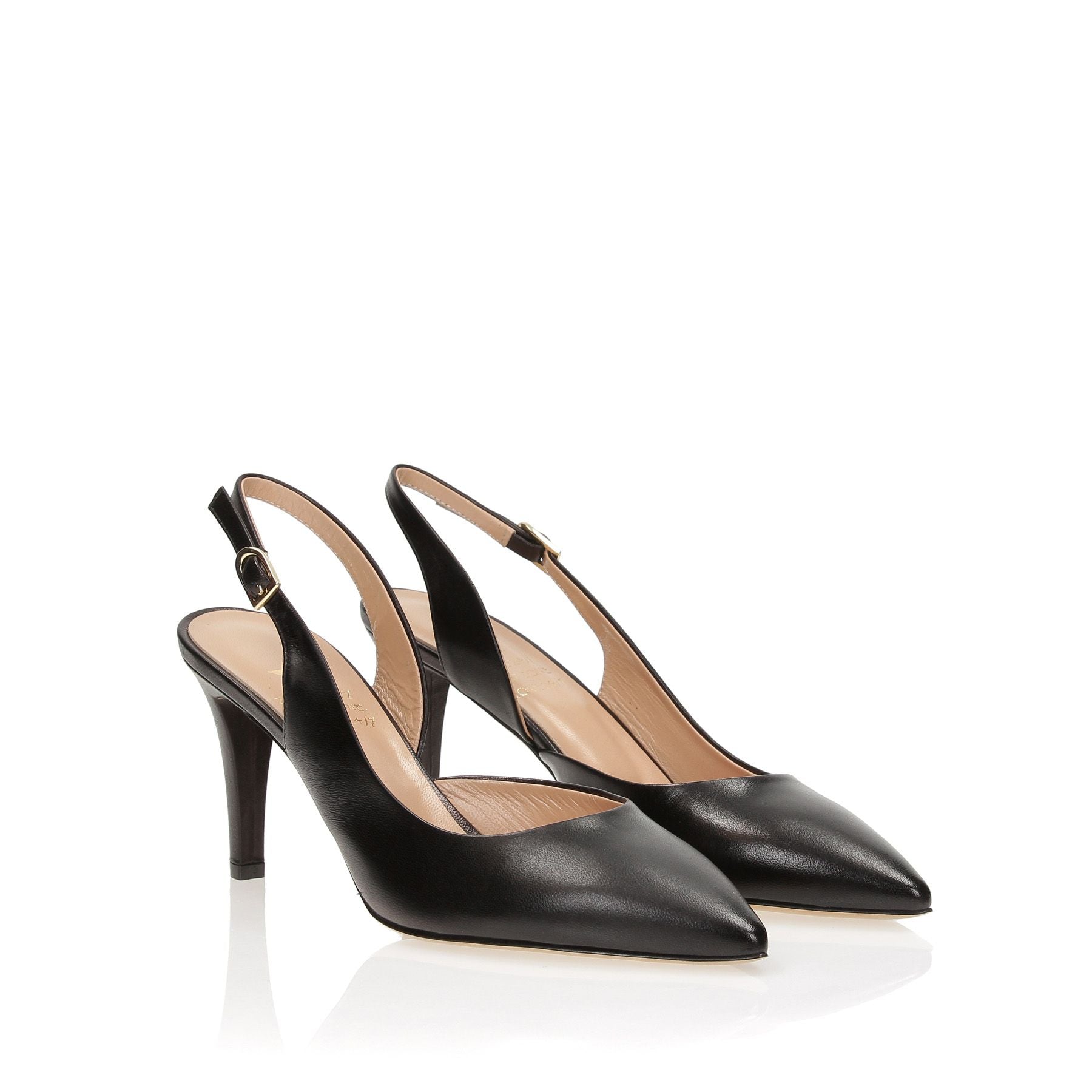 Chanel in pelle nera con interno aperto, tacco 70 fondo cuoio.