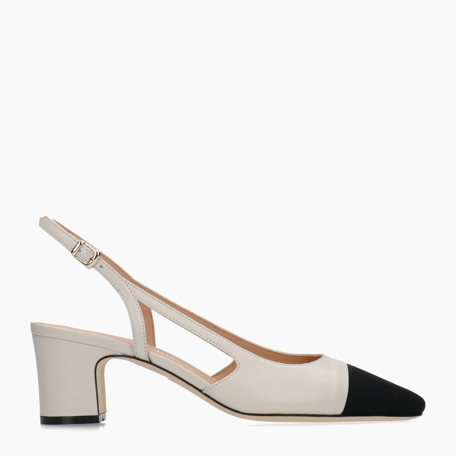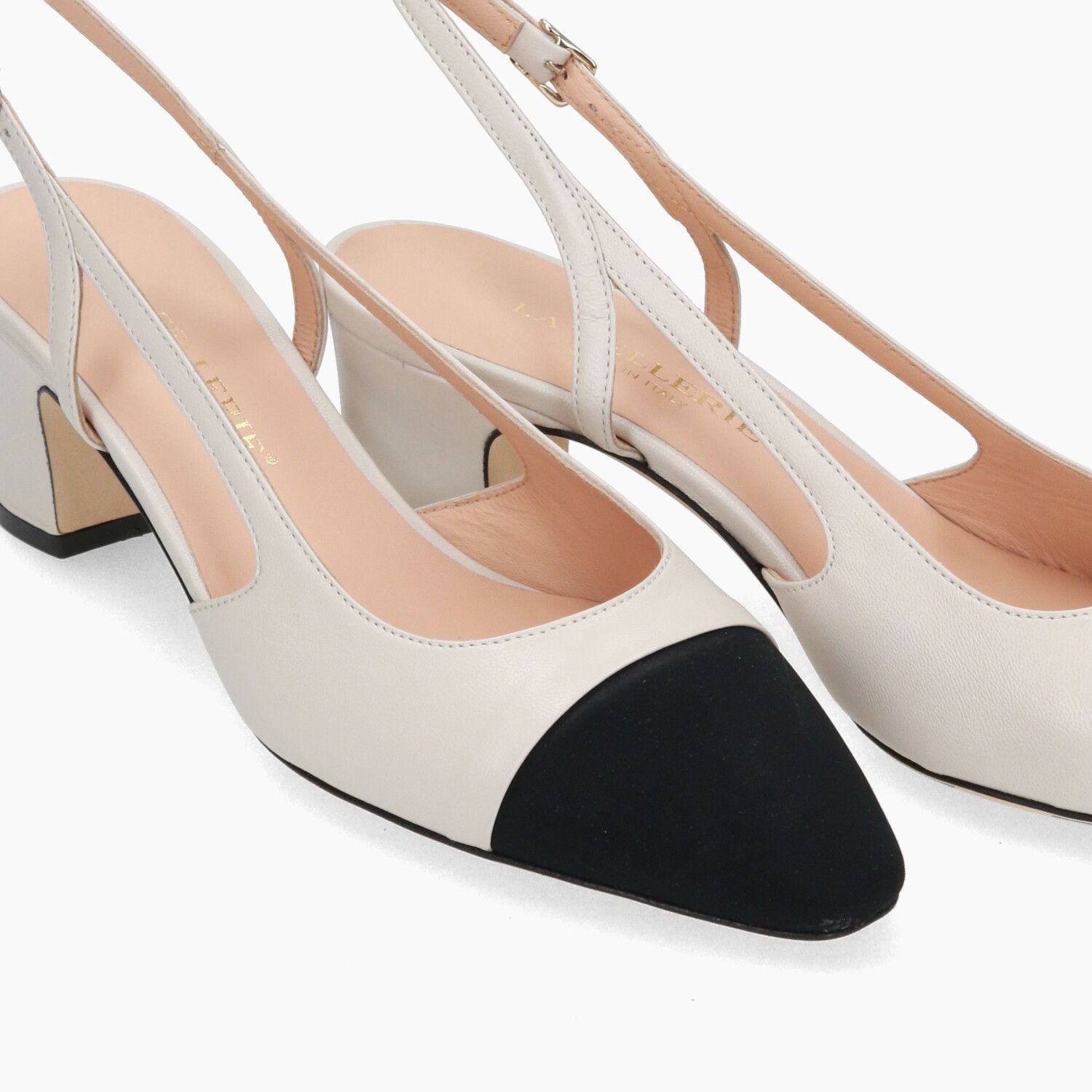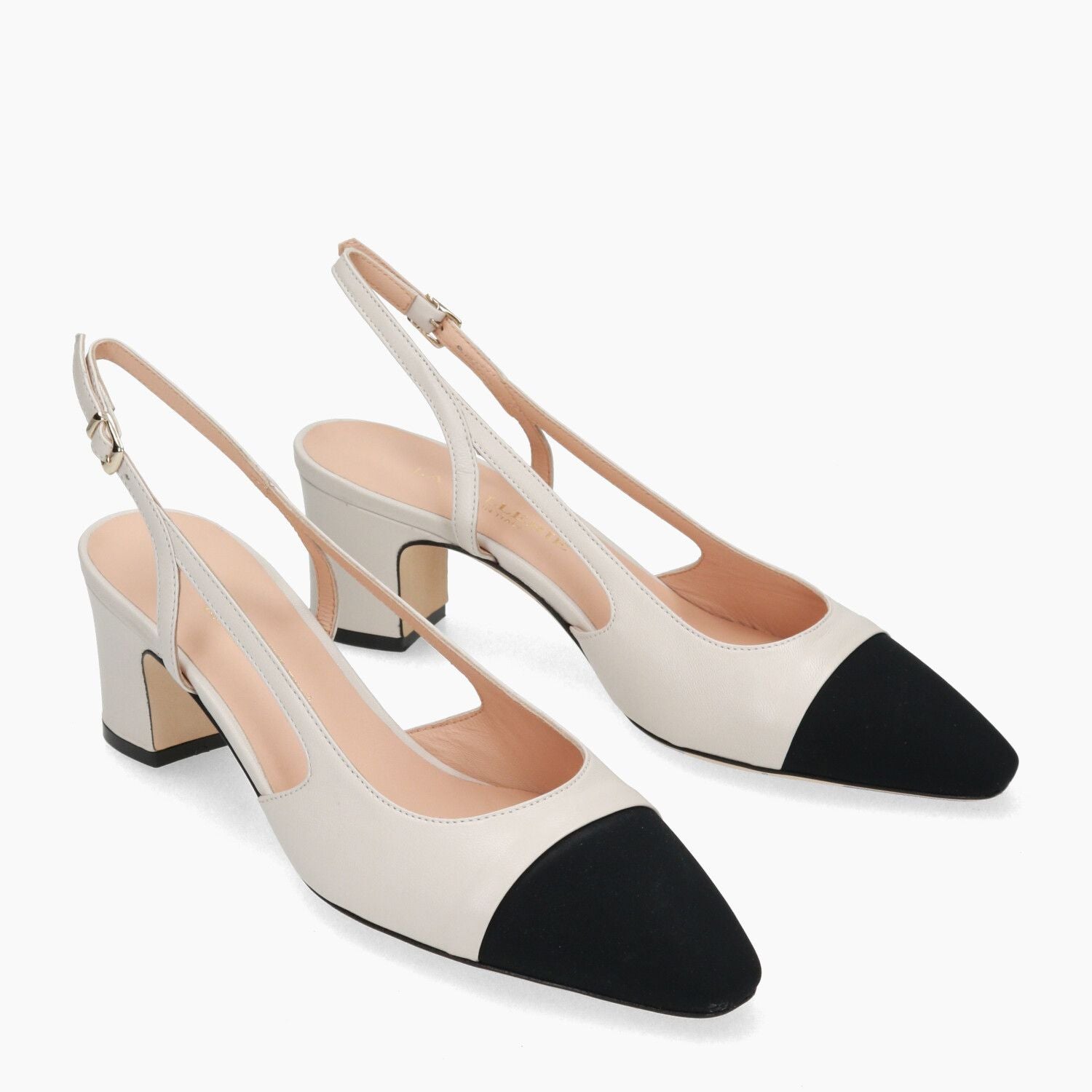 Slingback La Sellerie con tomaia in pelle avorio e tessuto nero. Cinturino posteriore regolabile. Interno in pelle. Tacco di 6 cm. Suola in cuoio. Collezione La Sellerie donna Primavera/Estate.