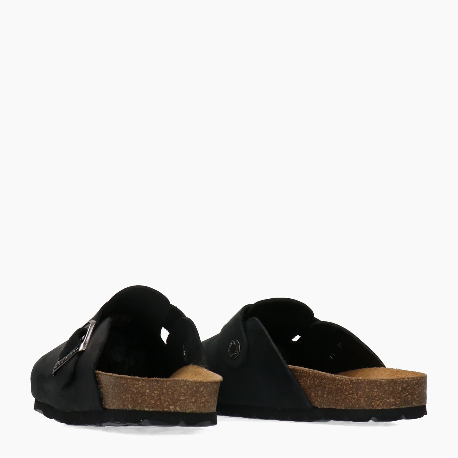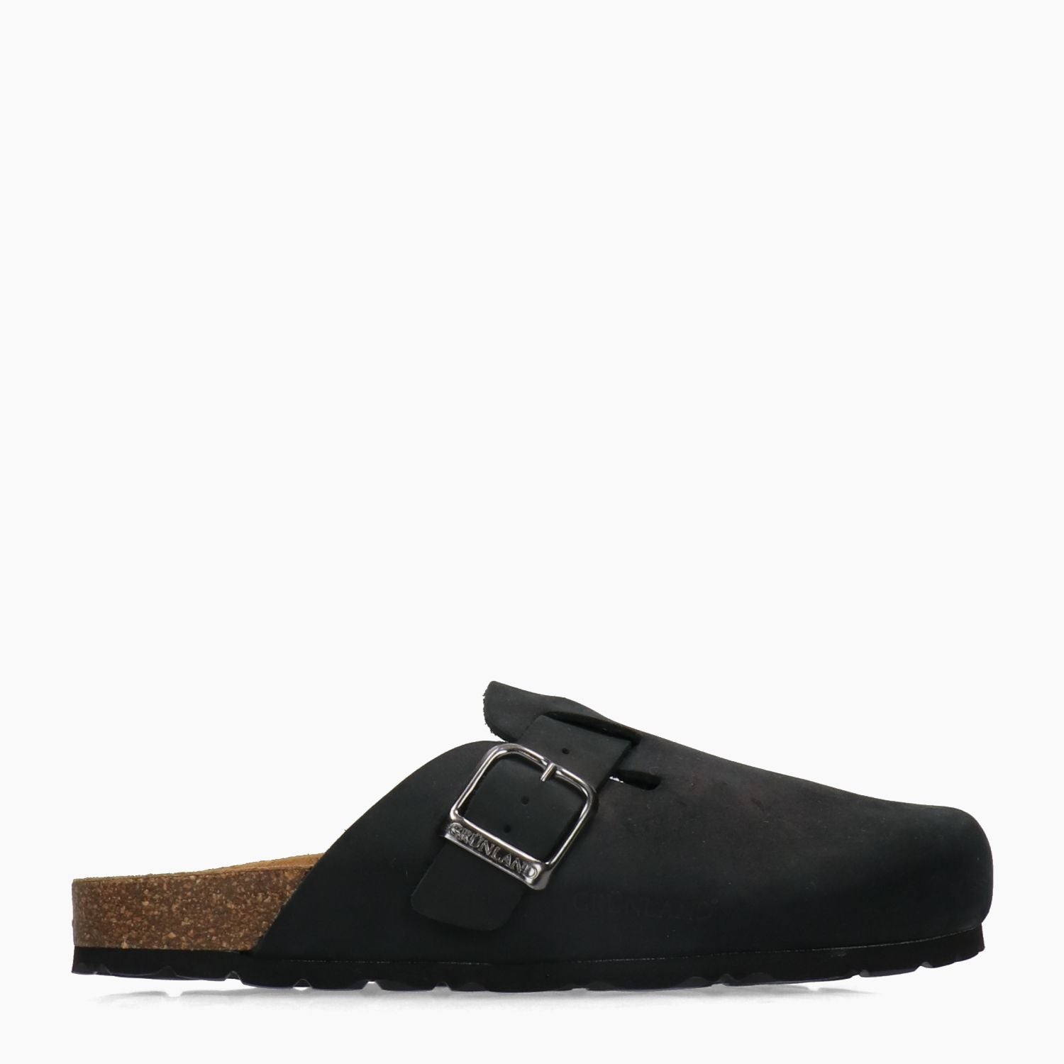 Sabot Grunland con tomaia in pelle in colore nero. Punta tonda. Fibbia con logo. Interno in pelle con sottopiede soft. Suola in gomma. Collezione Grunland donna.