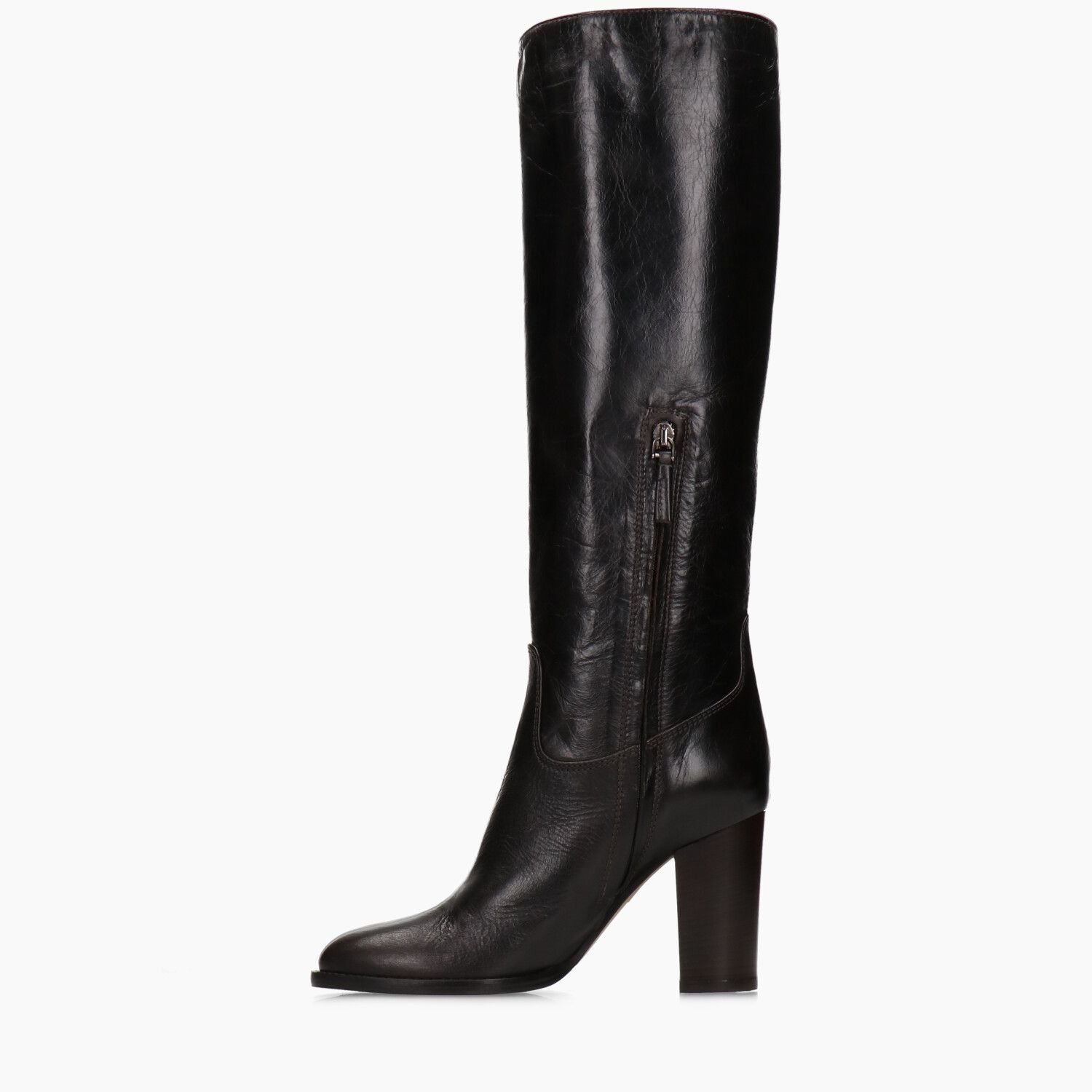 Stivali in pelle testa di moro con zip interna corta, fondo gomma.