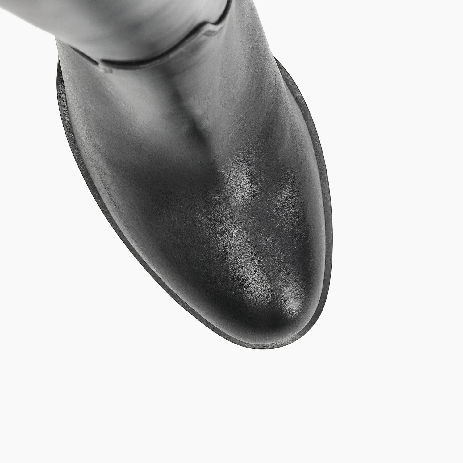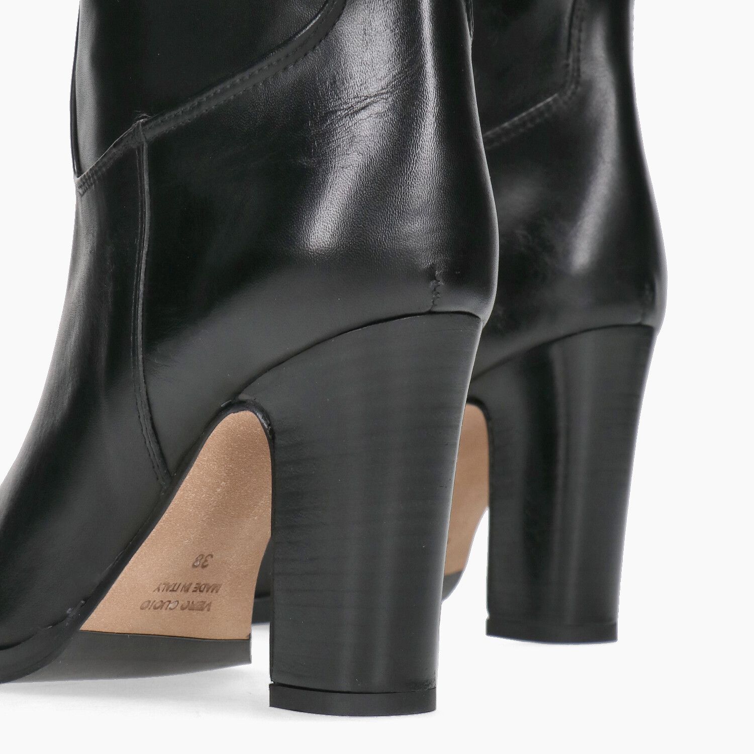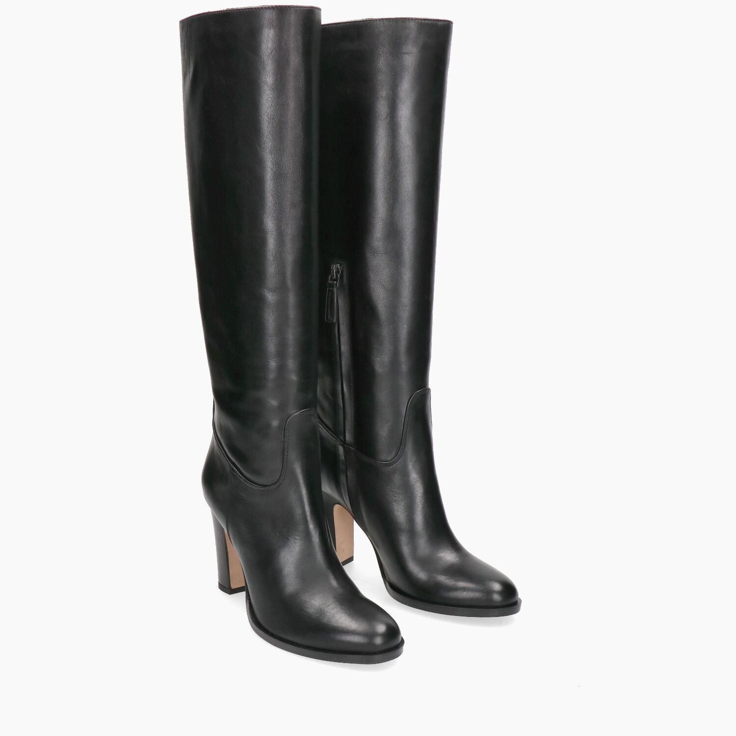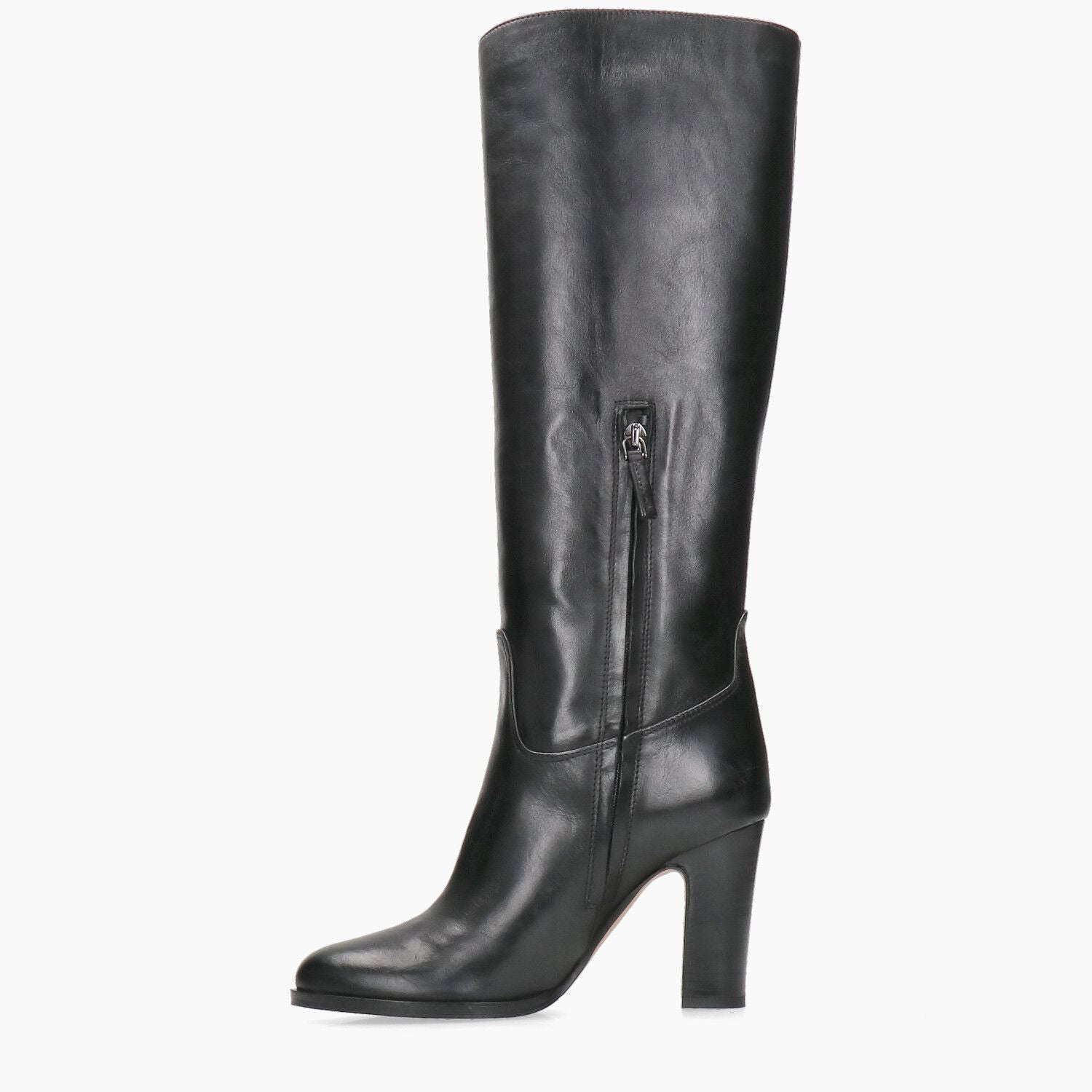 Stivali in pelle nero con zip interna corta, fondo gomma.