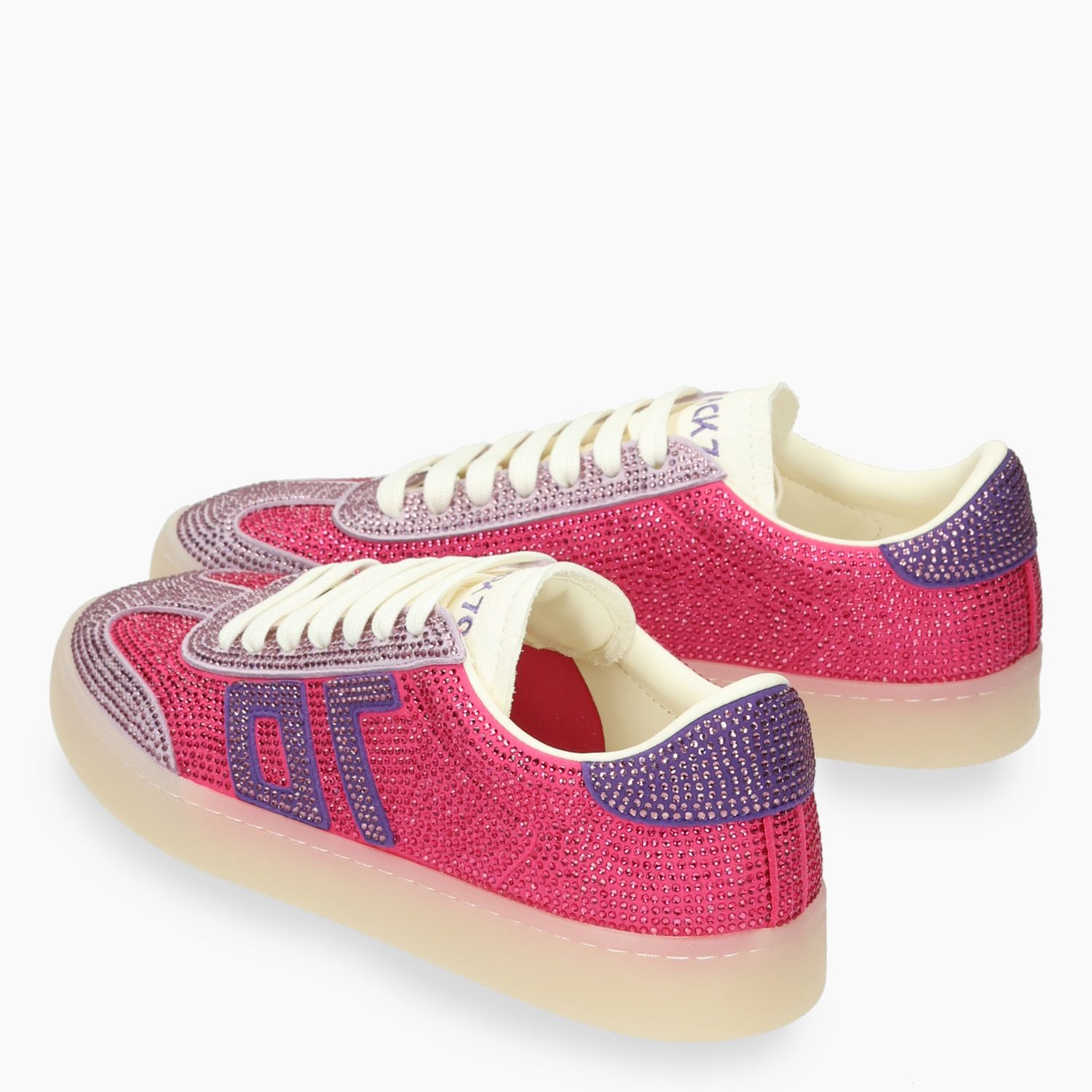 Snealkers full strass fuxia e rosa. Chiusura tramite lacci. Interno in tessuto con sottopiede estraibile. Suola in gomma color avorio. Collezione Back 70 donna primavera/estate.