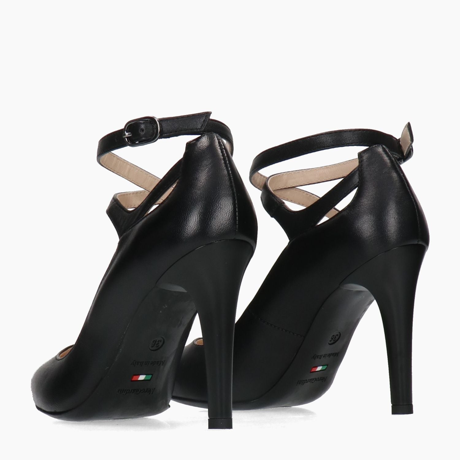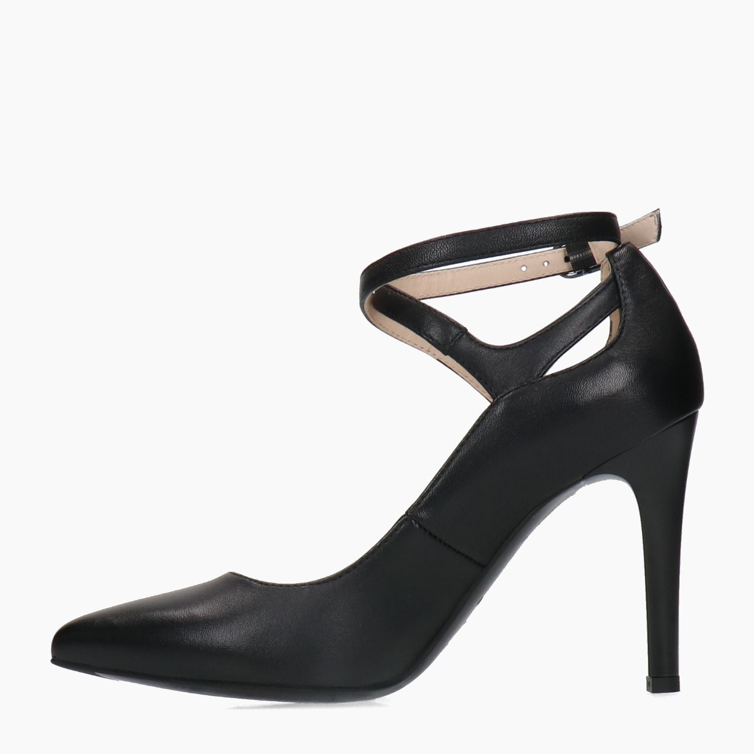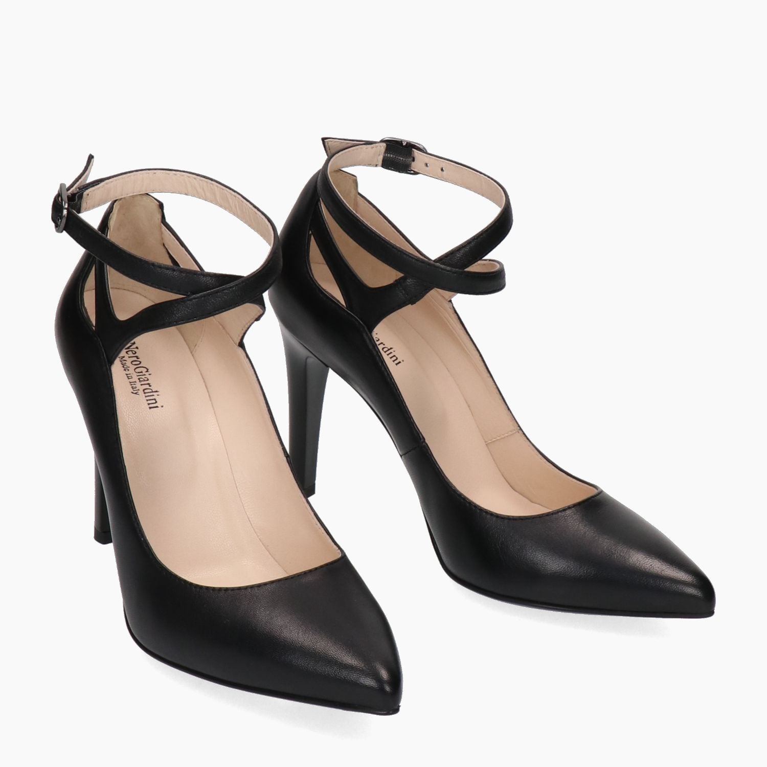 Decollete in pelle in colore nero concinturino alla caviglia. Punta stretta. Interno in pelle. Suola in gomma con tacco a stiletto di 9 cm. Collezione Nero Giardini donna Autunno/Inverno.