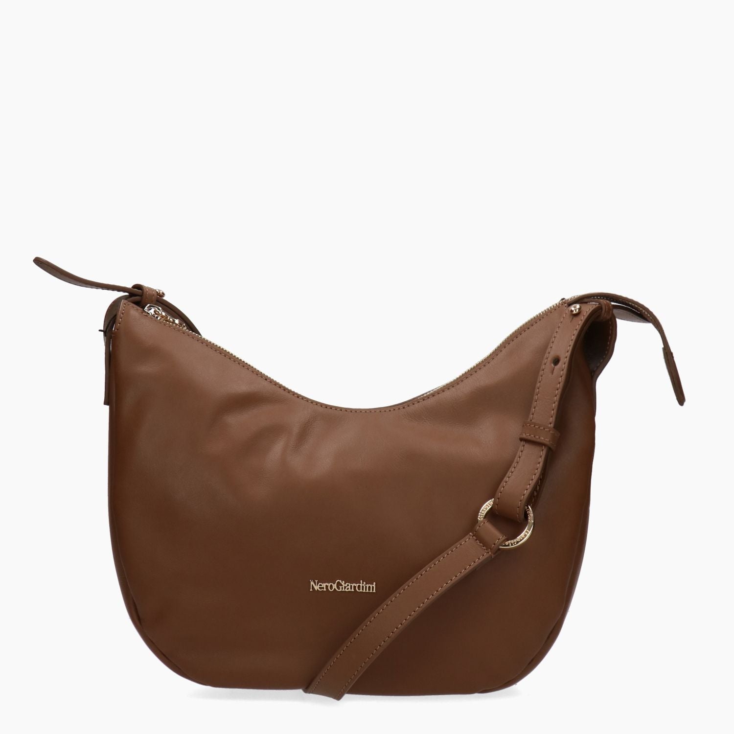 Borsa a spalla in pelle cuoio. Interno foderato in tessuto con doppia tasca di cui una con zip. Logo argentato a fianco. Chiusura zip dorata. Altezza 25 cm, Larghezza 30 cm, Spessore 10 cm. Collezione Nero Giardini donna.