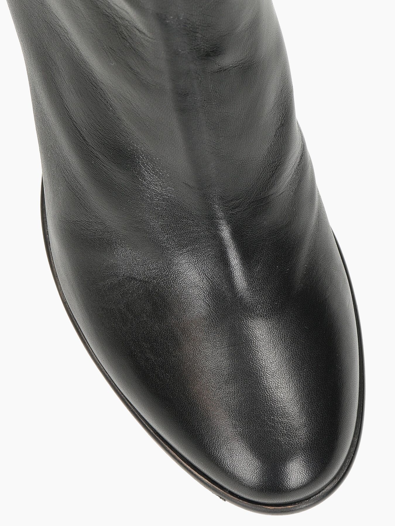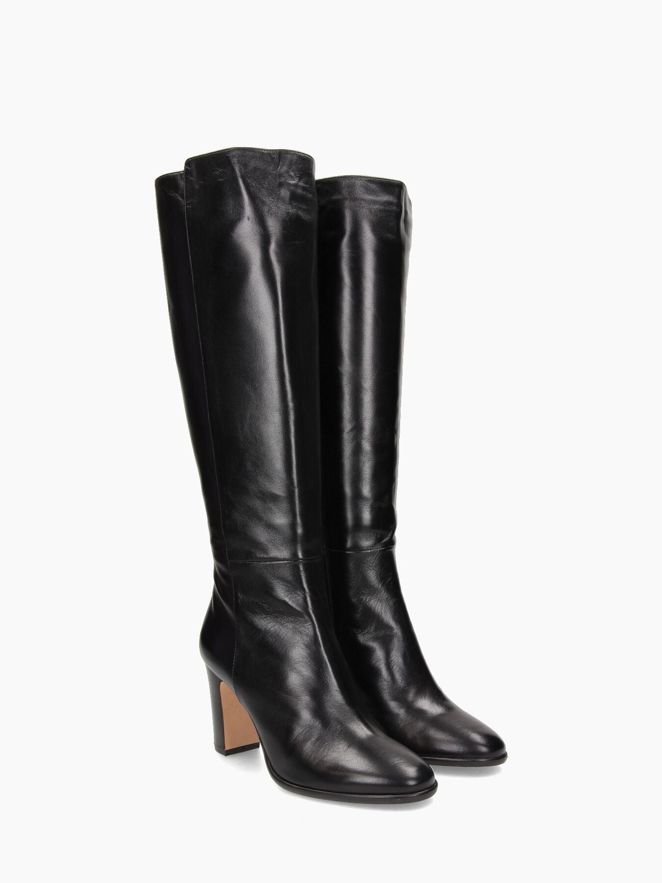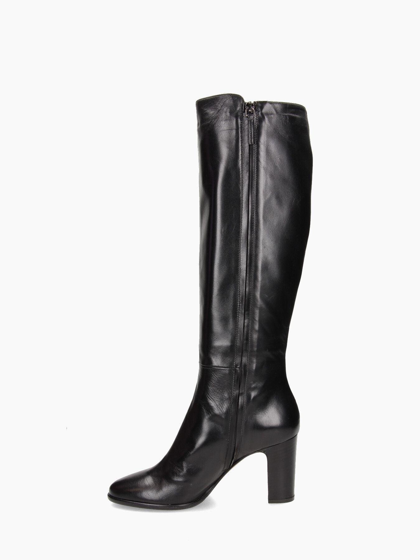 Stivali in pelle nera con zip interna, tacco 70 fondo gomma.