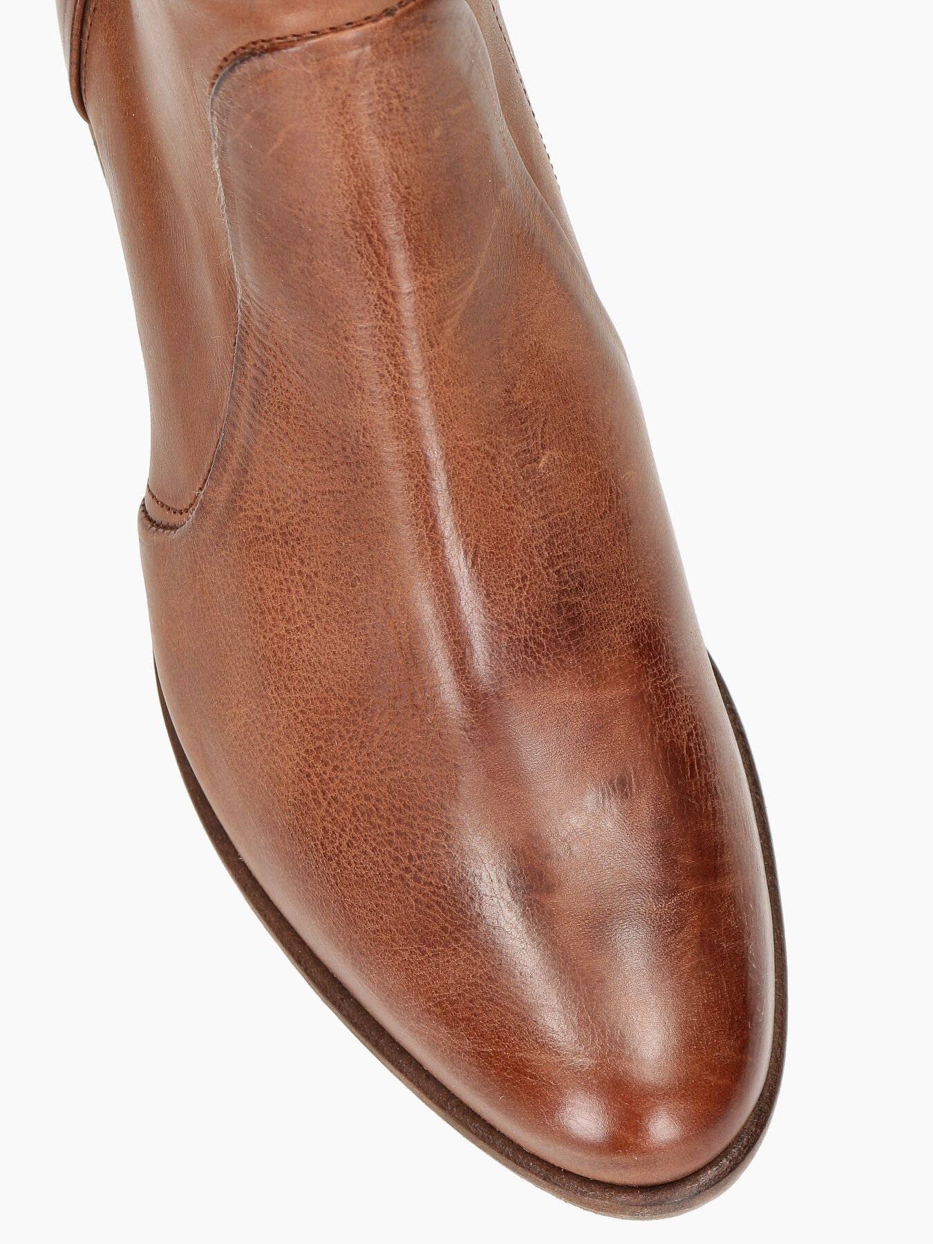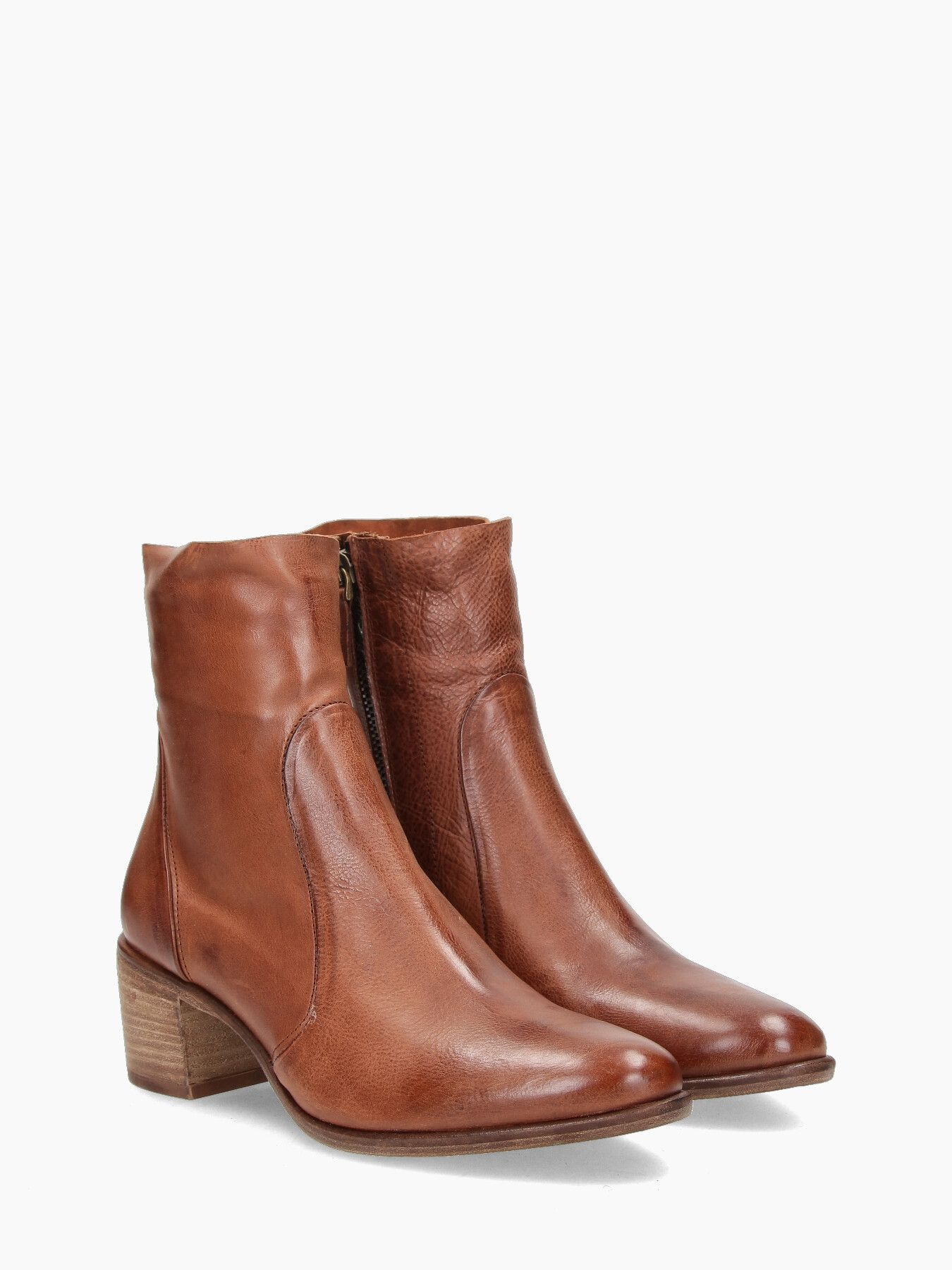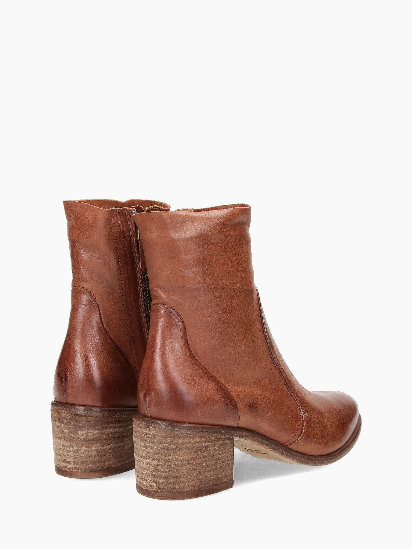 Stivaletti in pelle invecchiata cuoio, zip interna, tacco 50 fondo cuoio.