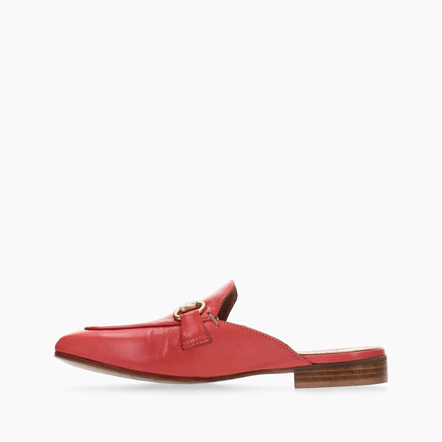 Sabot in pelle corallo con morsetto dorato, tacco 20 fondo gomma.