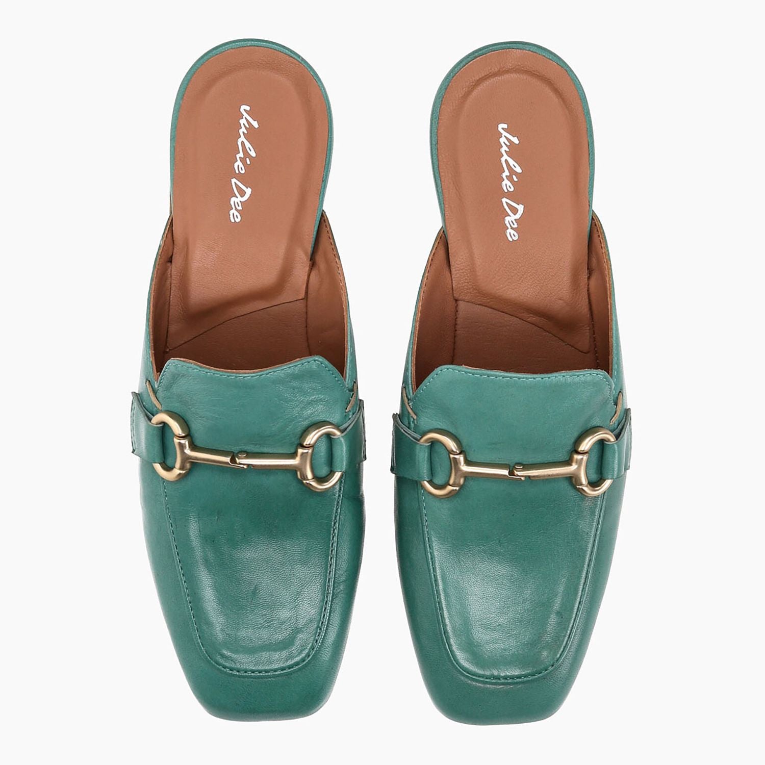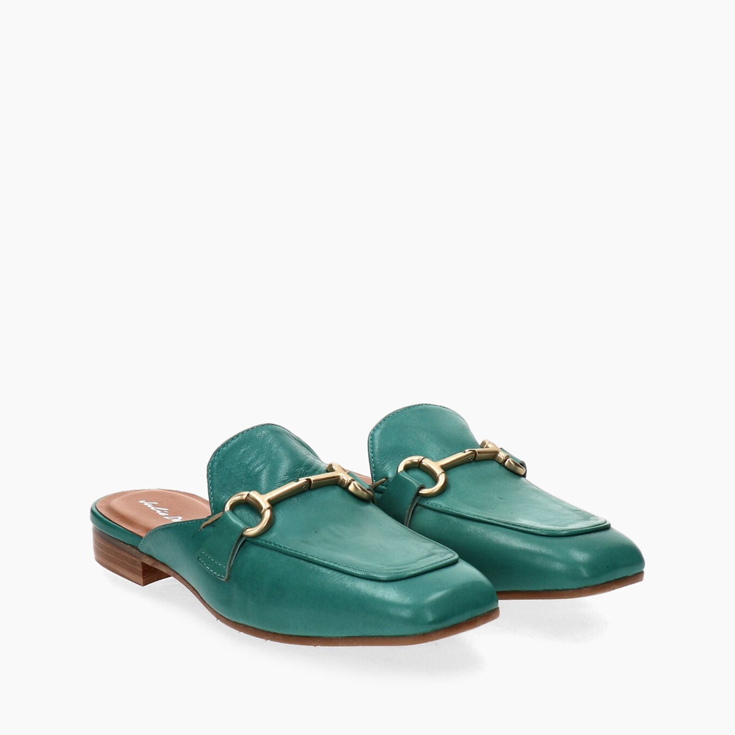 Sabot in pelle verde menta con morsetto dorato, tacco 20 fondo gomma.