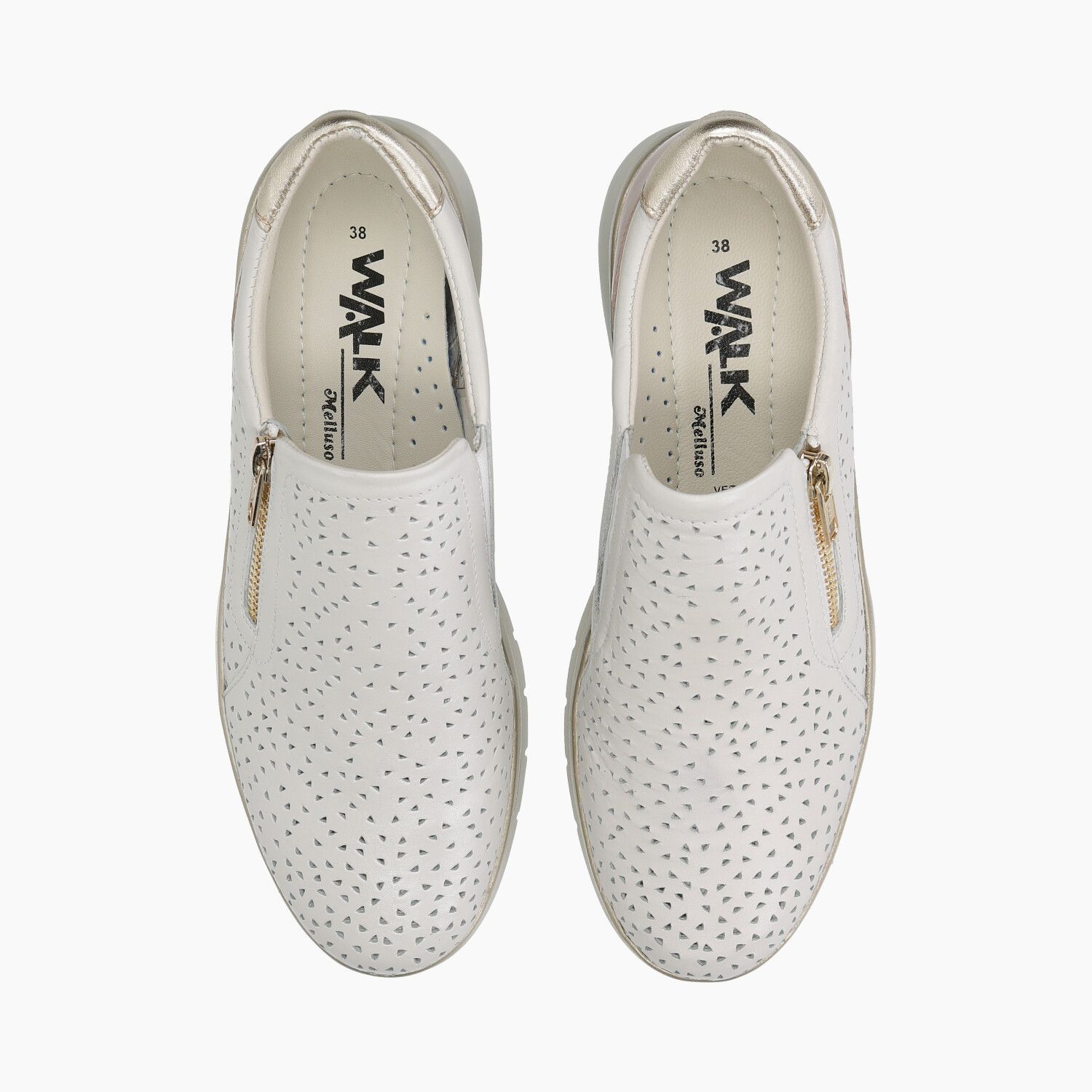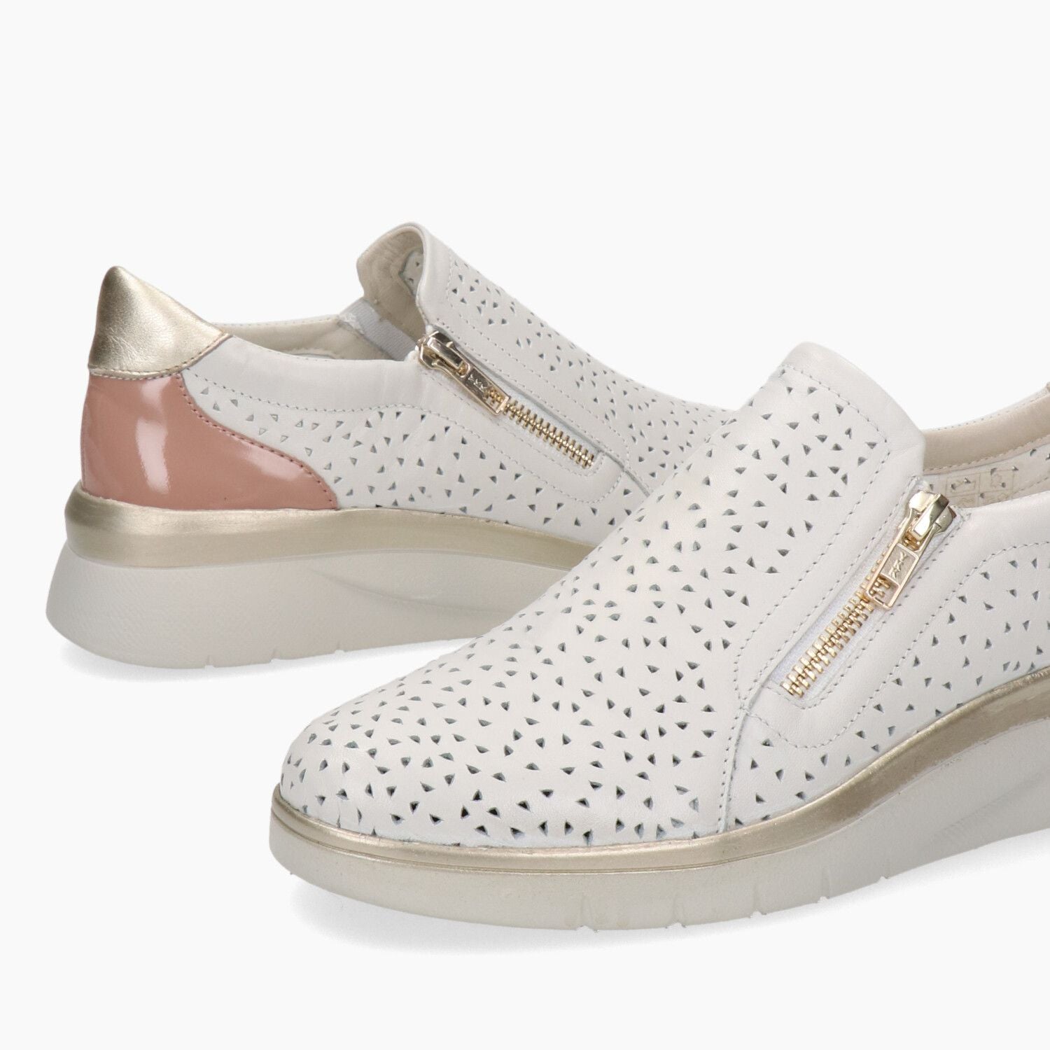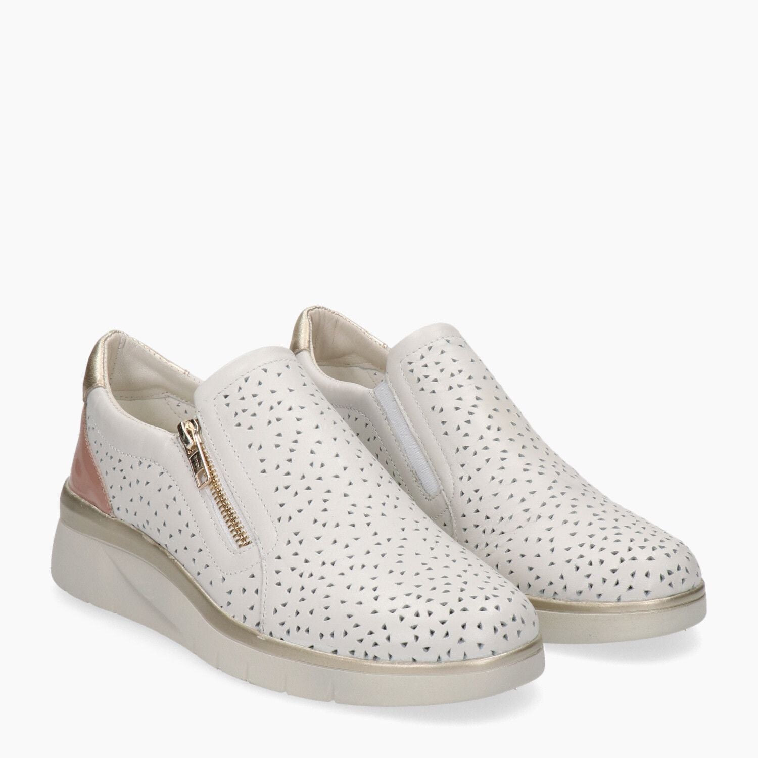 Sneakers slip on in pelle traforata bianca off white, fondo gomma.