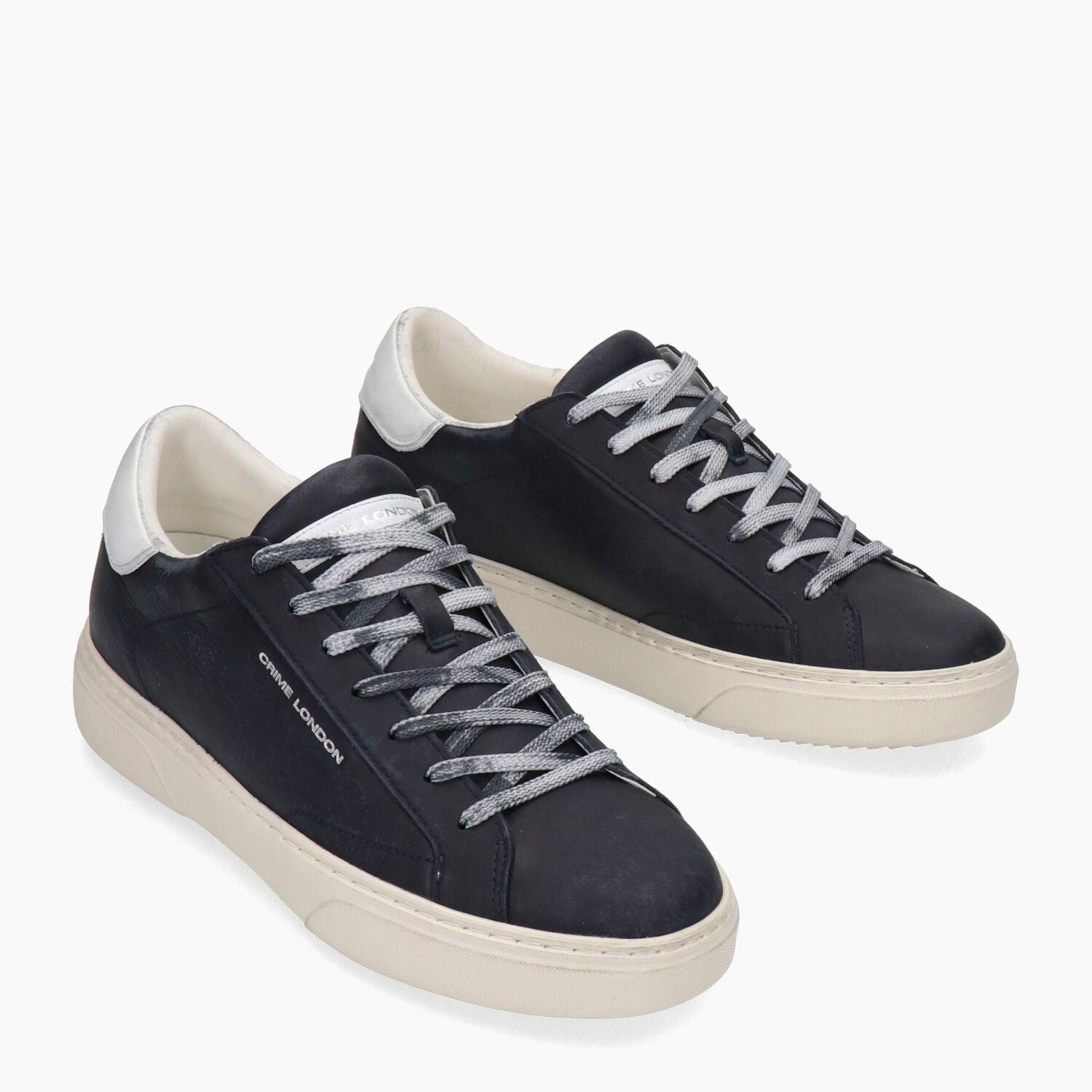 Sneakers Crime London con tomaia in pelle in colore blu navy effetto vintage. Punta tonda. Chiusura con lacci sporcati. Linguetta con logo. Talloncino in pelle in colore bianco con logo. Interno in tessuto e pelle. Suola in gomma. Collezione Crime London uomo.