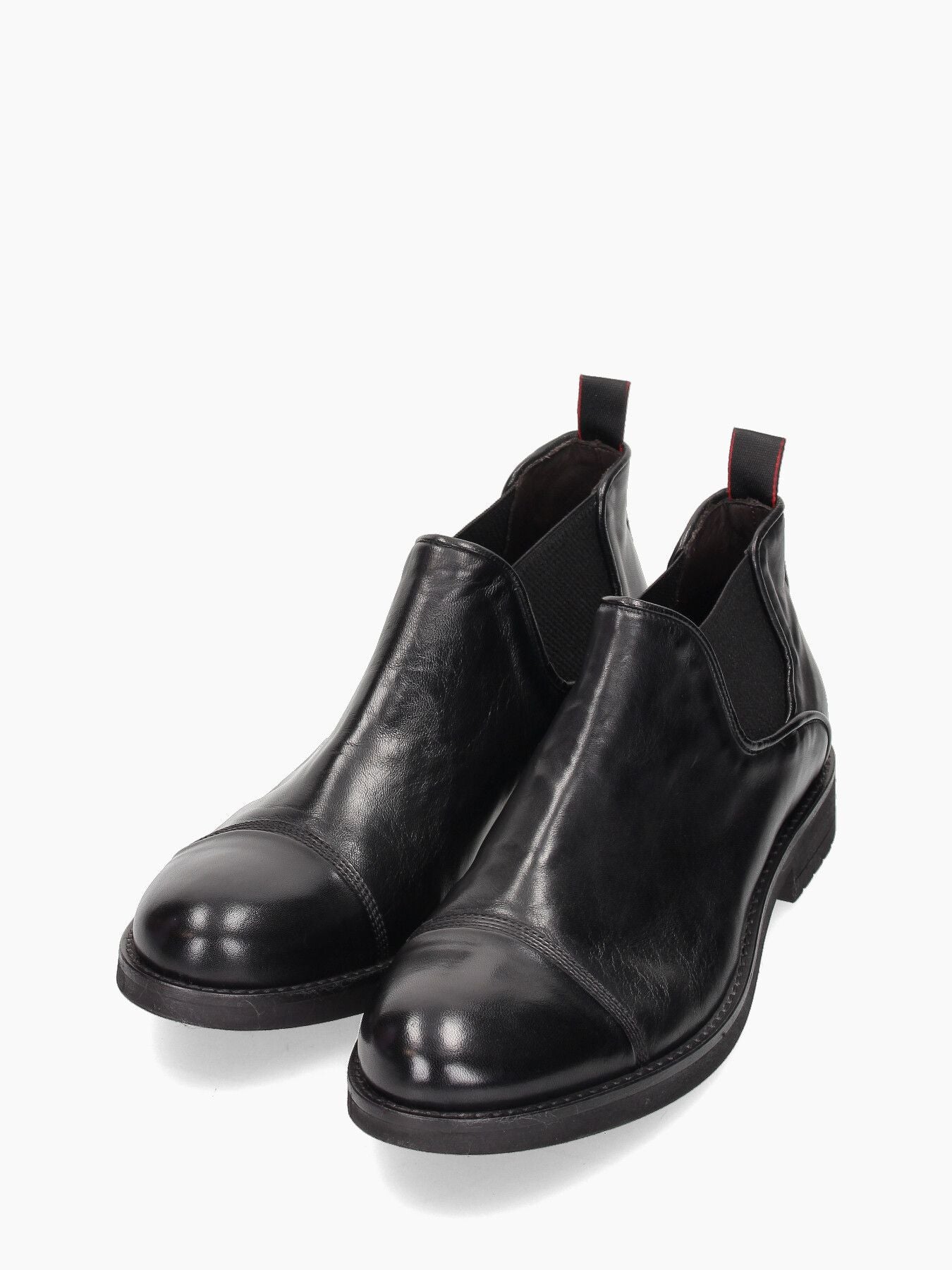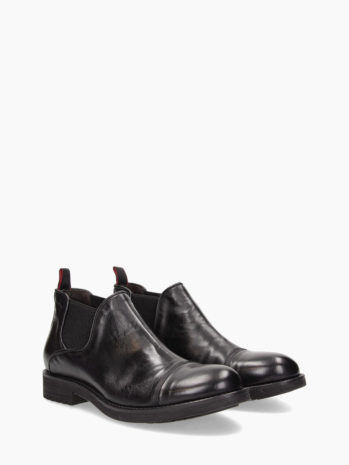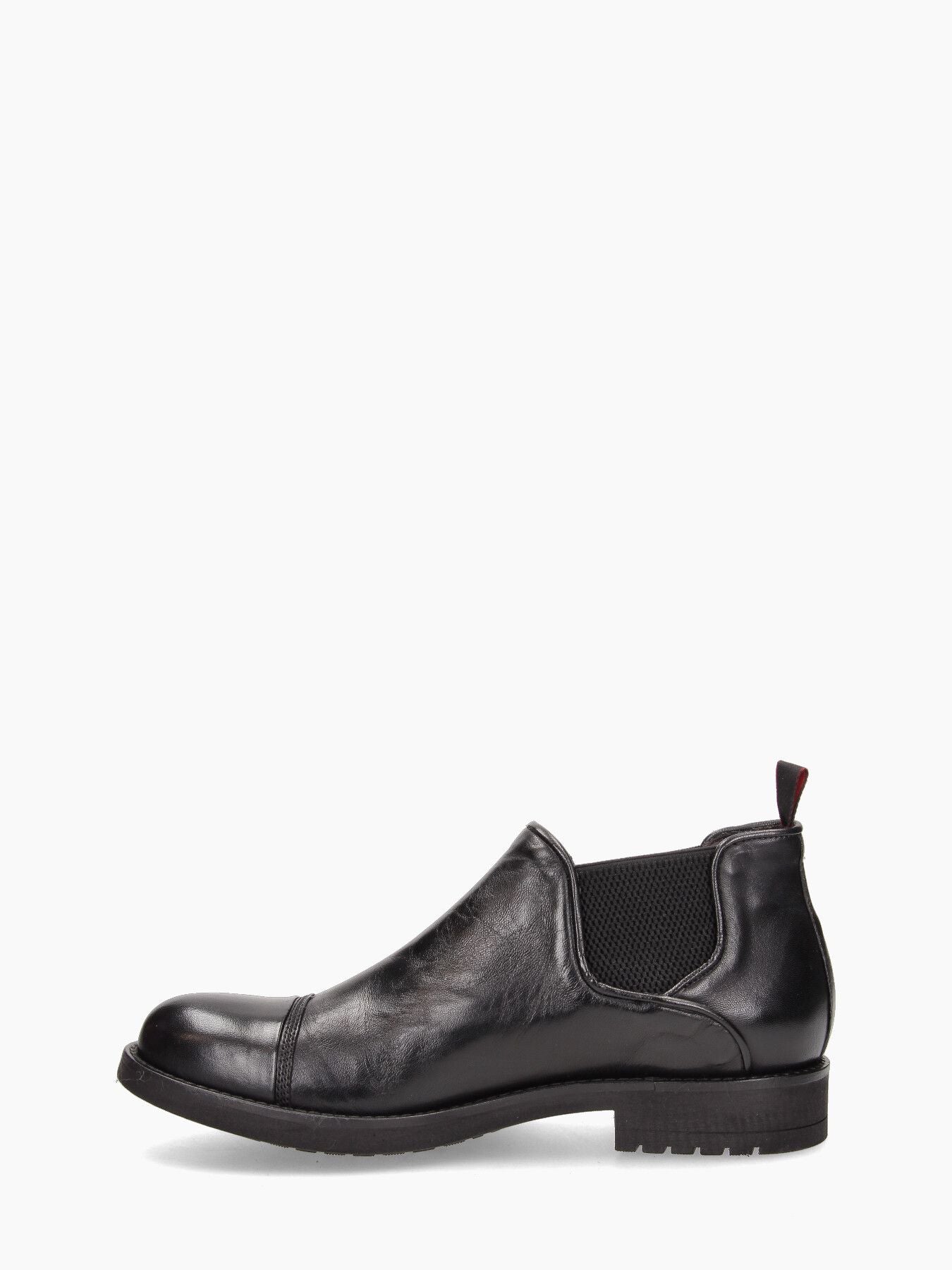 Stivaletto Chelsea basso in pelle. Tomaia in pelle in colore nero. Punta tonda. Chiusura con banda laterale stretch tono su tono. Talloncino in pelle tono su tono. Interno in pelle. Soletta interna non rimovibile. Suola esterna in gomma in colore nero. Tacco basso di 3 cm. Collezione JP David uomo Autunno/Inverno.