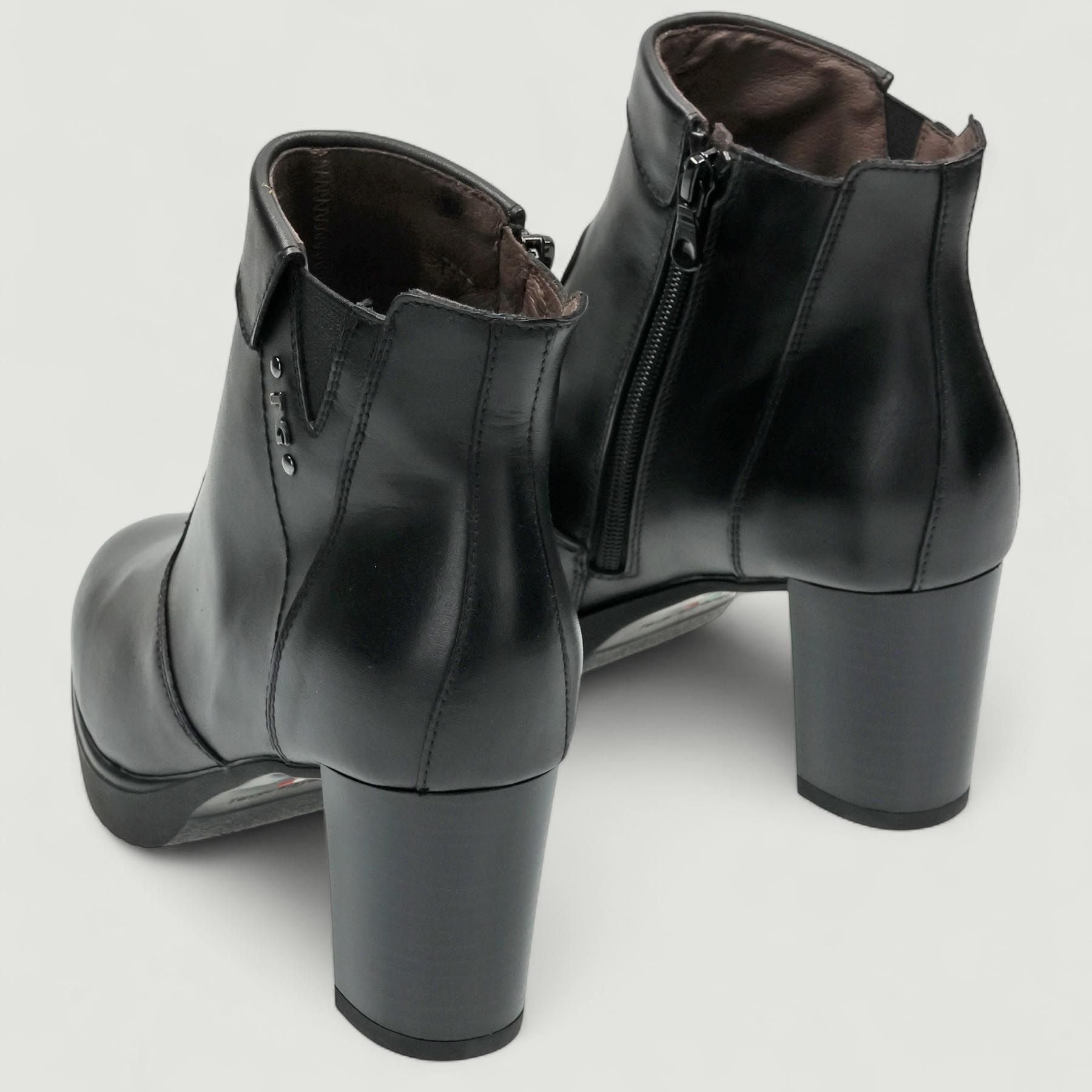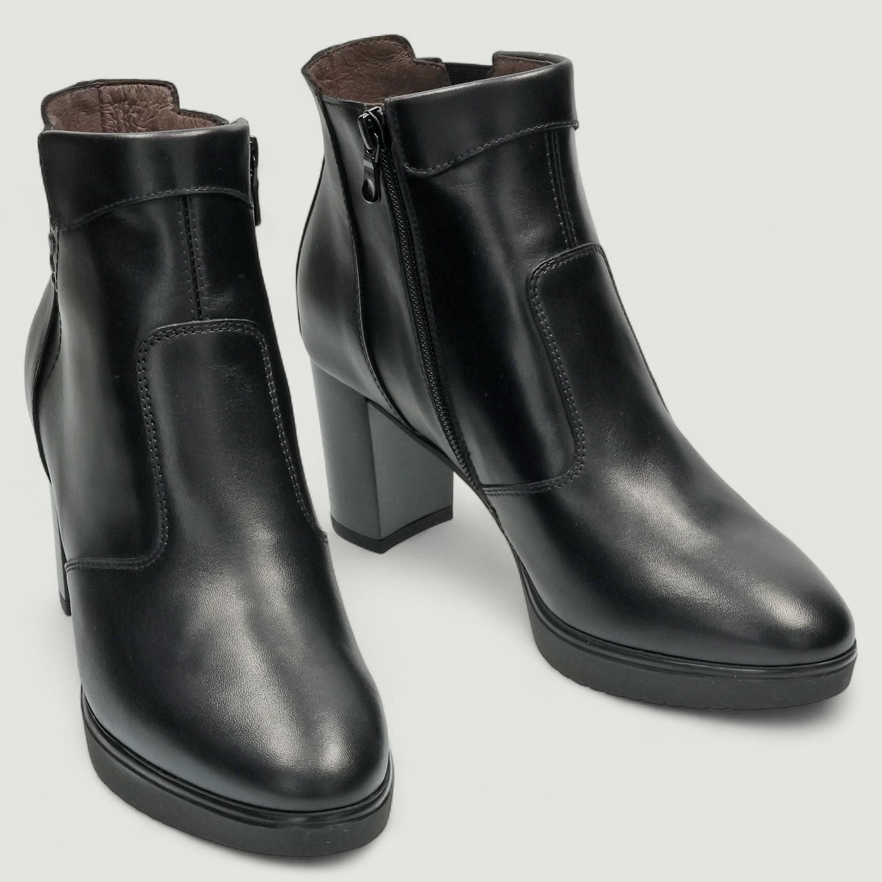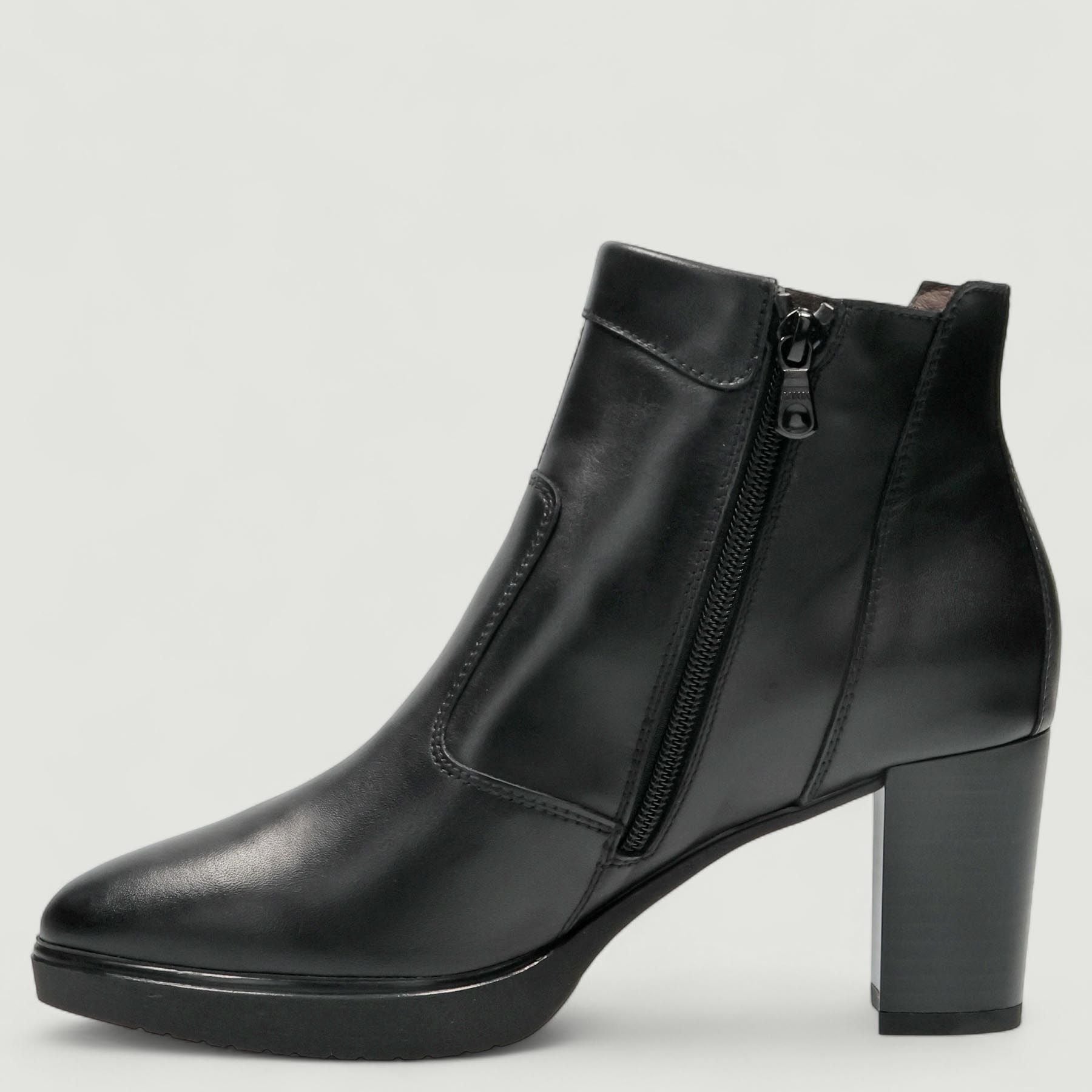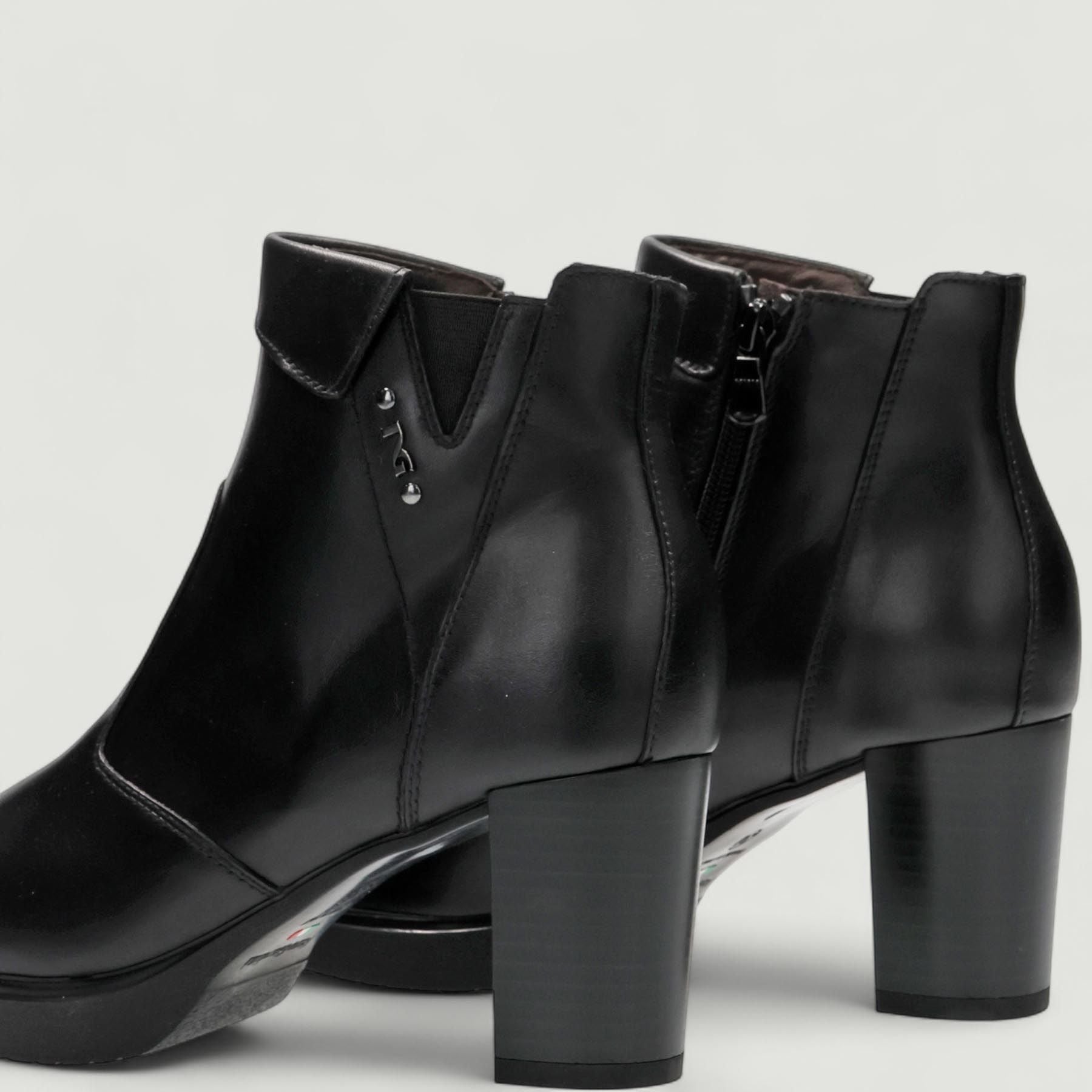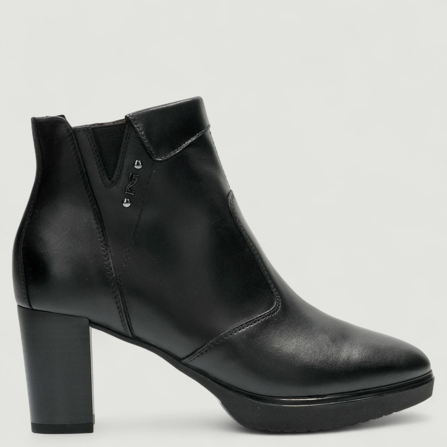 Stivaletti con tomaia in pelle in colore nero. Chiusura con zip interna. Logo laterale. Interno in pelle. Suola in gomma con tacco di 6 cm e plateau di 1,5 cm. Collezione Nero Giardini donna Autunno/Inverno.