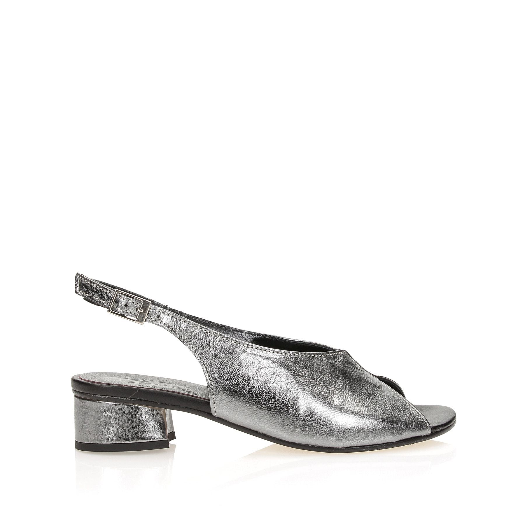 Sandali in pelle laminata canna fucile, tacco 30 fondo gomma.