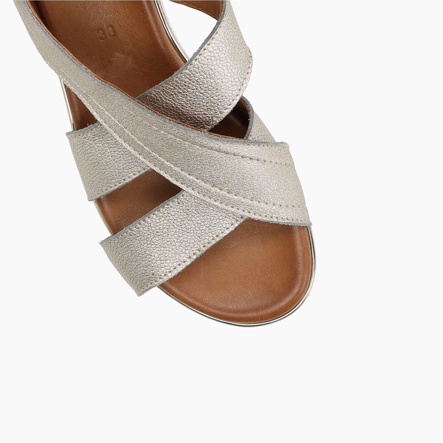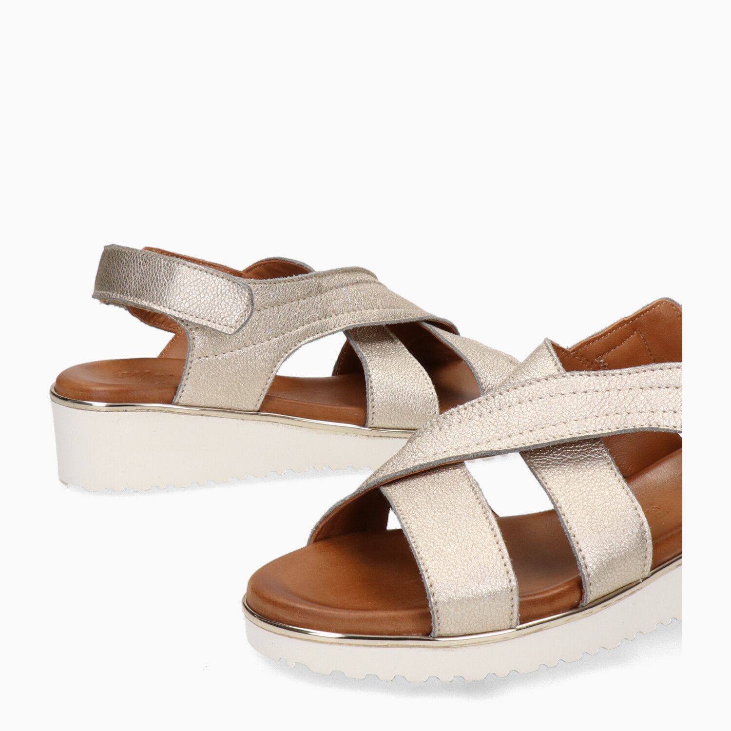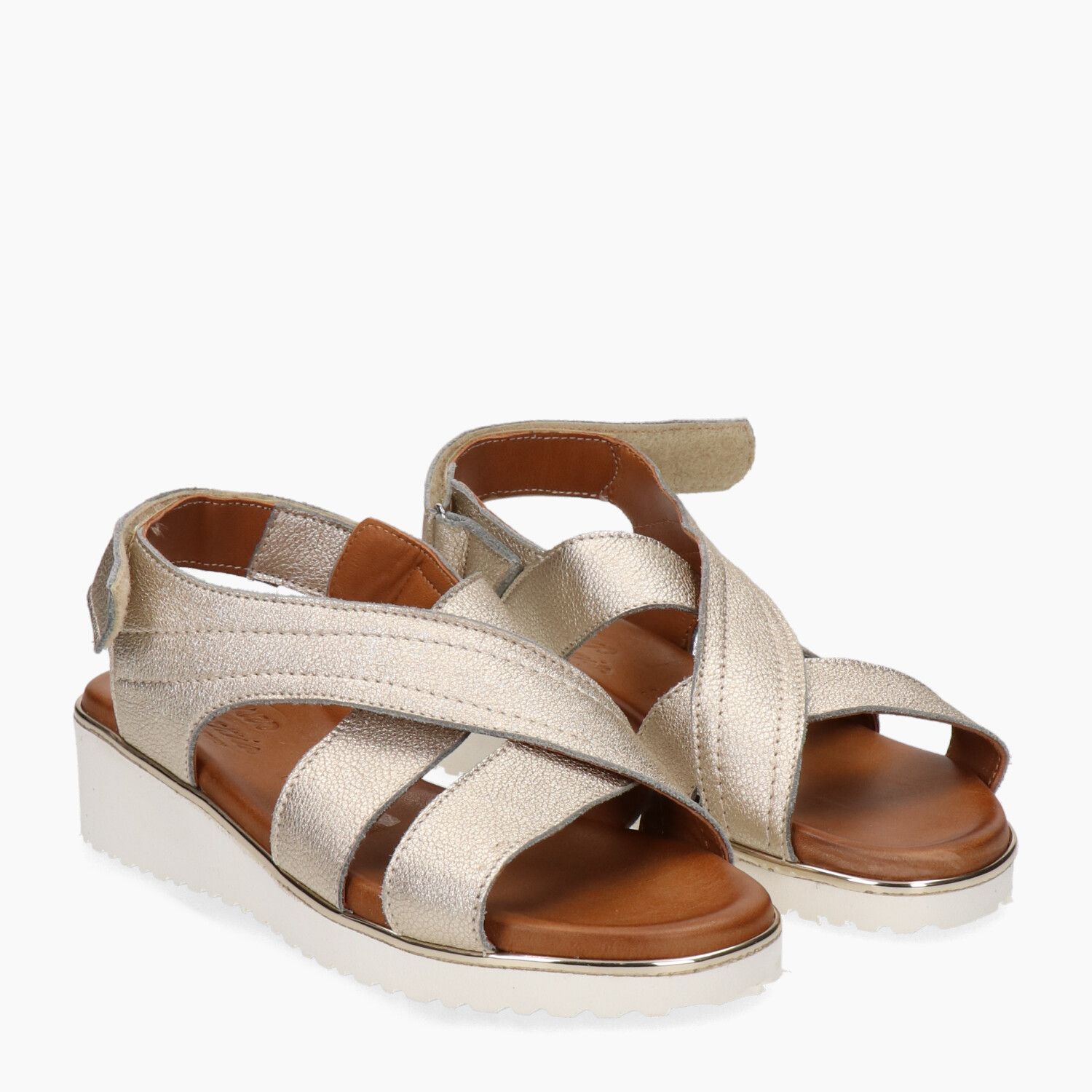 Sandali in pelle laminata oro, fondo gomma.