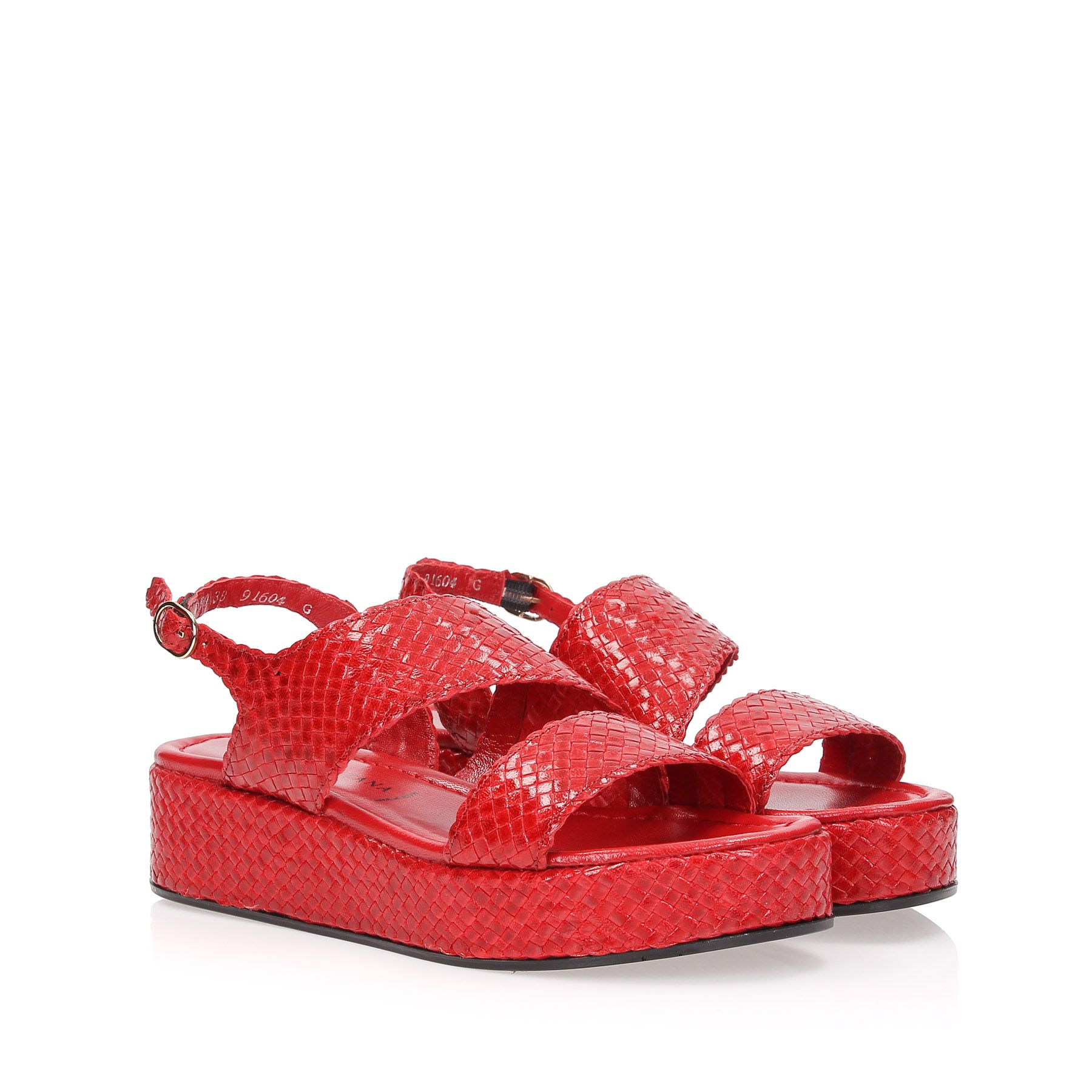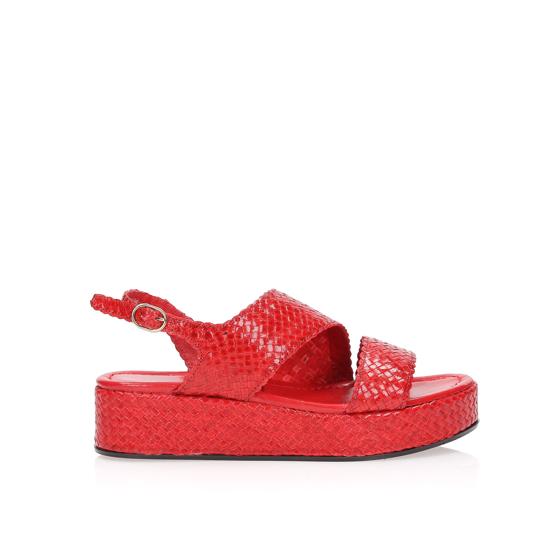 Sandali in pelle intreccata rossa, zeppa 30 ricoperta fondo gomma.