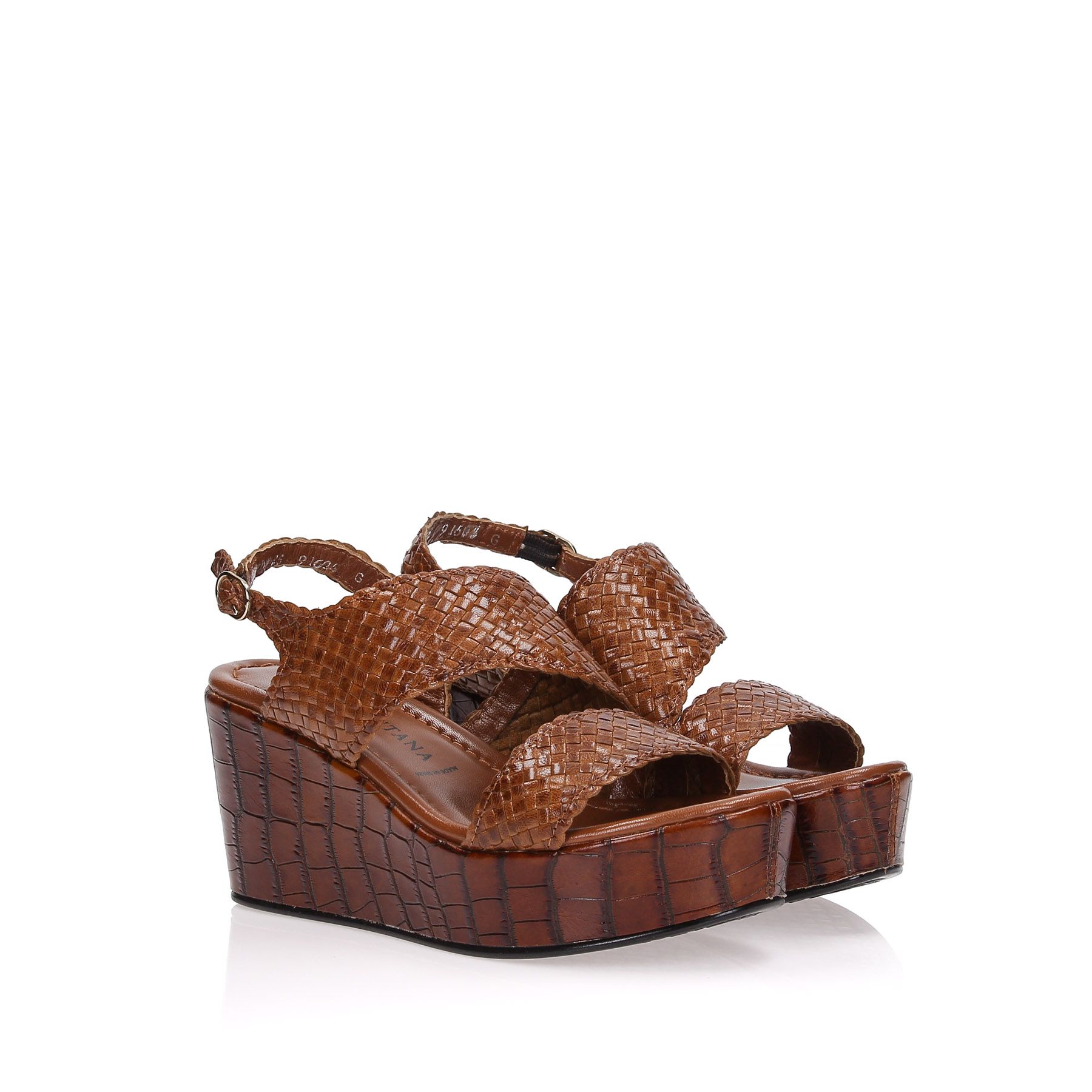 Sandali in pelle intreccata testa di moro, zeppa 60 ricoperta fondo gomma.