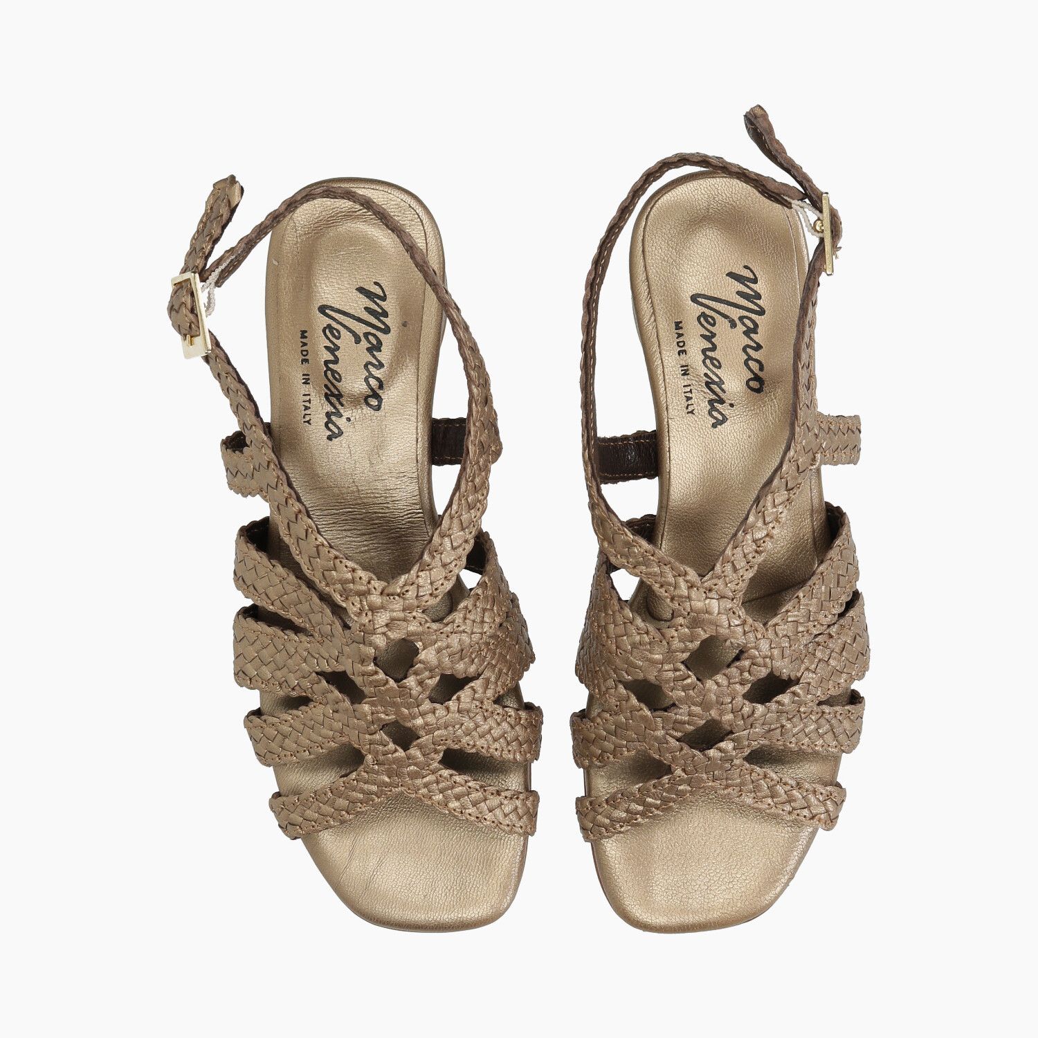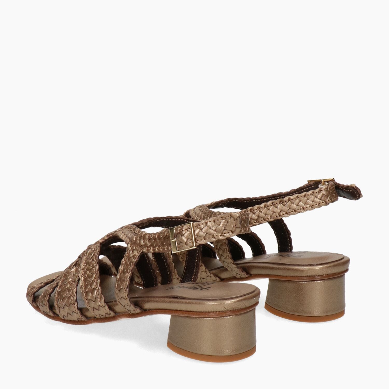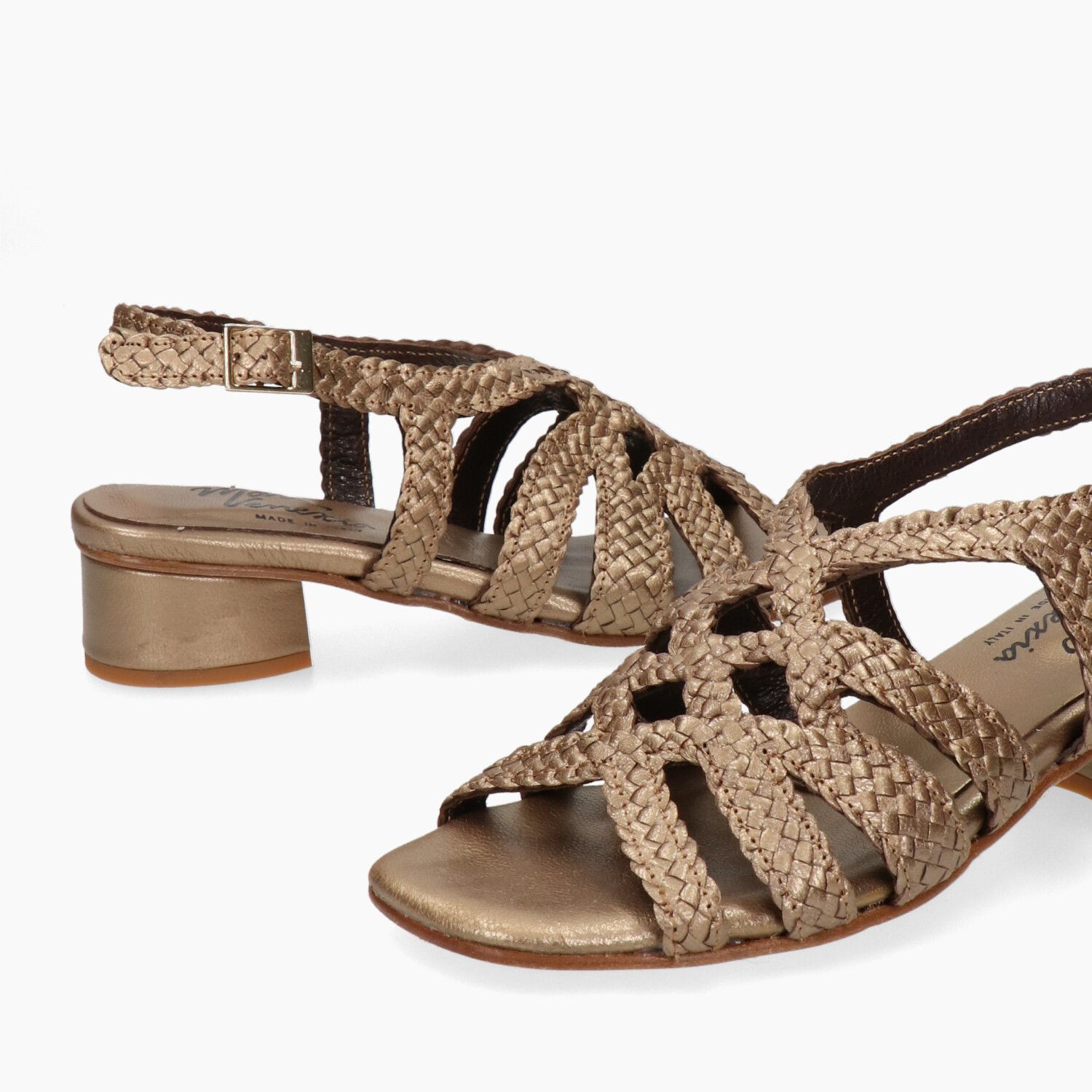 Sandali in pelle intrecciata bronzo, fondo gomma.