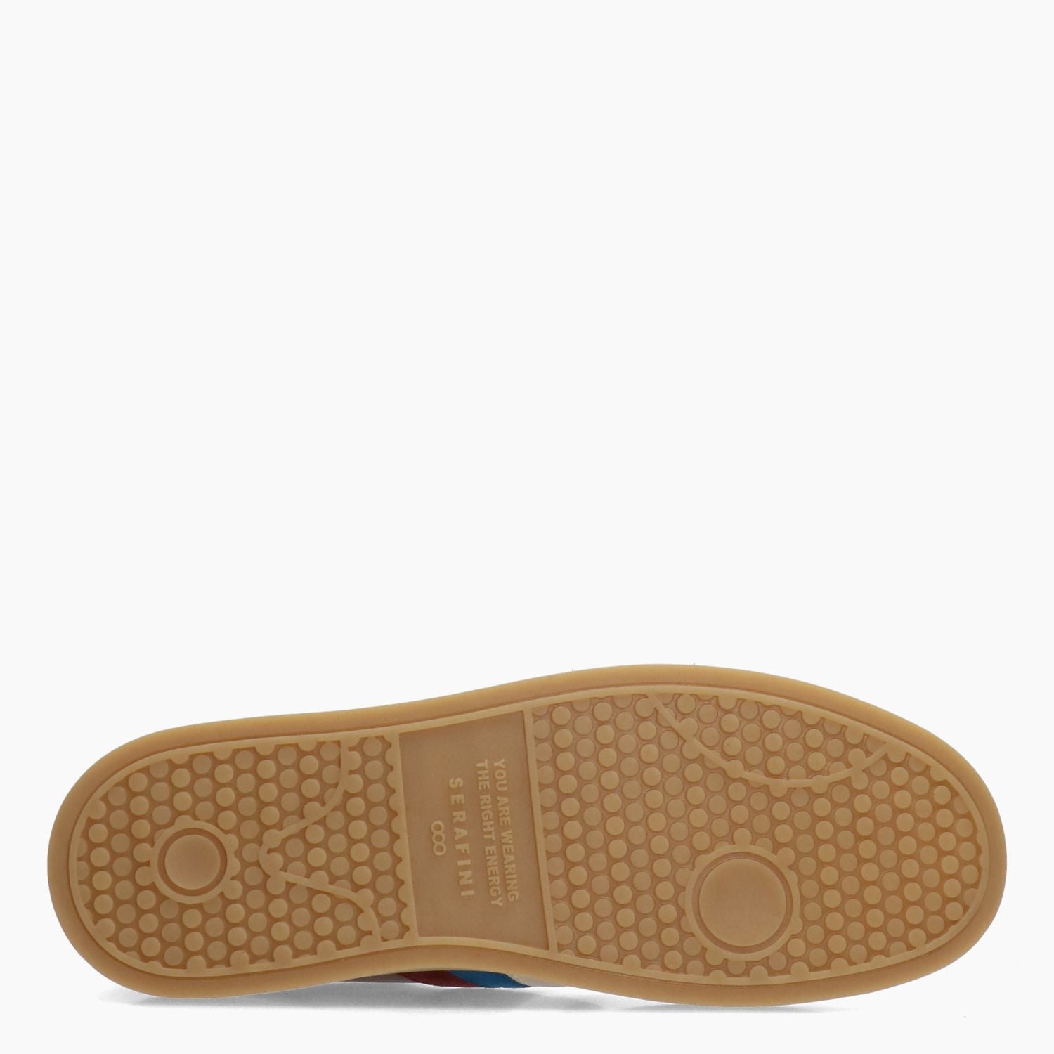 Sneakers in pelle laminata bronzo scuro e riporti in camoscio in bordeaux. Lacci in cotone bordeaux di ricambio. Soletta interna rimovibile. Interni in tessuto e pelle. Suola in gomma in colore mastice di cm 3. Collezione Serafini donna.