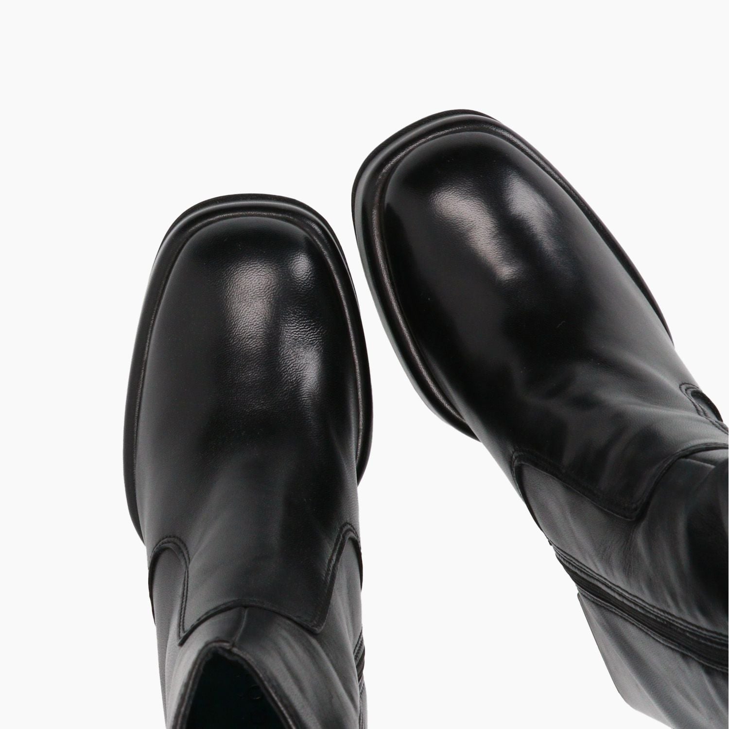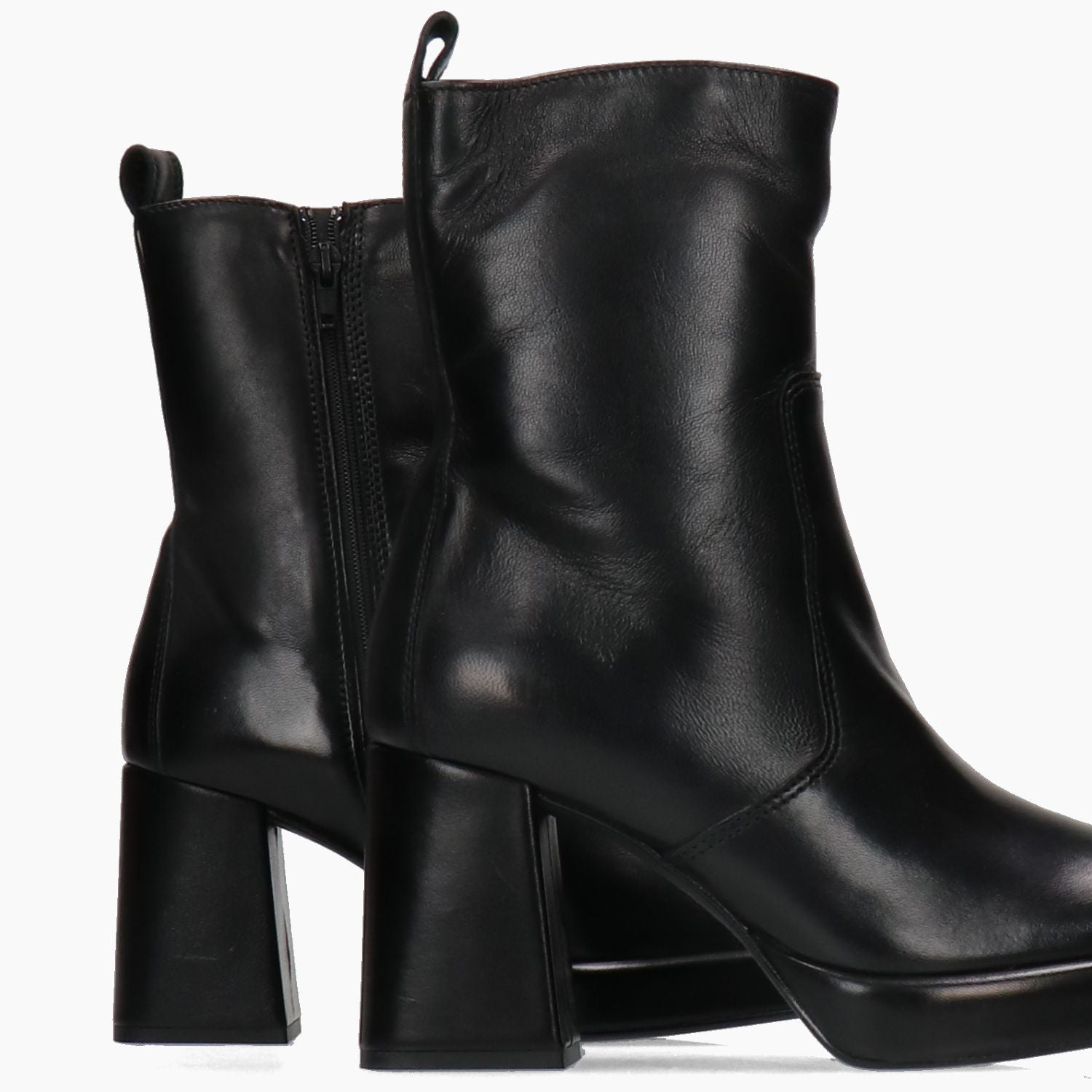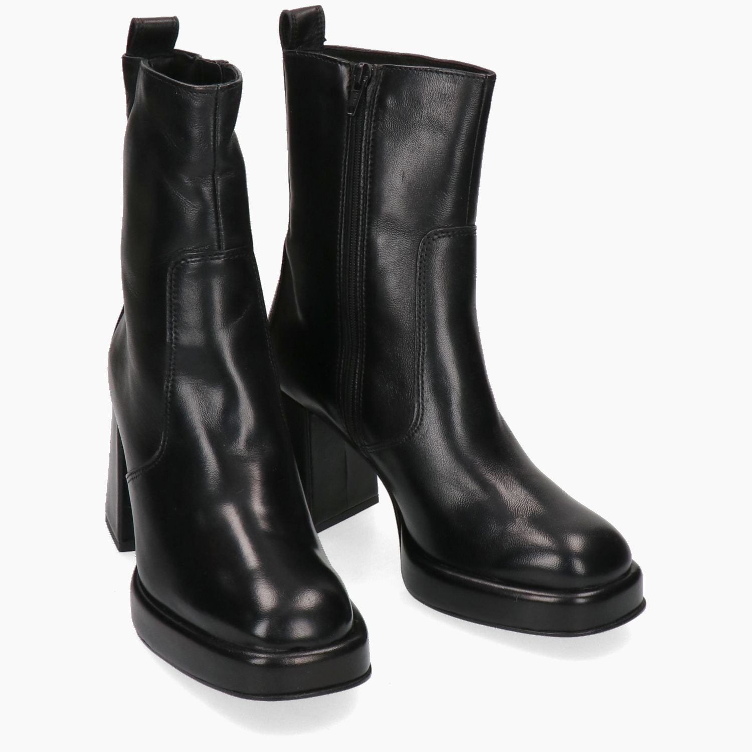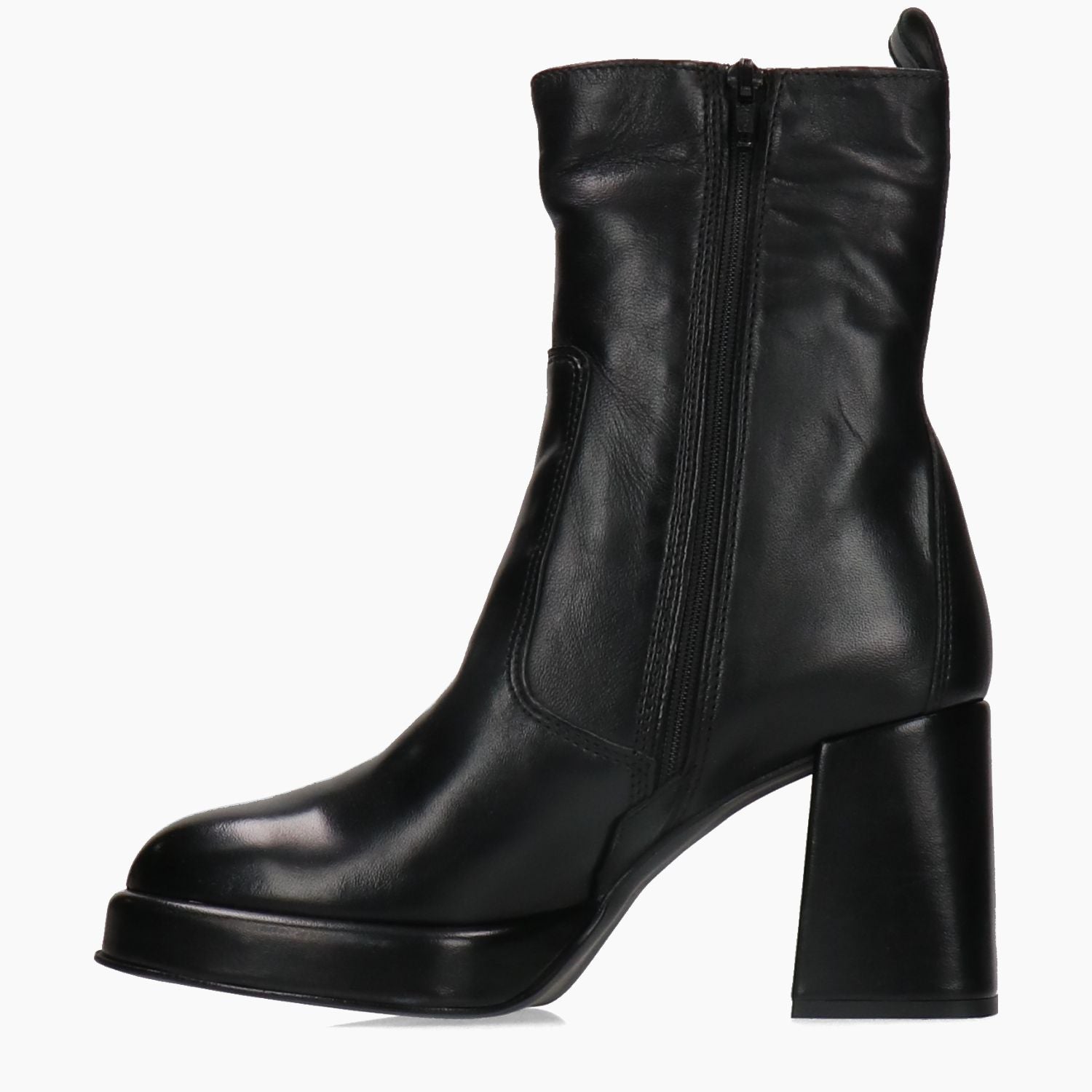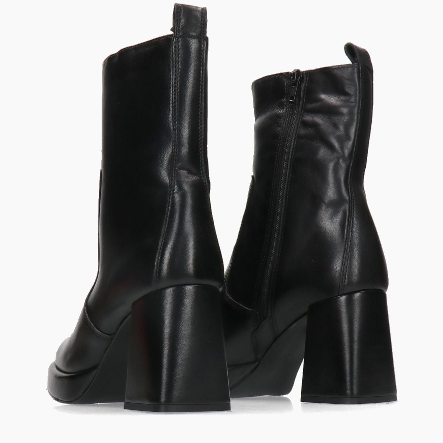 Stivaletti con tomaia in pelle in colore nero. Punta quadrata. Chiusura con zip interna. Interno in pelle e tessuto. Suola in gomma. Tacco di 7 cm con plateau di 2 cm. Collezione Fabbrica Dei Colli donna Autunno/Inverno.