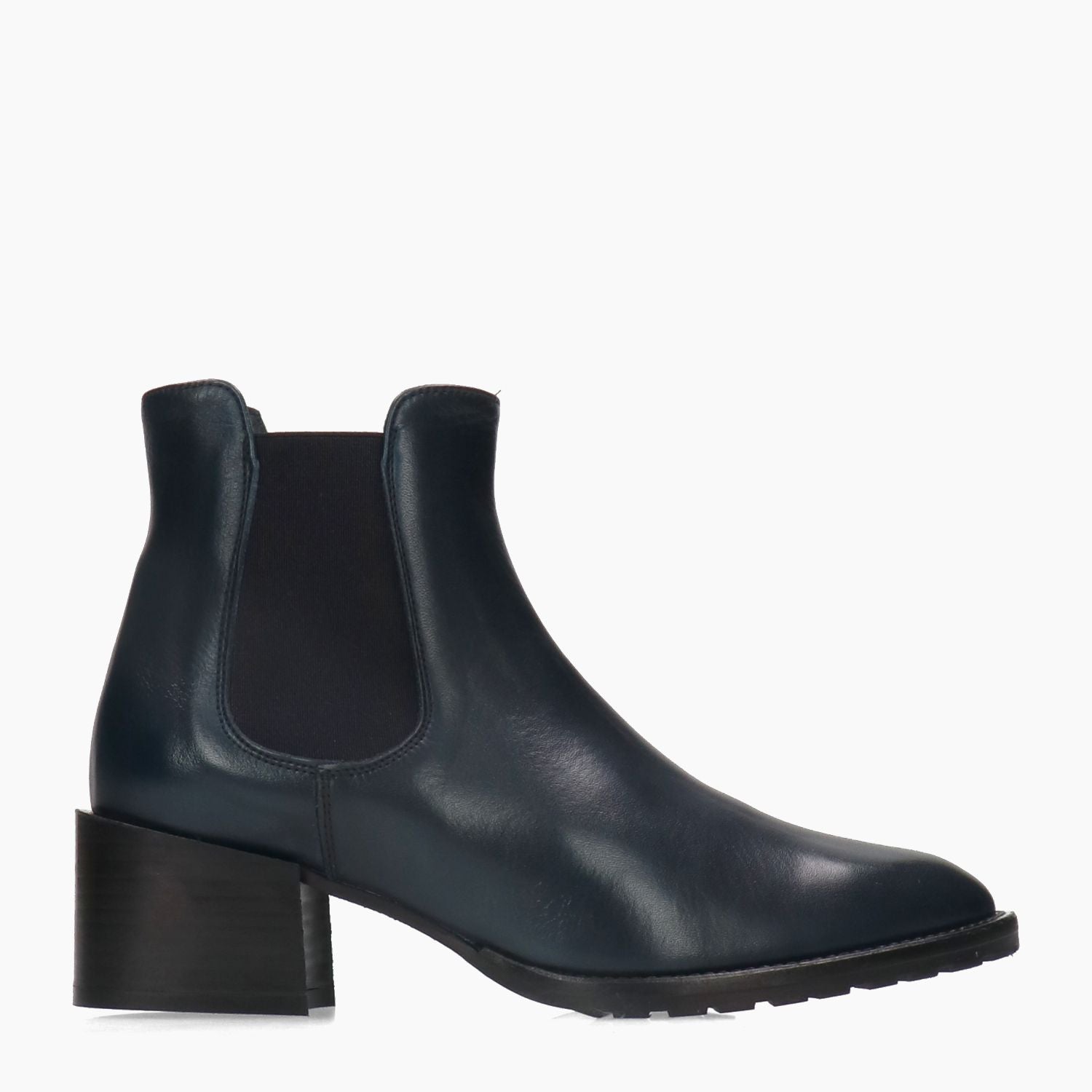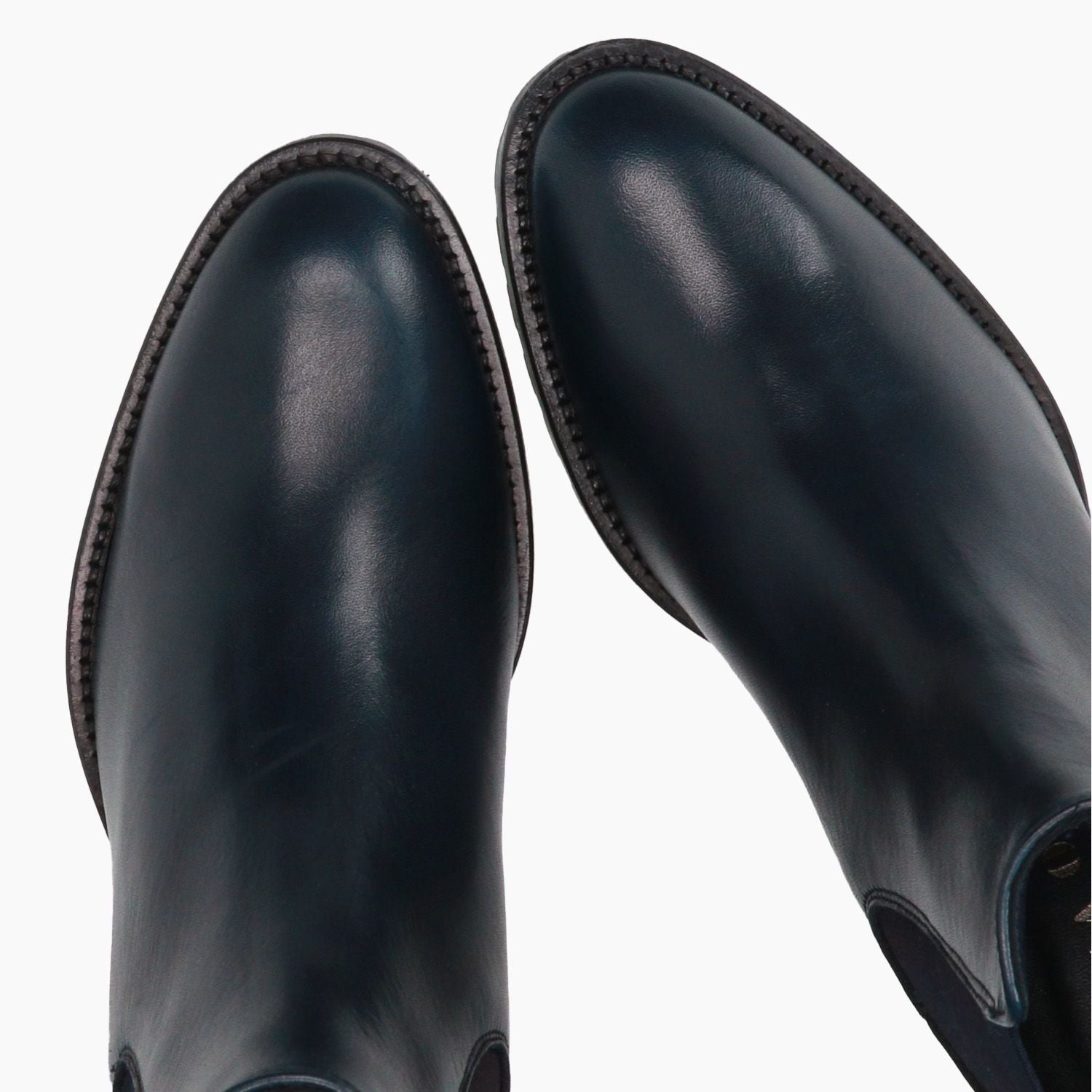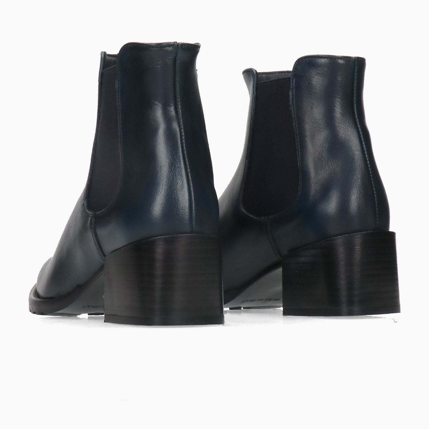 Beatles in pelle di colore blu navy. Elastici laterali neri. Interno in pelle. Suola in gomma con tacco 5 cm. Collezione Carla Orti donna Autunno/Inverno.