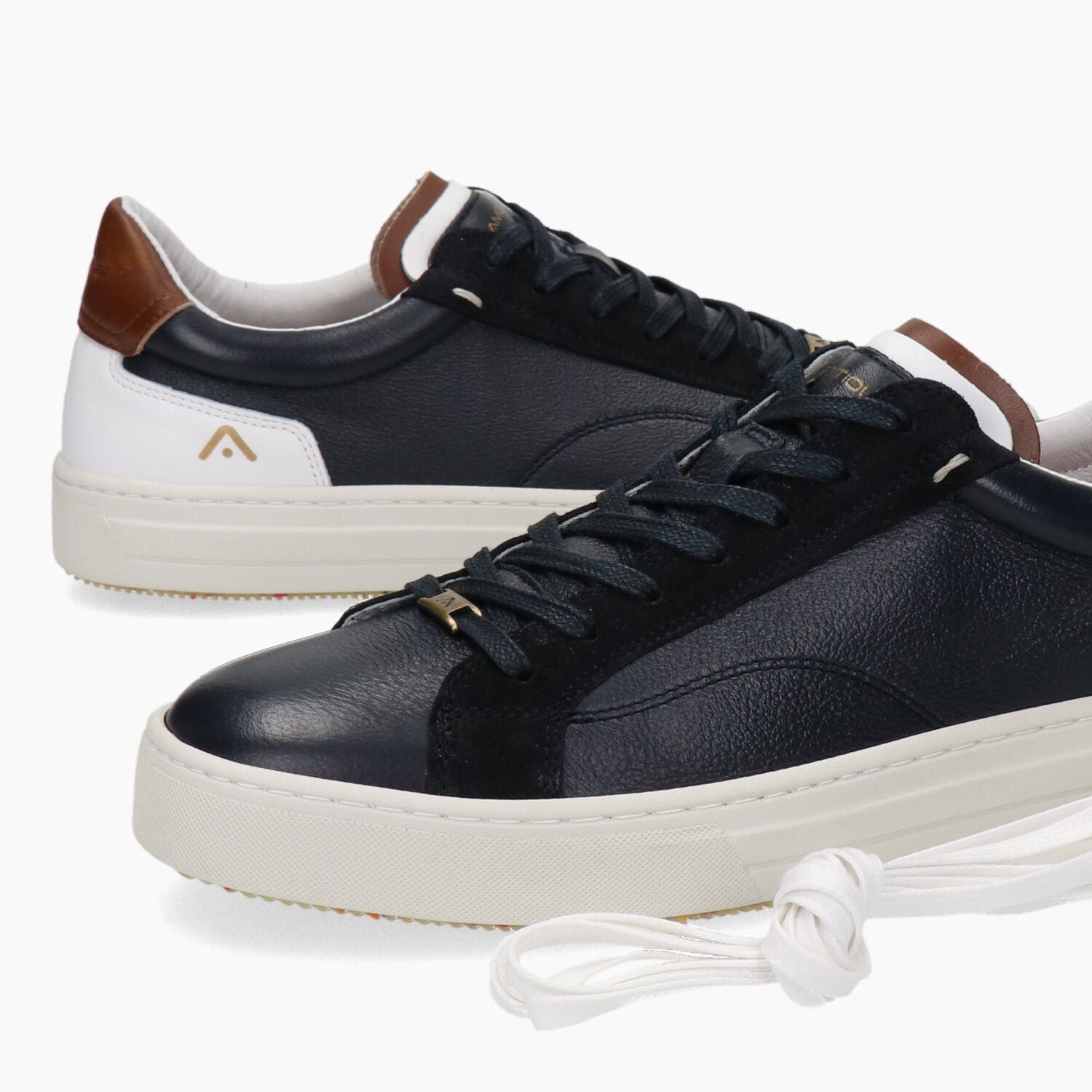 Sportiva in pelle e camoscio blu, fondo gomma.