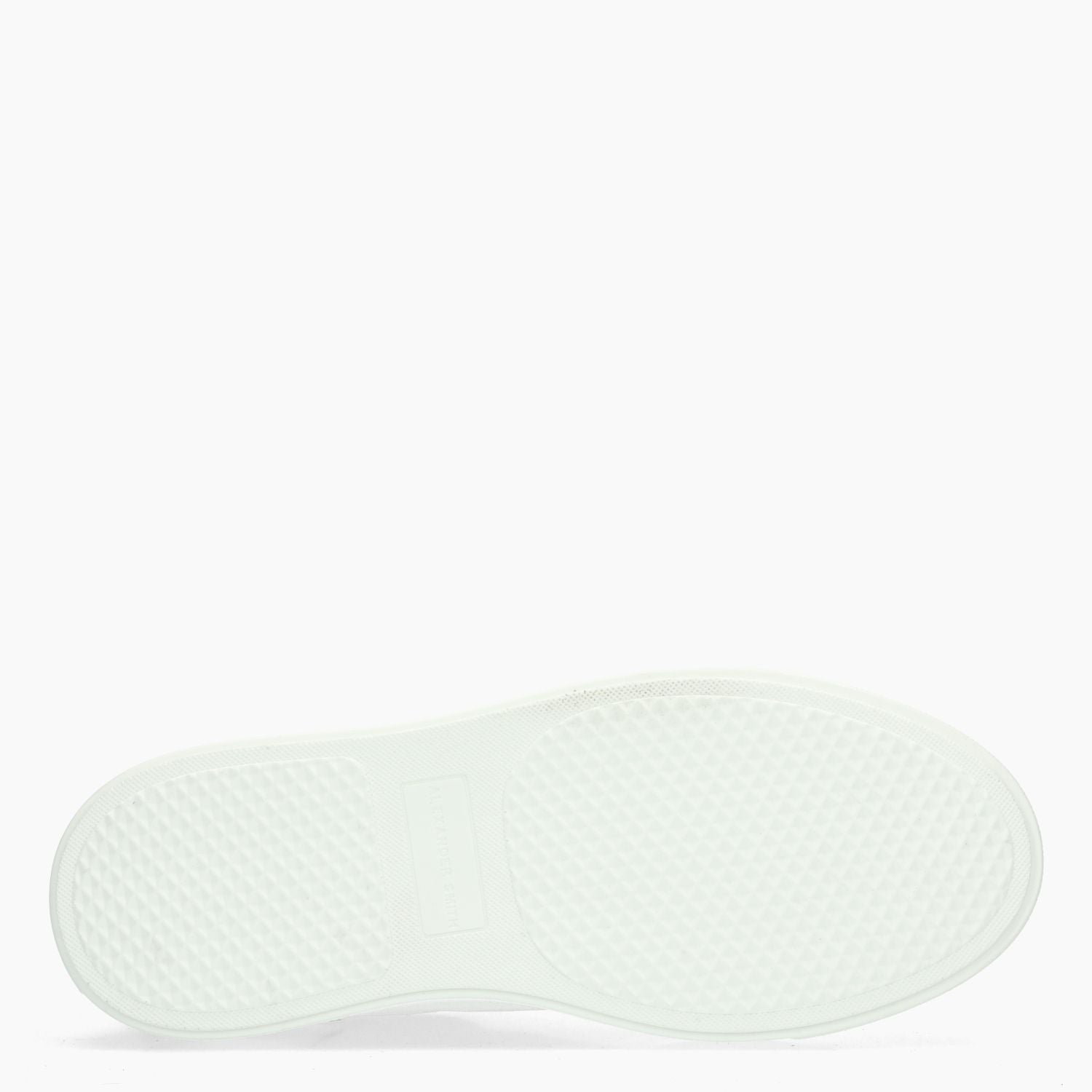 Bond-Sneaker mit gehämmertem, weißem Leder-Obermaterial. Logo an der Ferse. Herausnehmbare Innensohle mit Leder- und Textilfutter. Baumwollschnürsenkel. Logo auf der Zunge. 3 cm hohe Gummisohle. Alexander Smith Herrenkollektion.